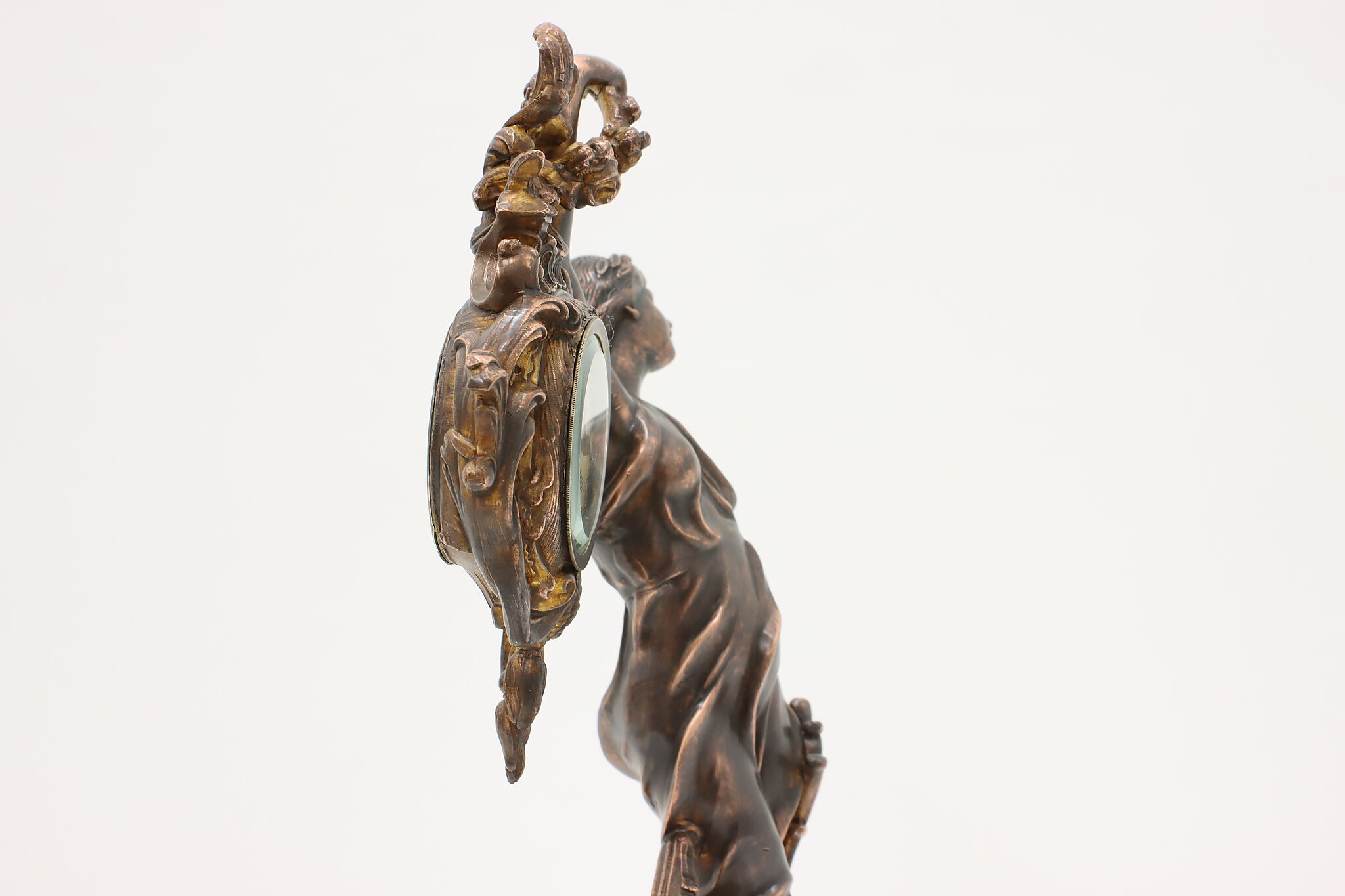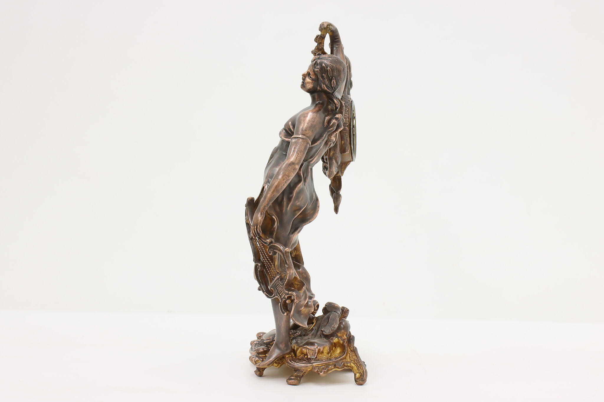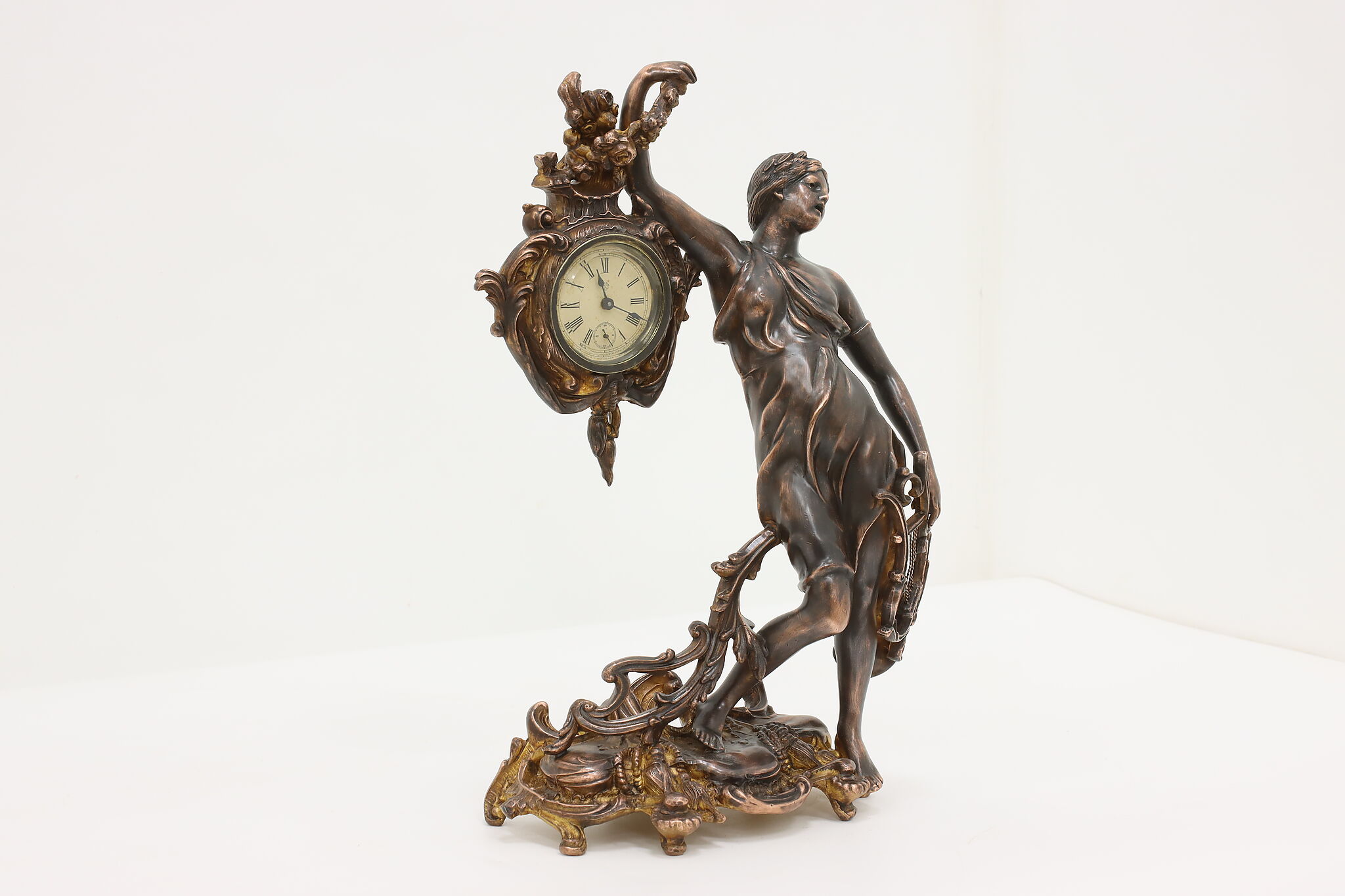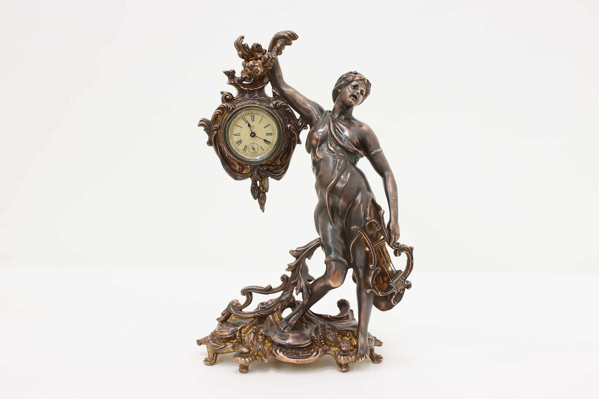 This stunning desk clock has a classical figure of a woman and her lyre.