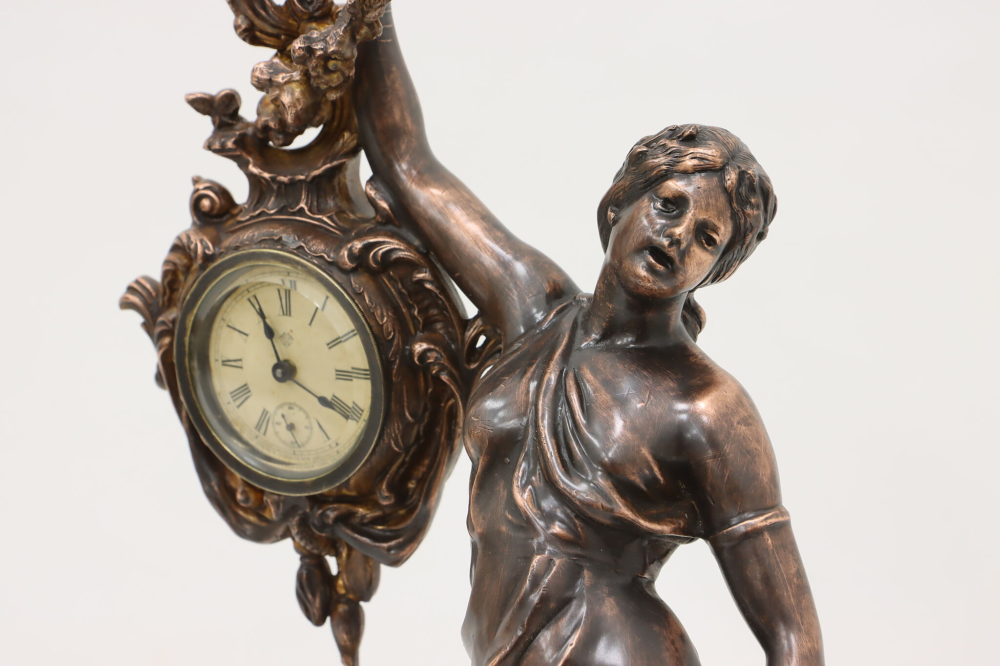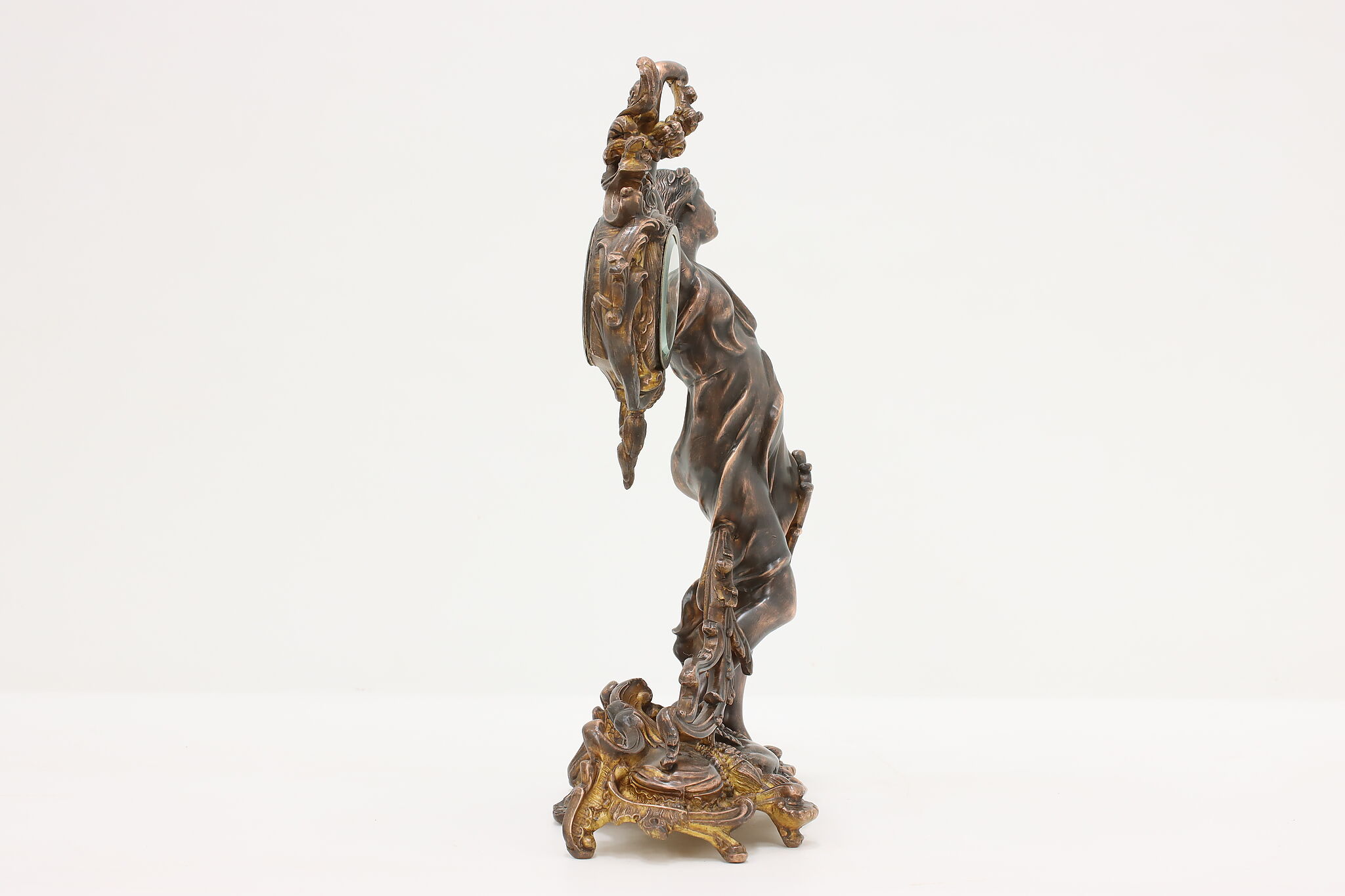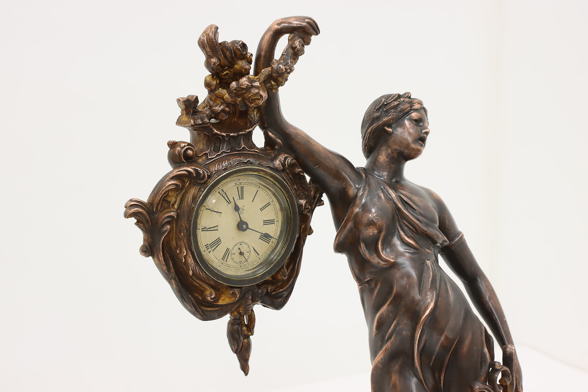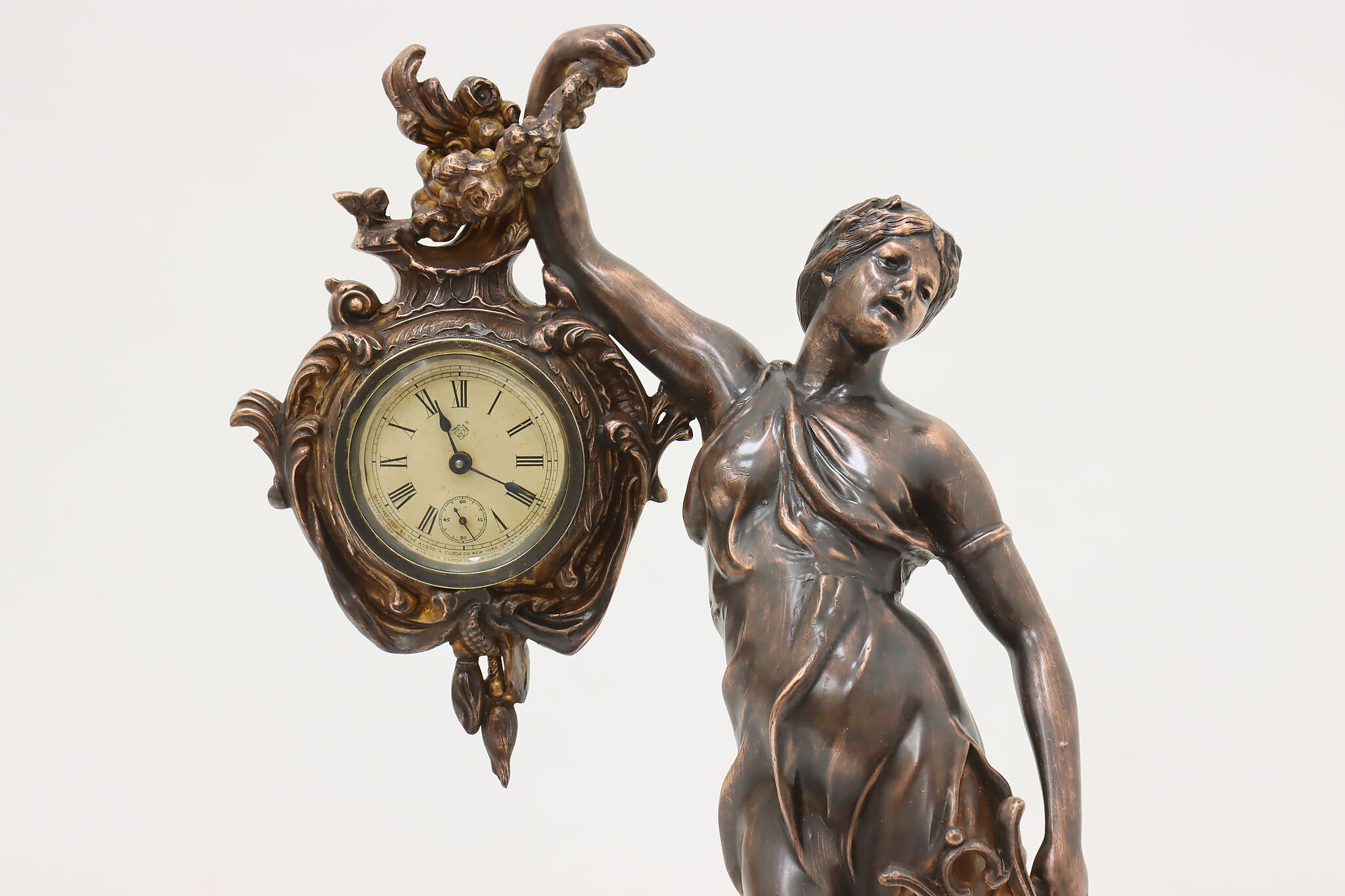 This stunning desk clock has a classical figure of a woman and her lyre.