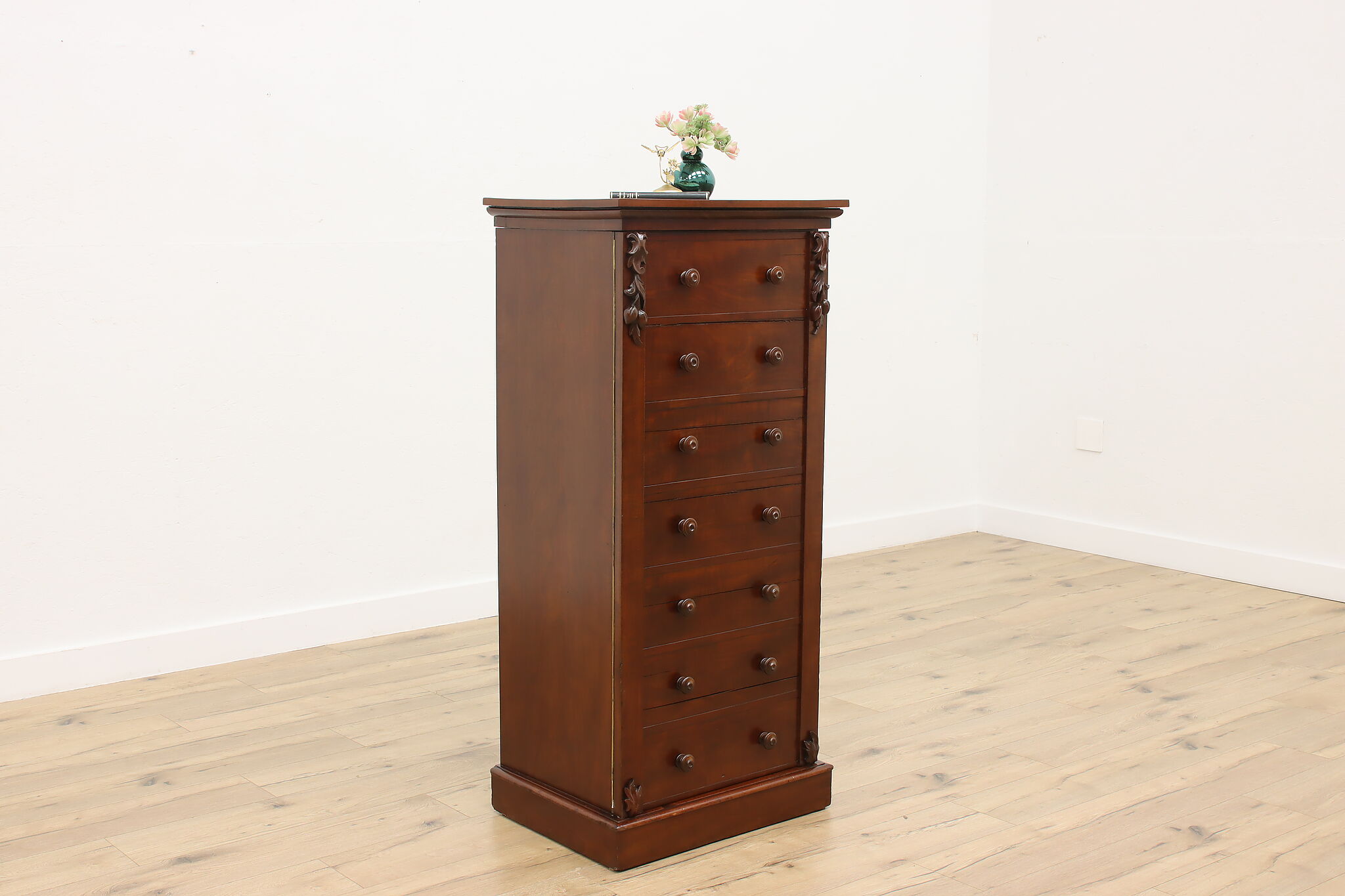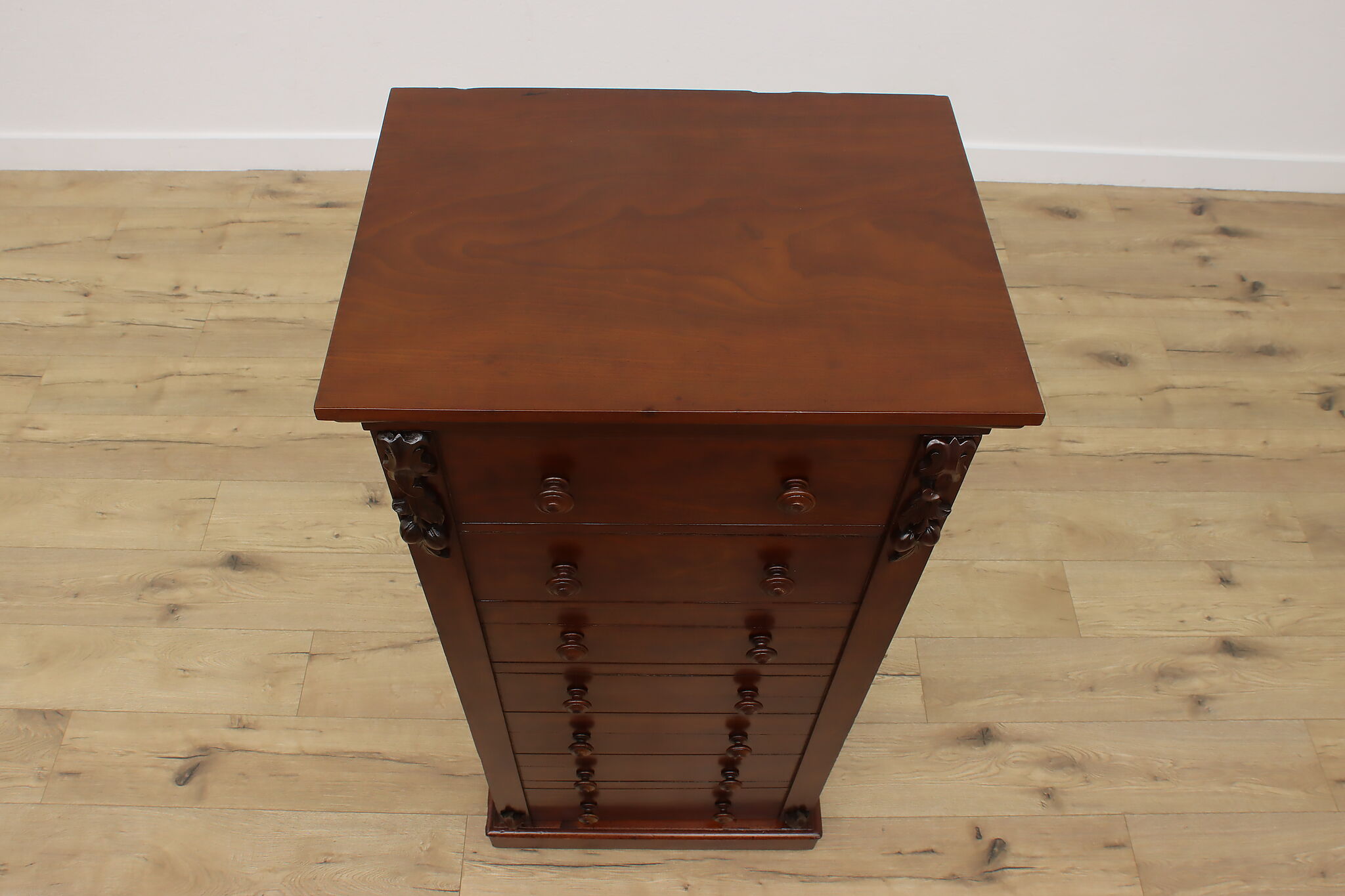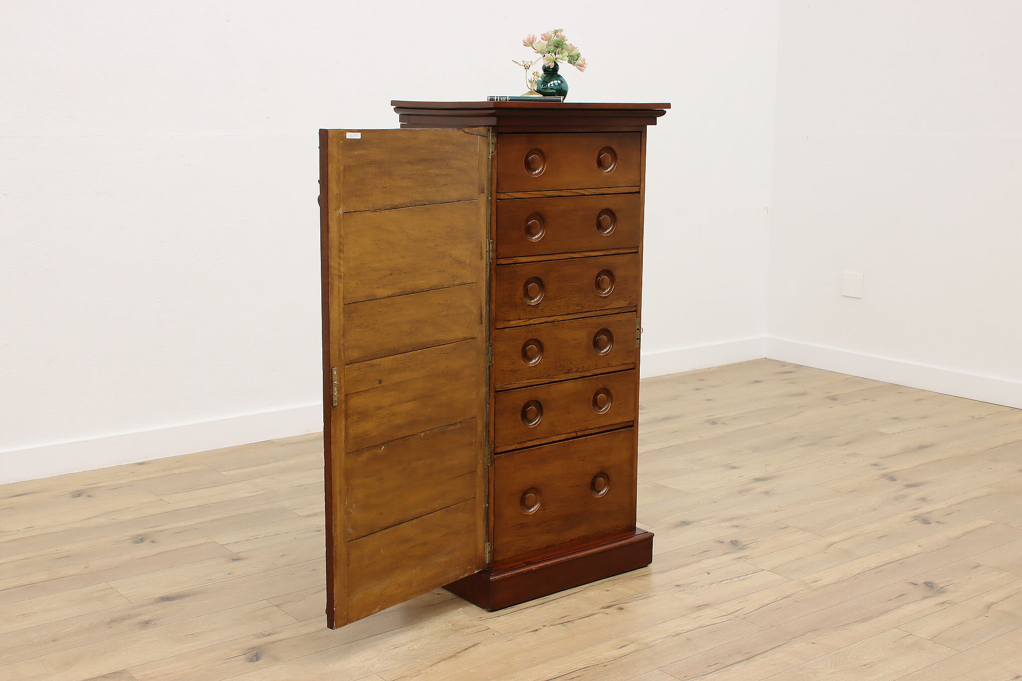 A six drawer lingerie or jewelry chest was crafted during the Victorian period for a middle class lady or gentleman.