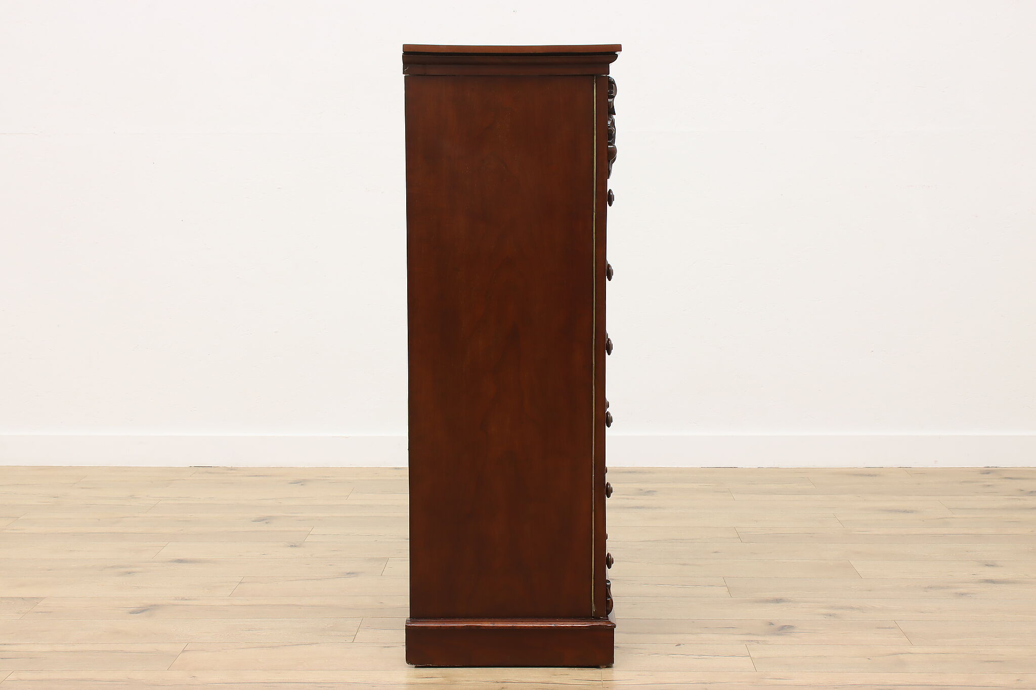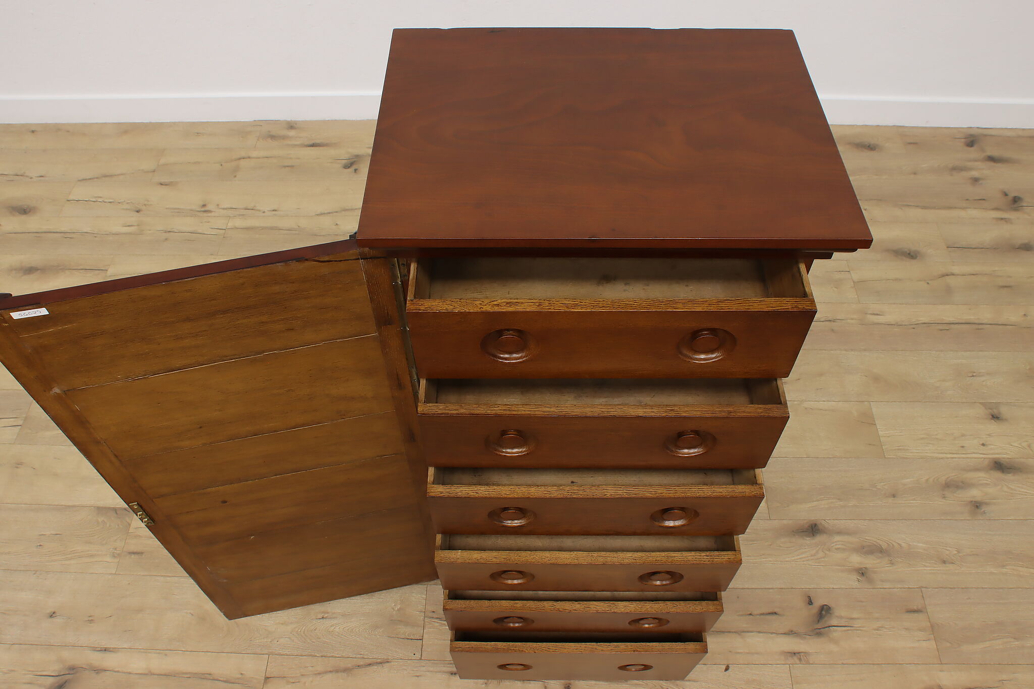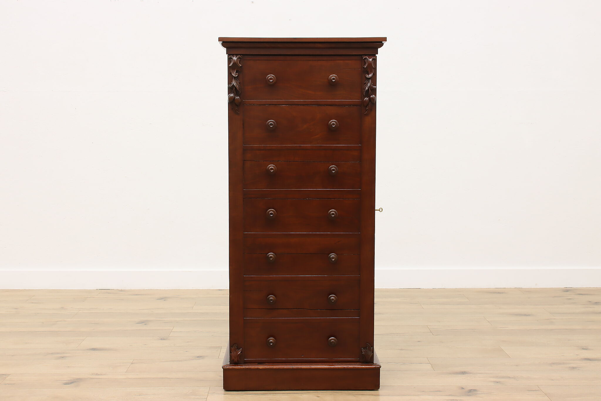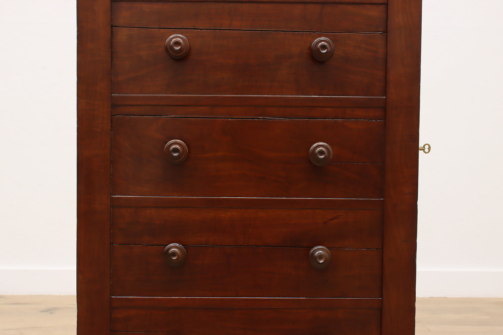A six drawer lingerie or jewelry chest was crafted during the Victorian period for a middle class lady or gentleman.
