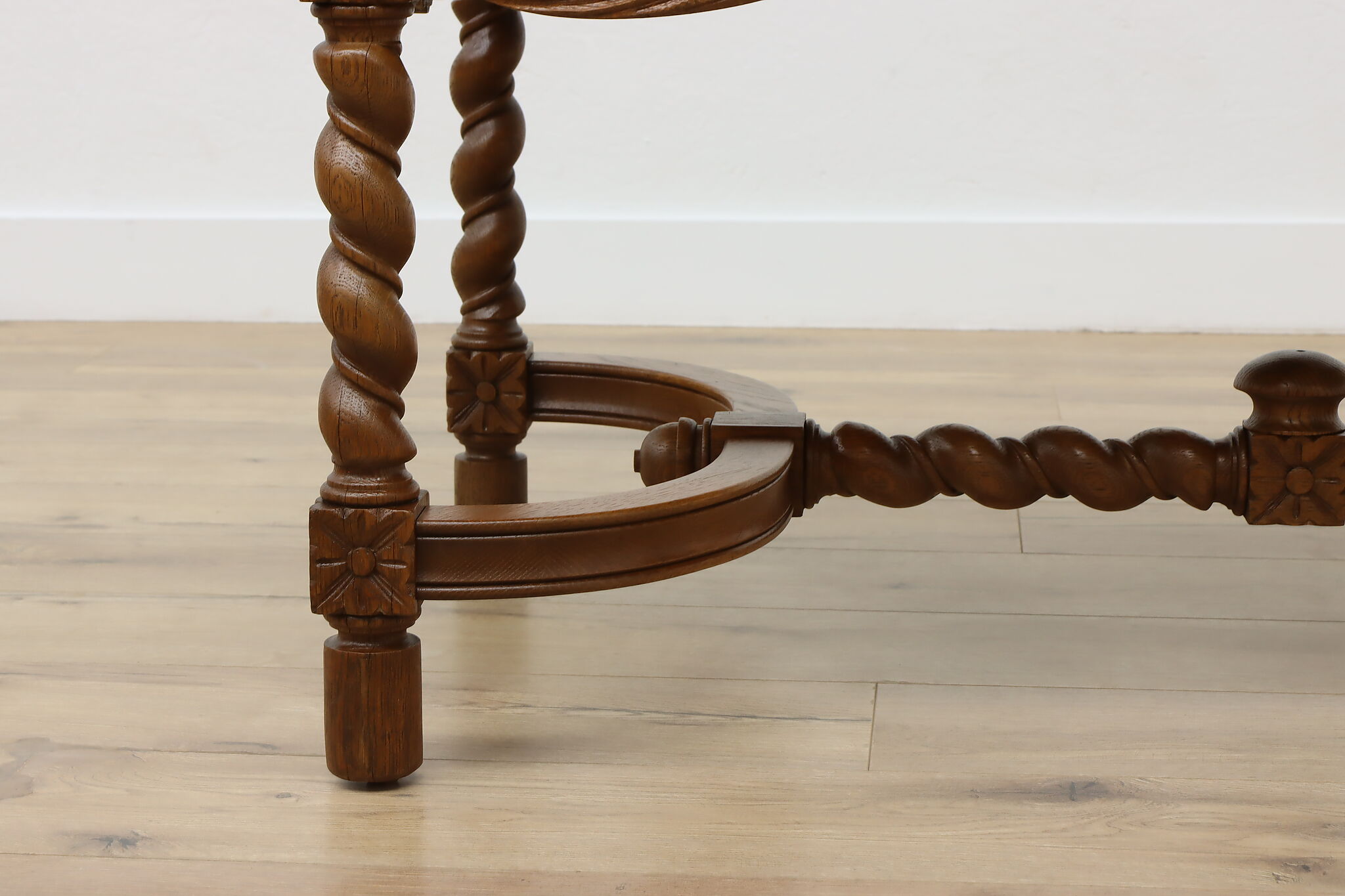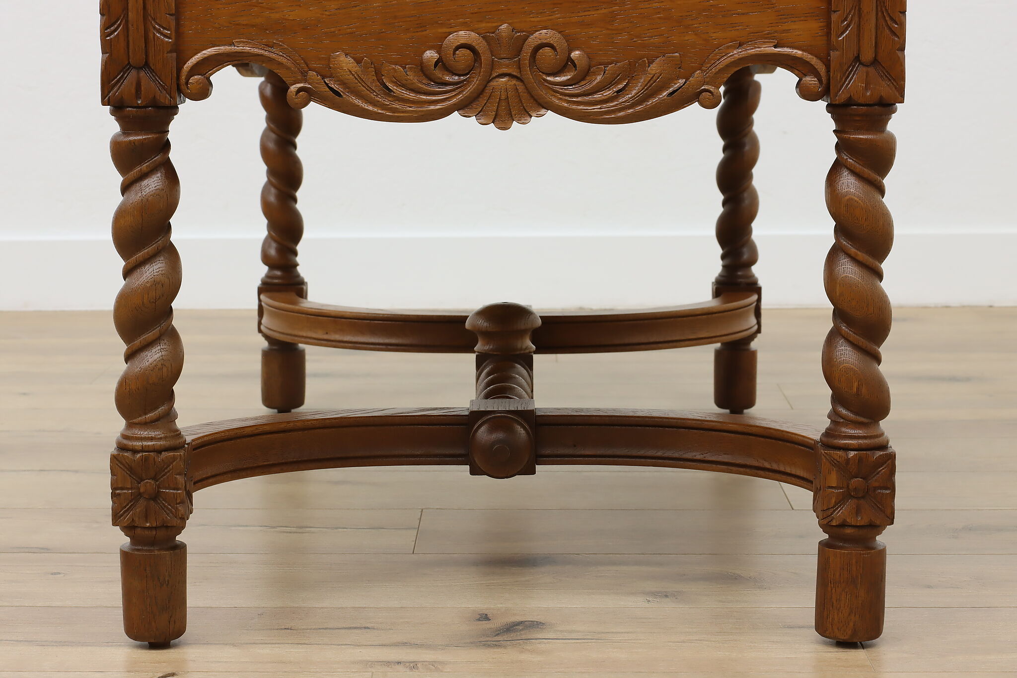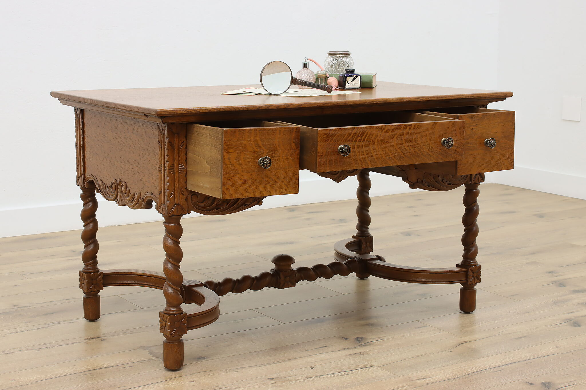 From the Victorian period, this office or library desk has carved barley twist spiral legs and delightful carved detailing.