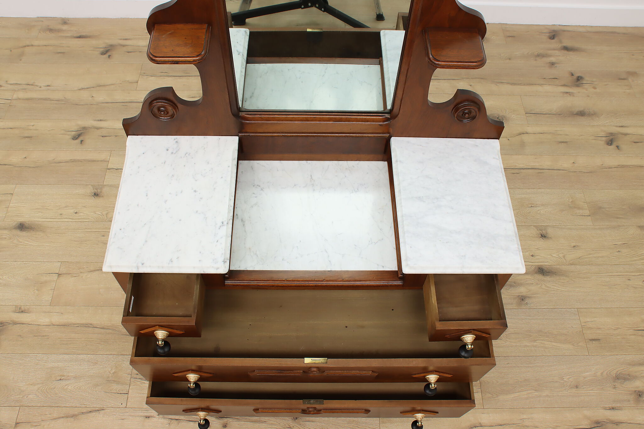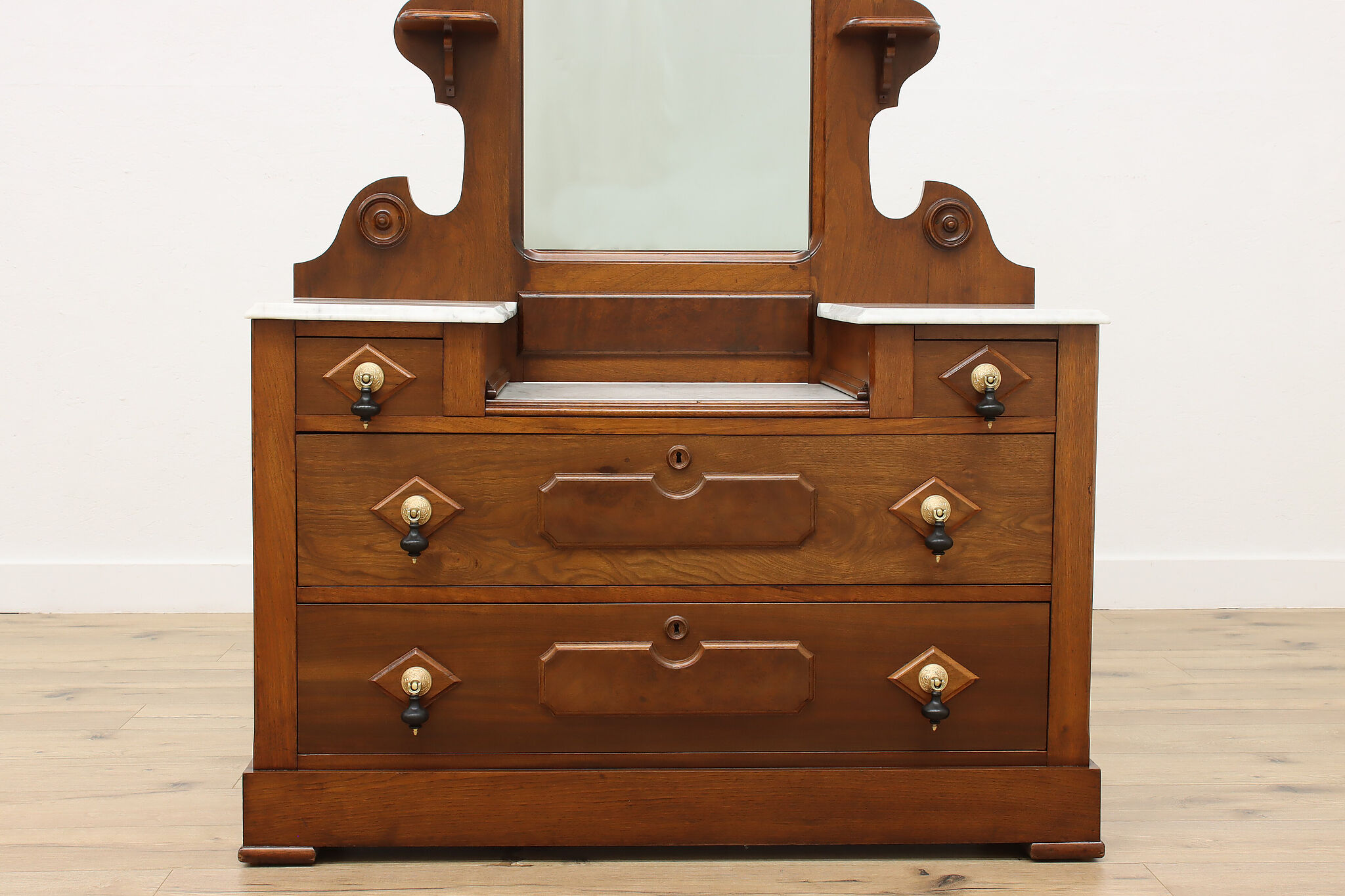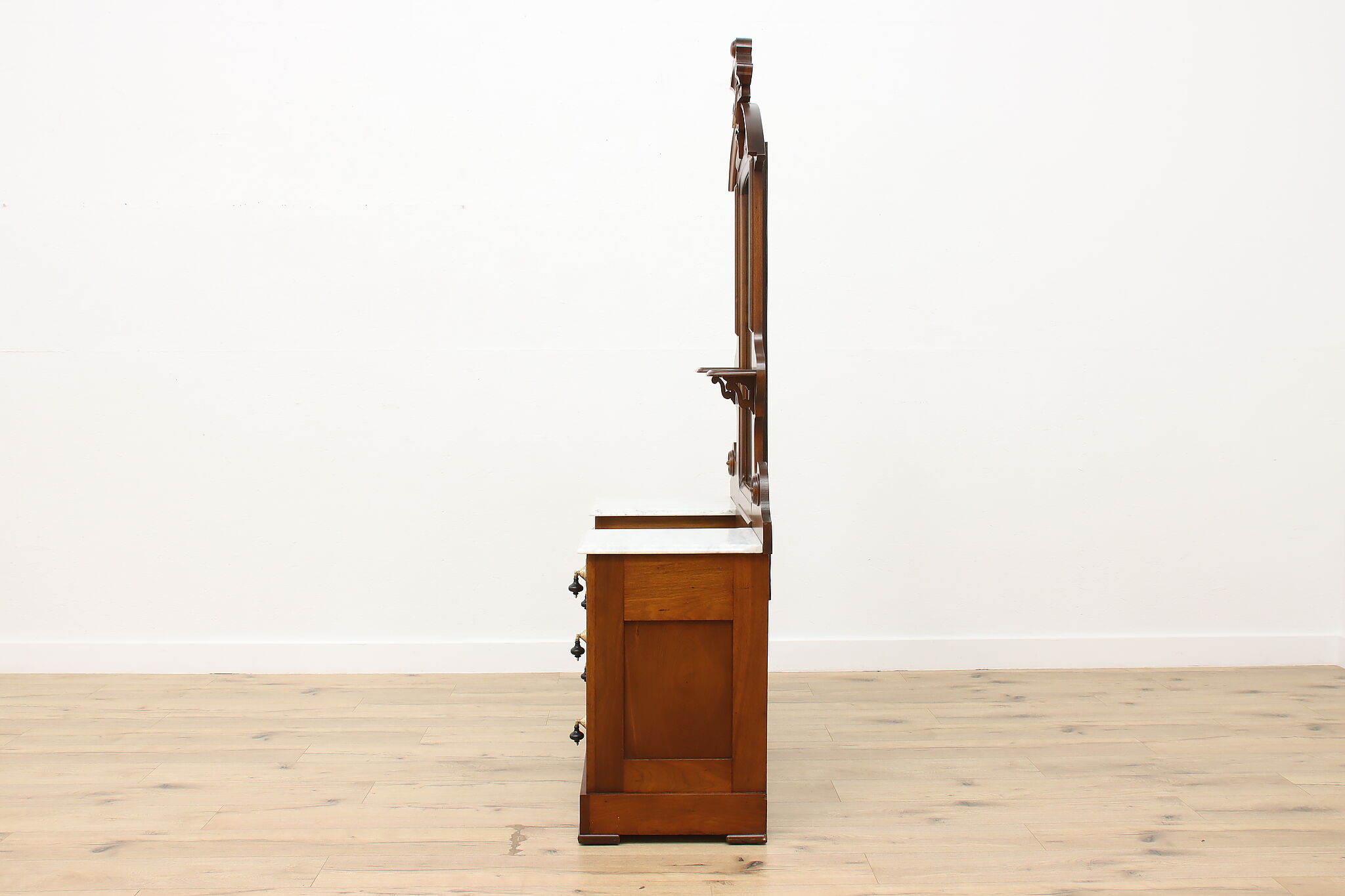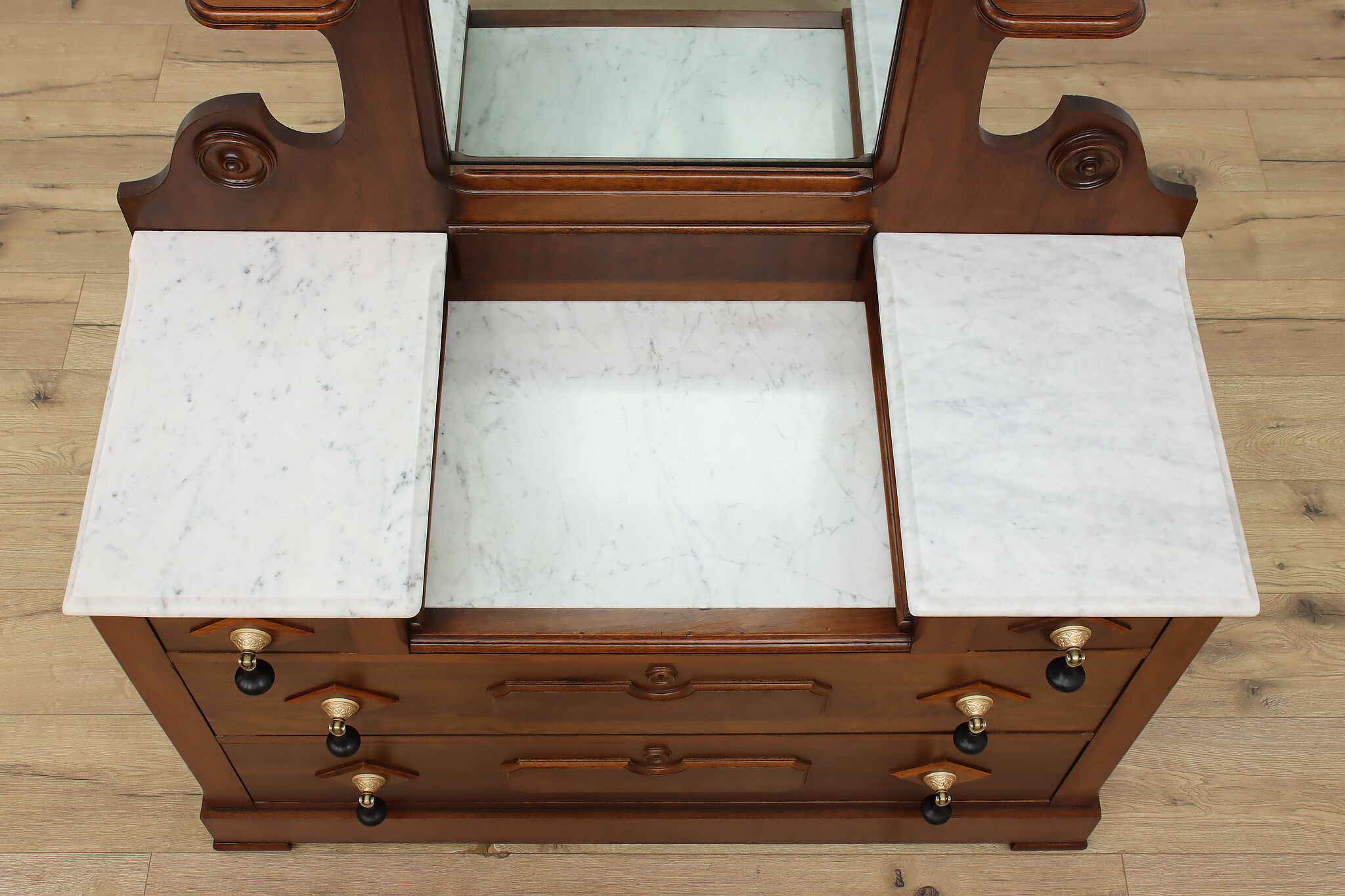 This Victorian period dresser or chest is adorned with beautiful white marble tops for a polished, elegant look.
