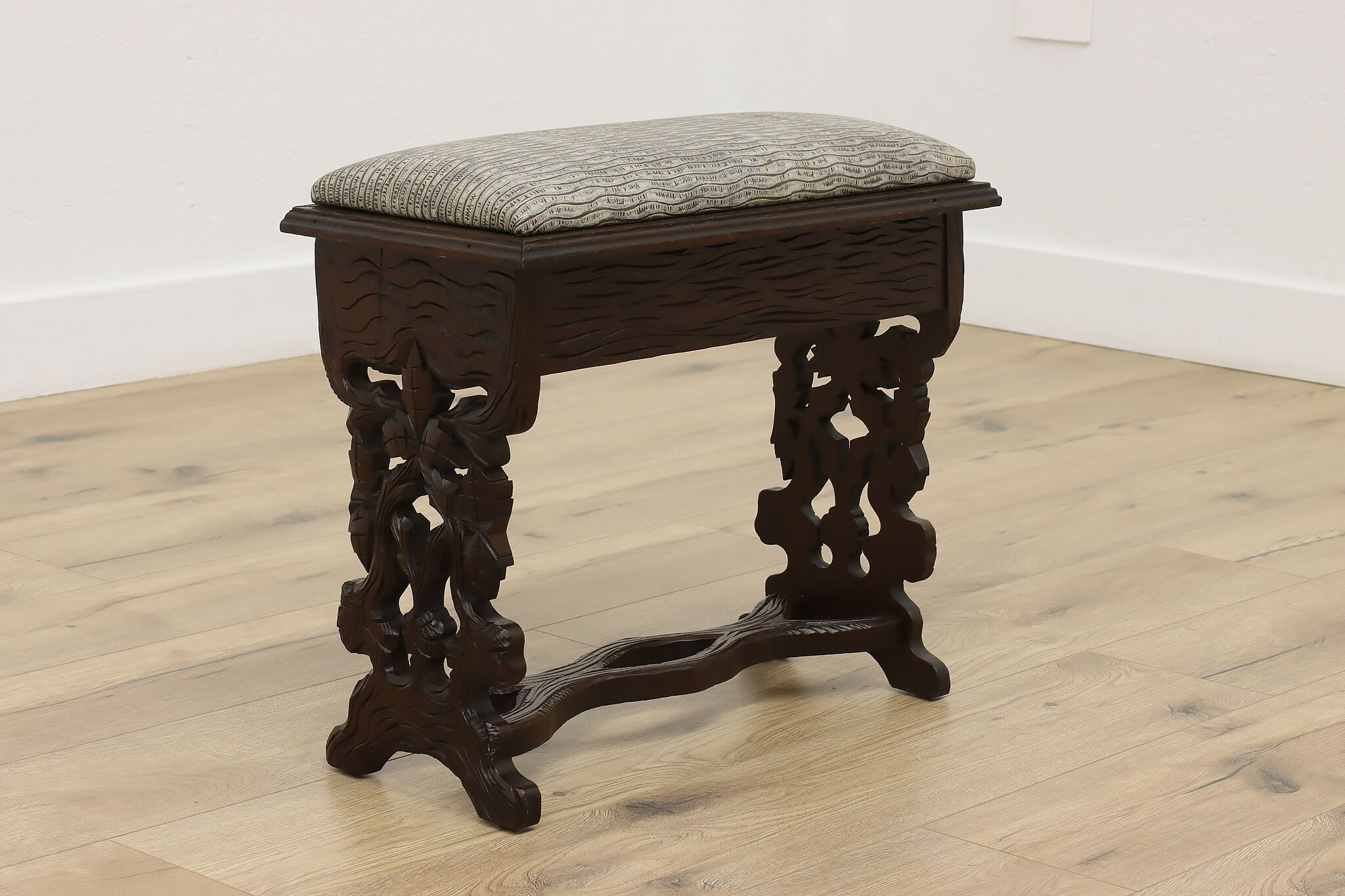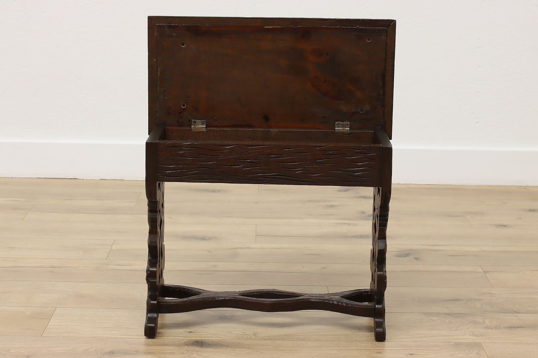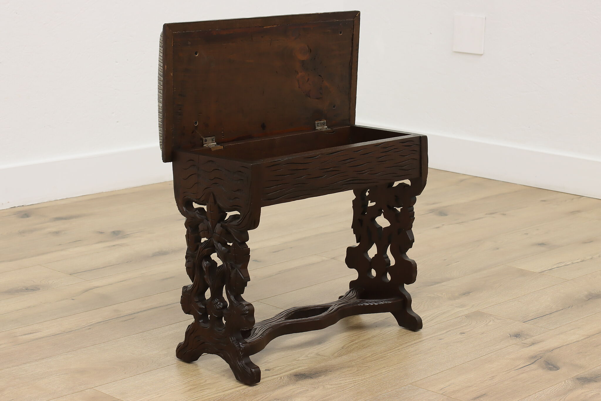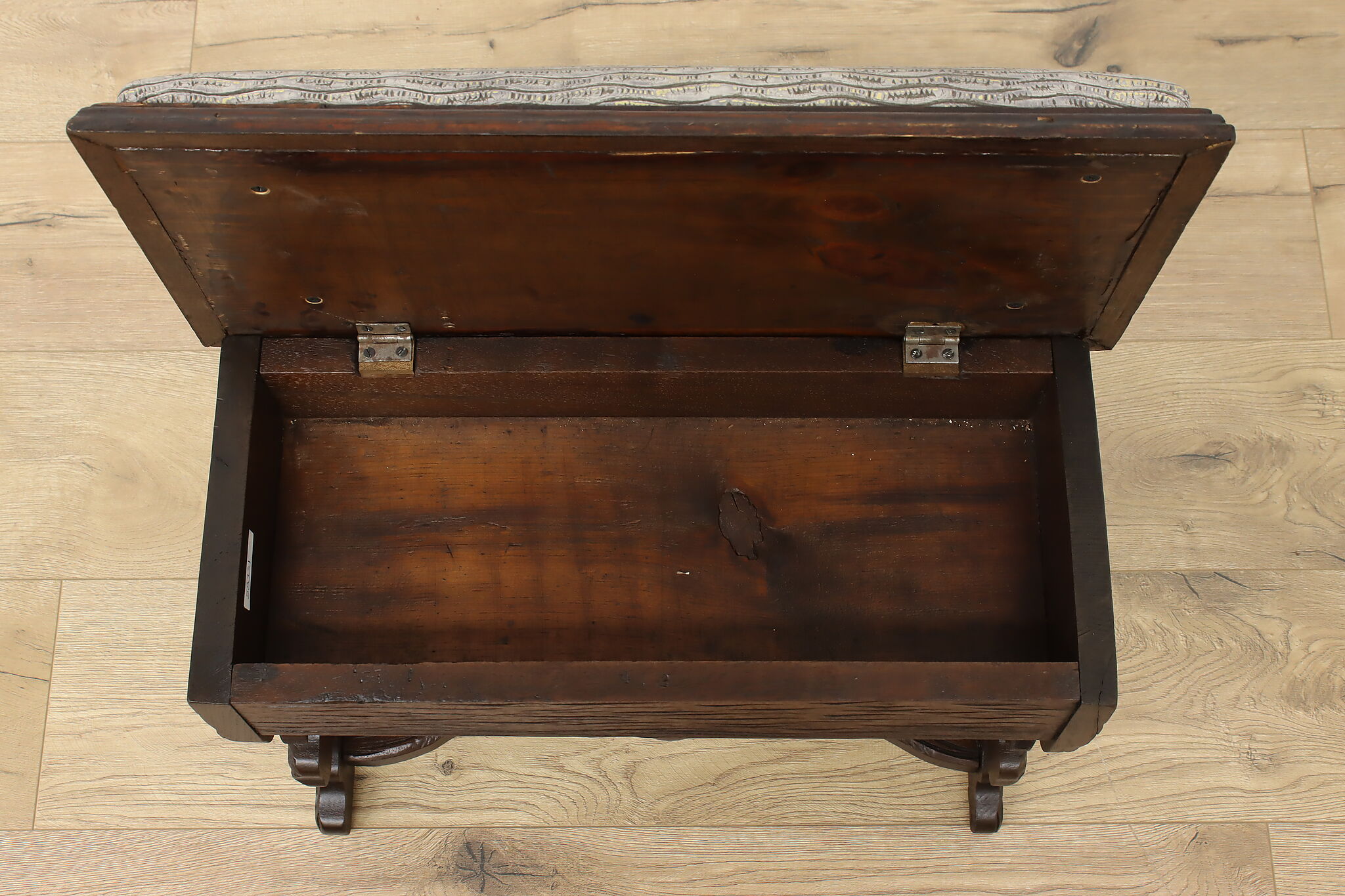 Originally built to store one's slippers, this lift lid footstool is an excellent choice for storing TV remotes!
