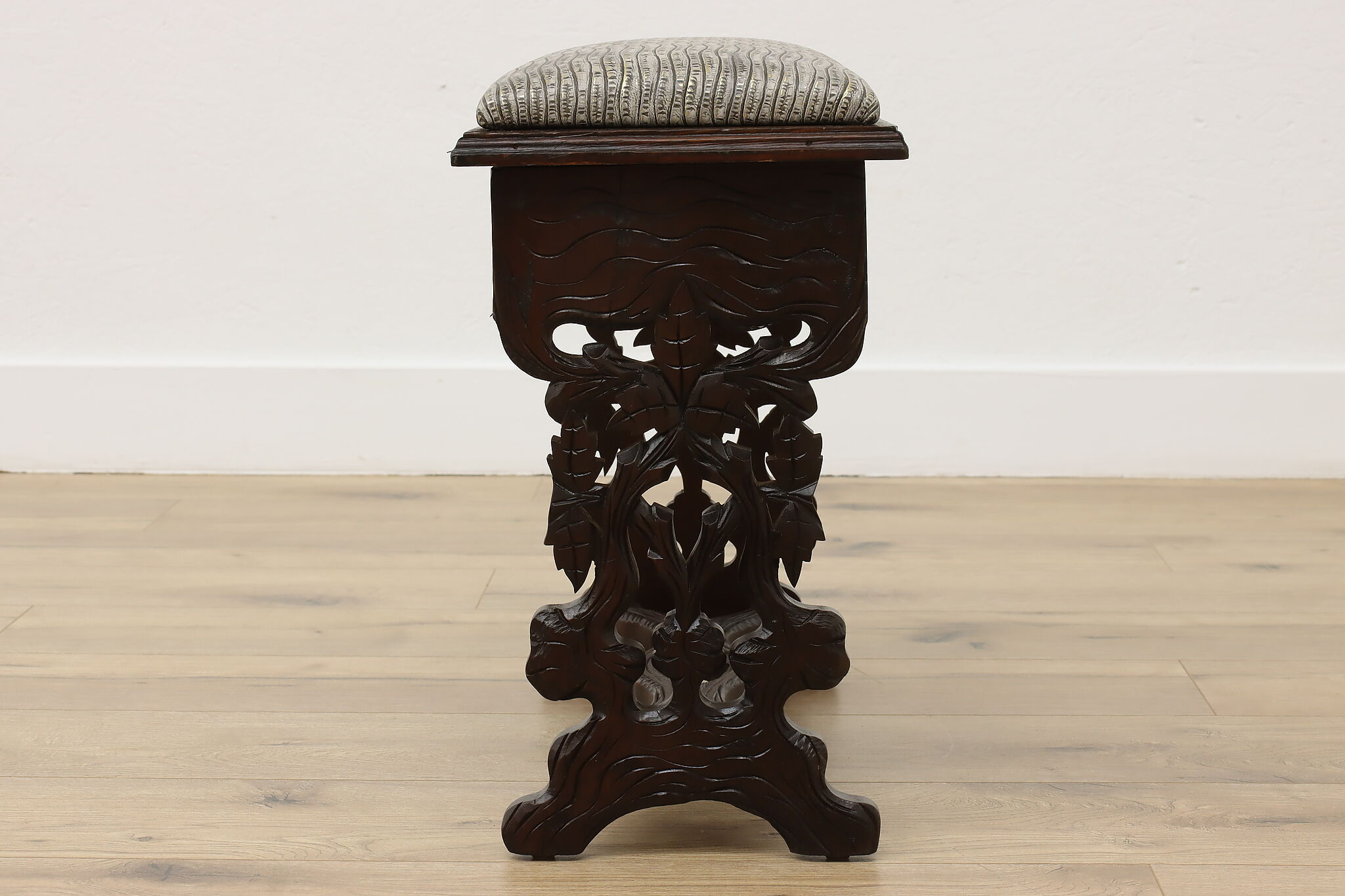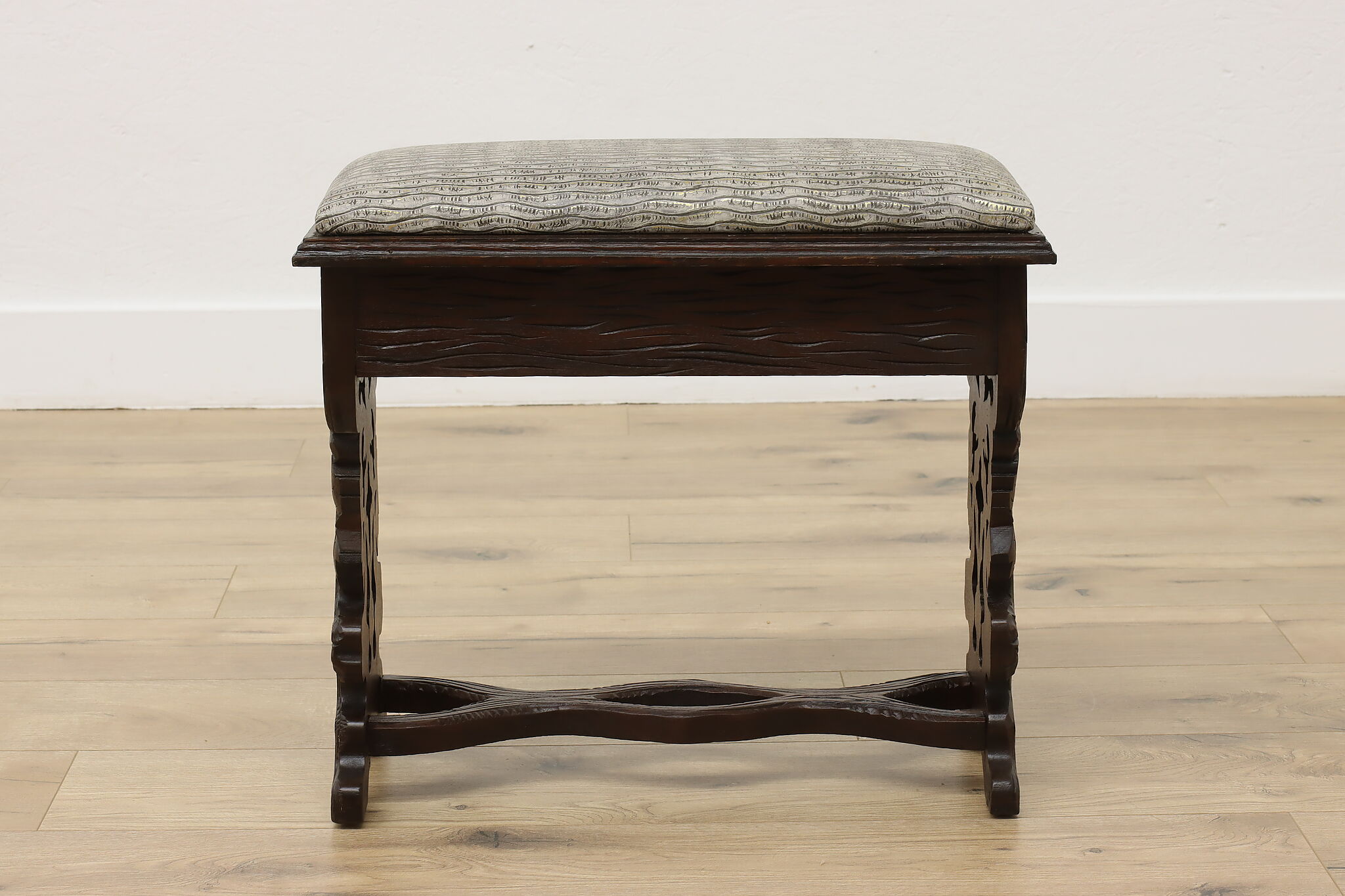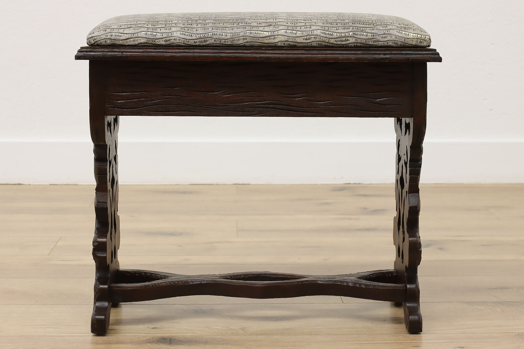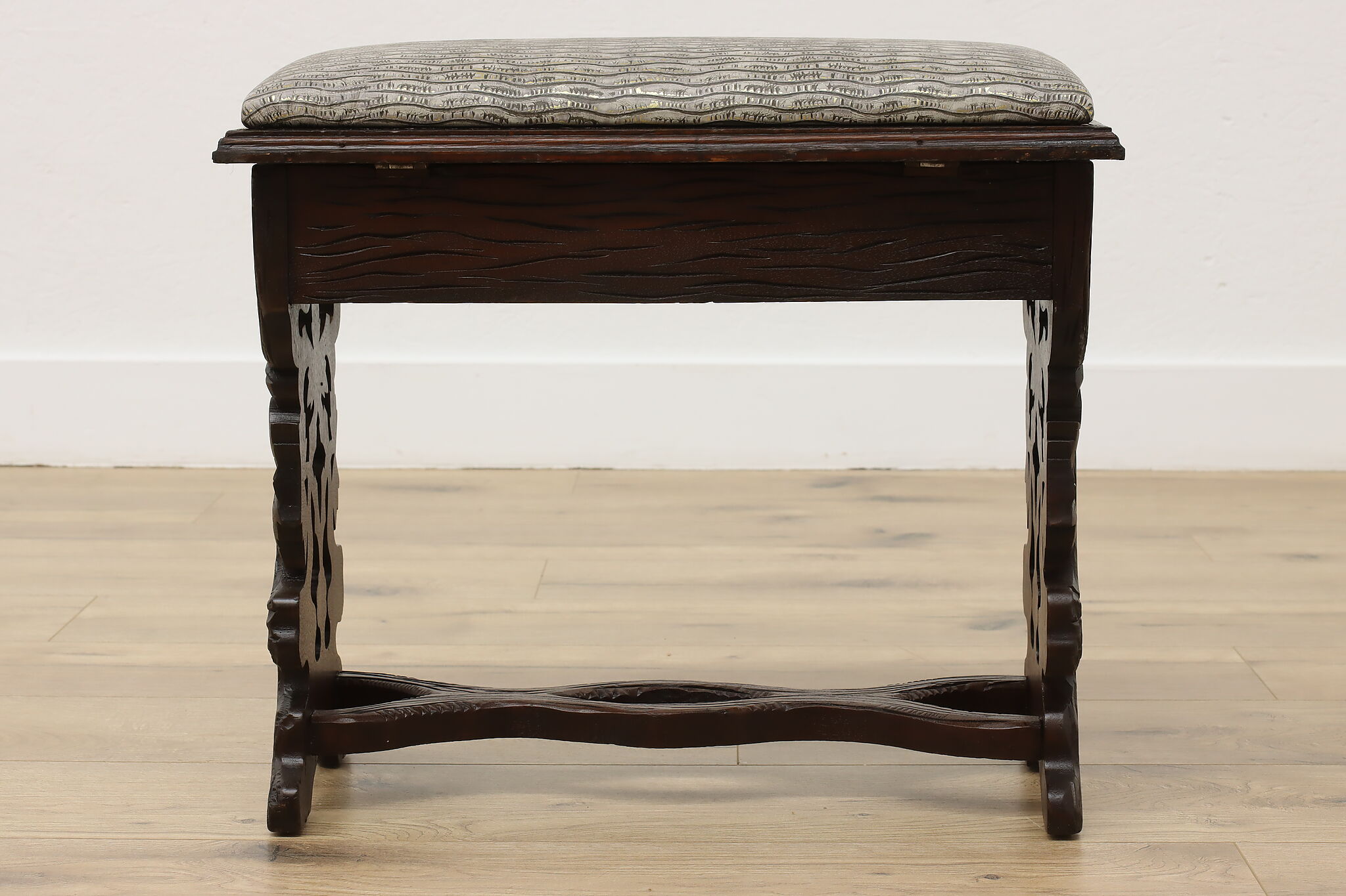 Originally built to store one's slippers, this lift lid footstool is an excellent choice for storing TV remotes!