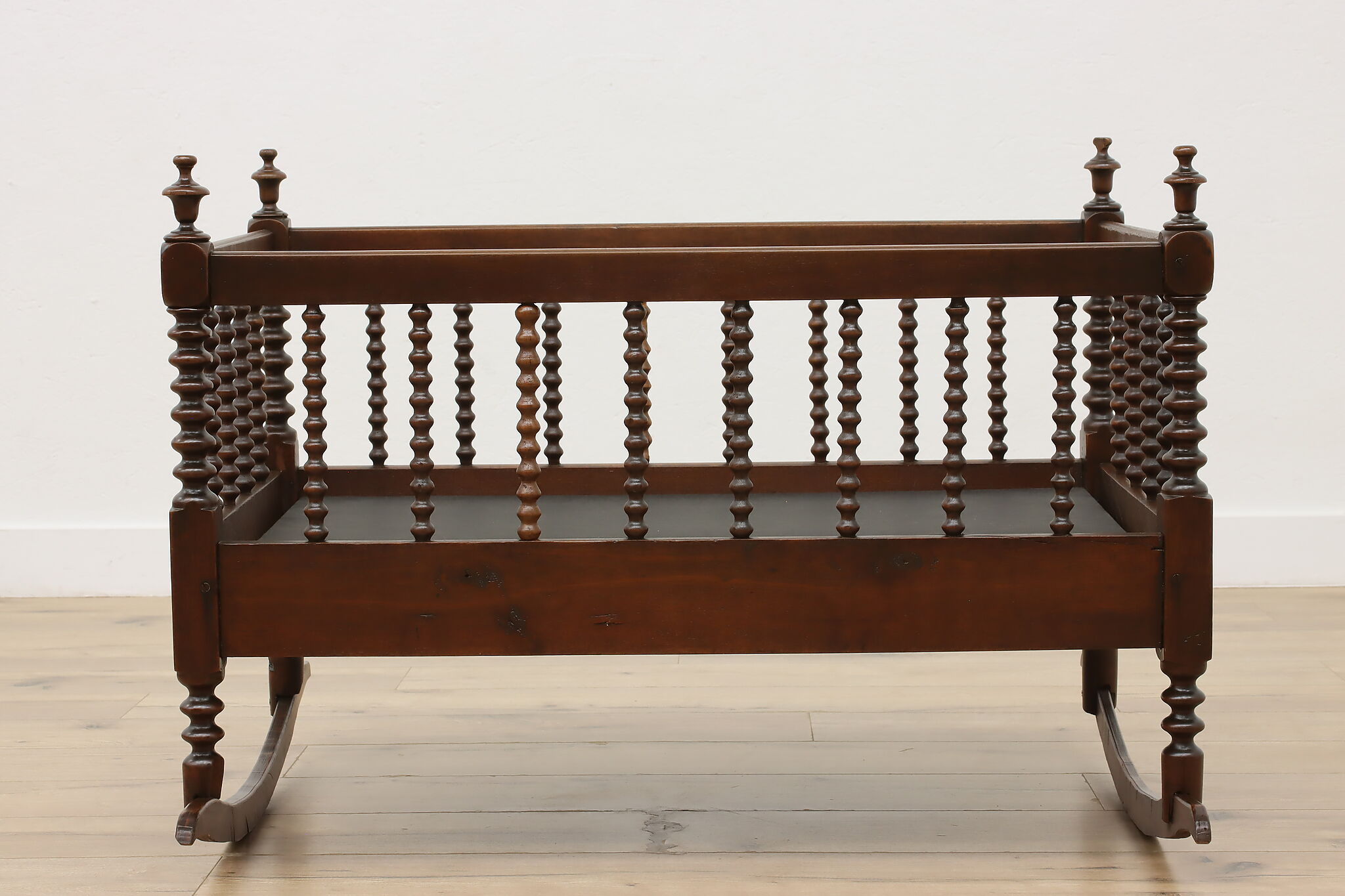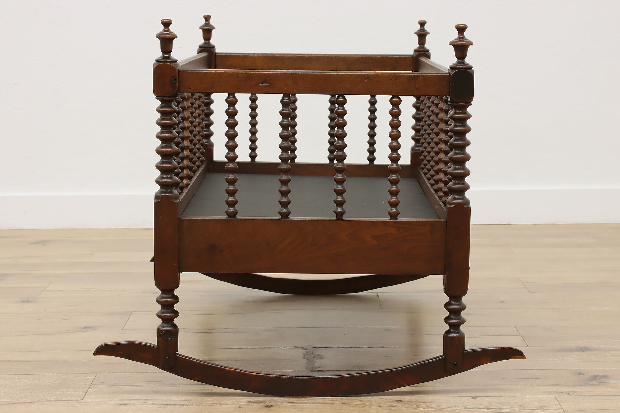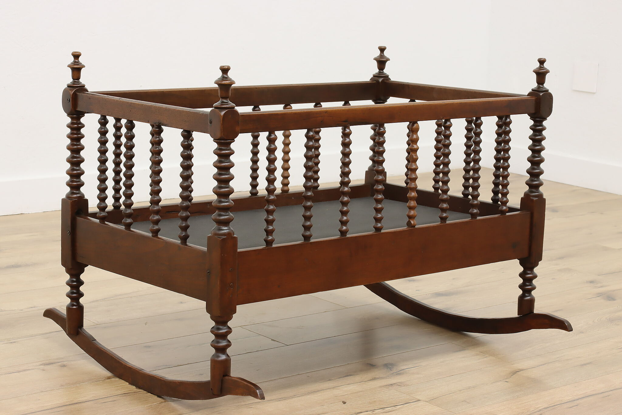 This Victorian period rocking baby cradle or bed would be a darling addition to a nursery or for a child's playroom for stuffed animals.