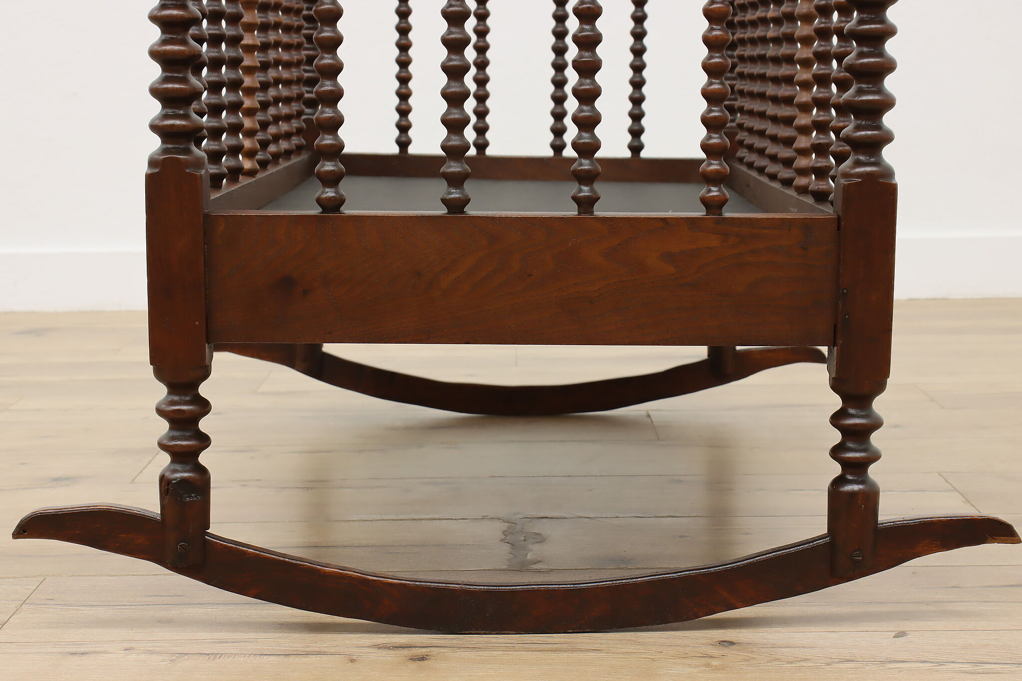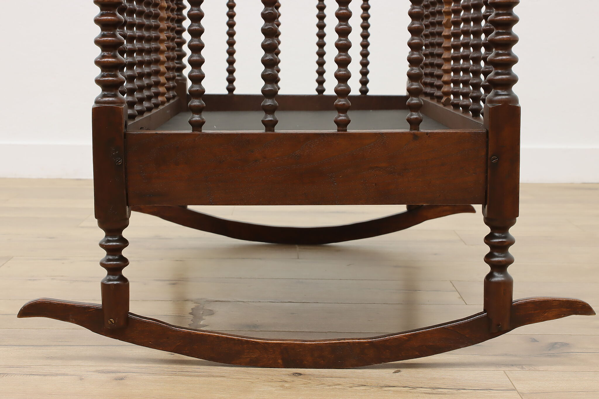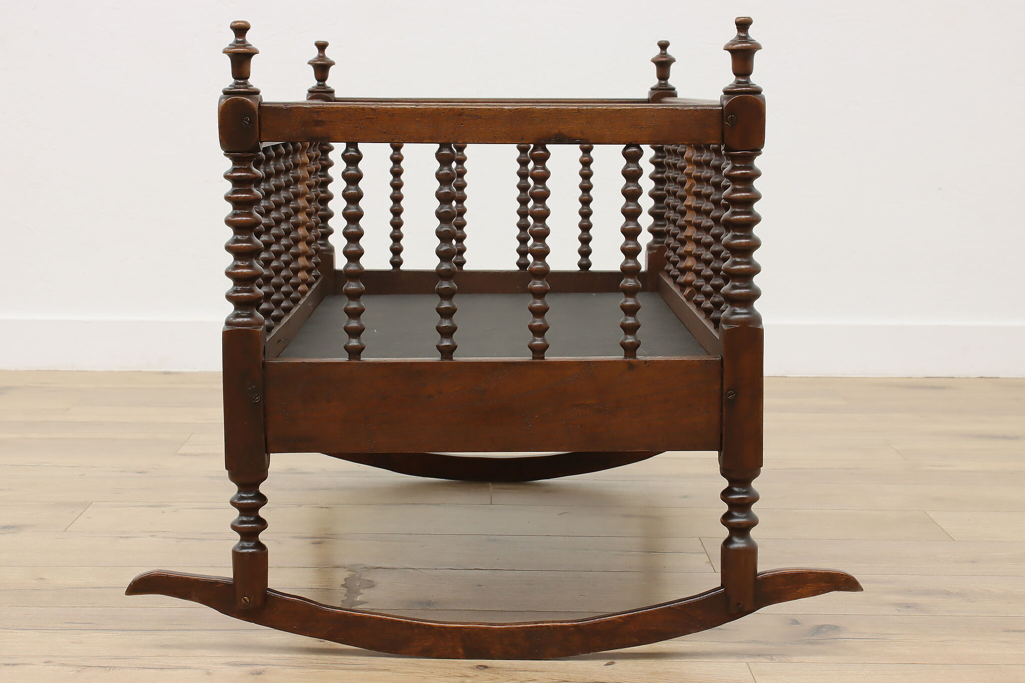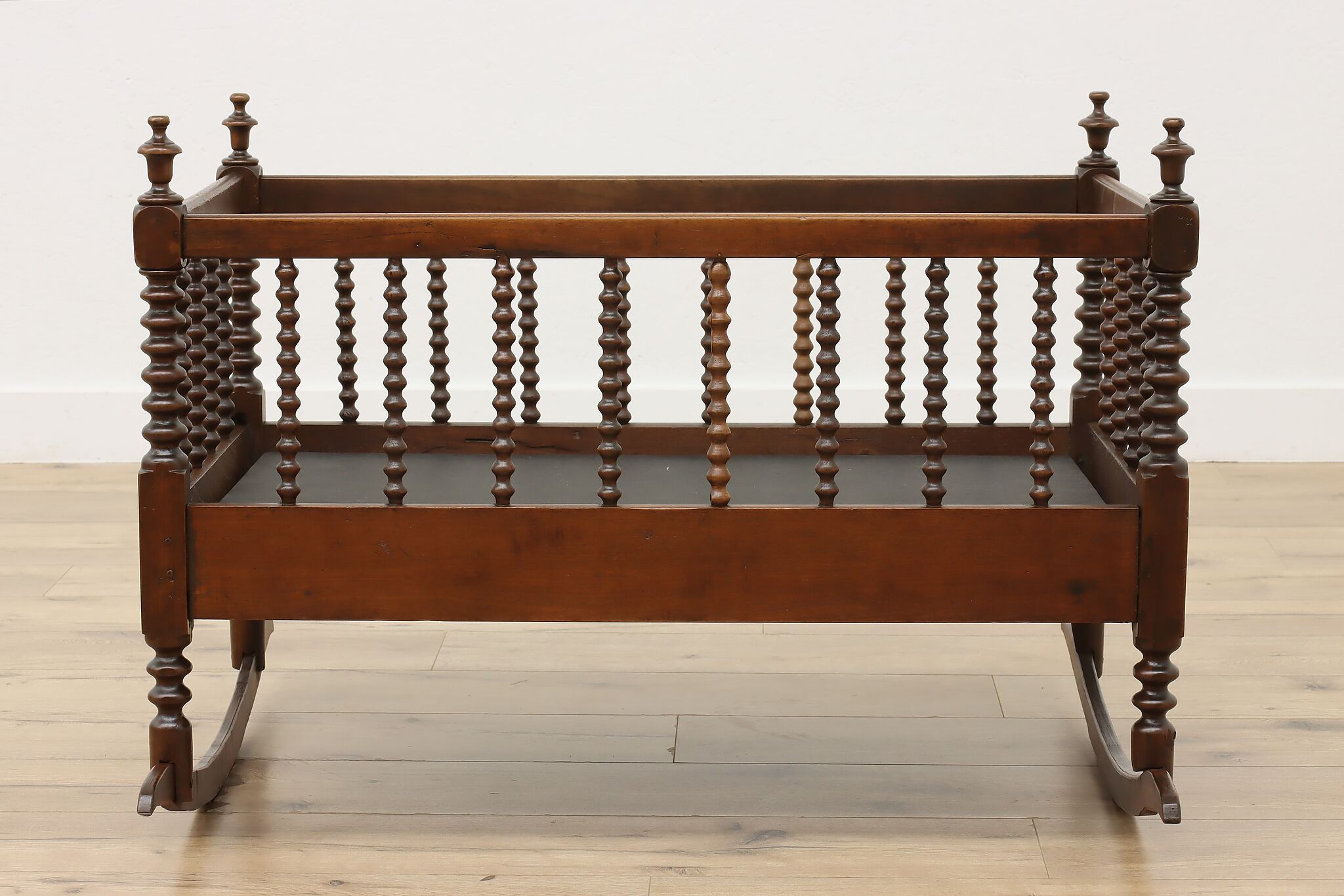This Victorian period rocking baby cradle or bed would be a darling addition to a nursery or for a child's playroom for stuffed animals.