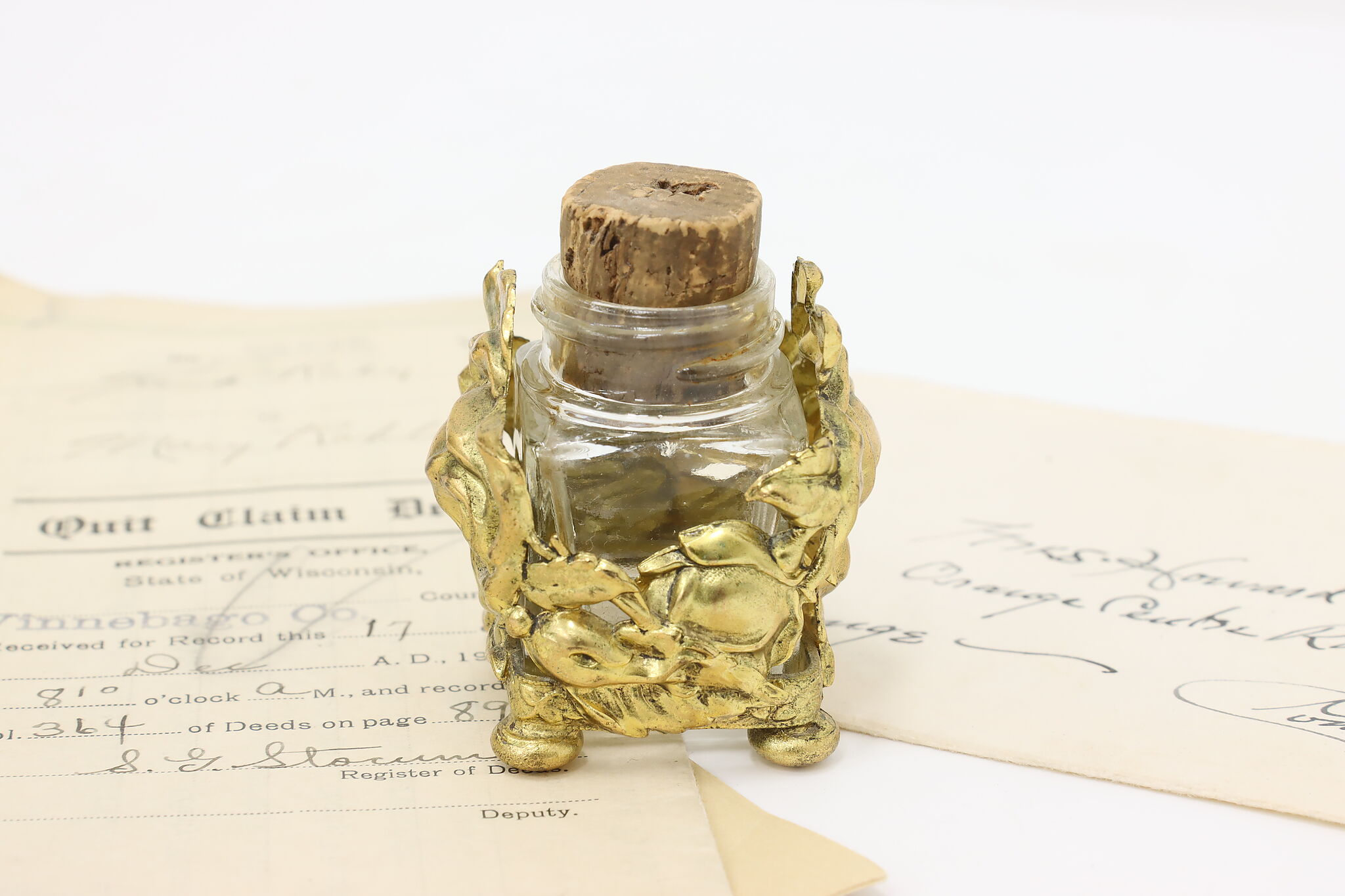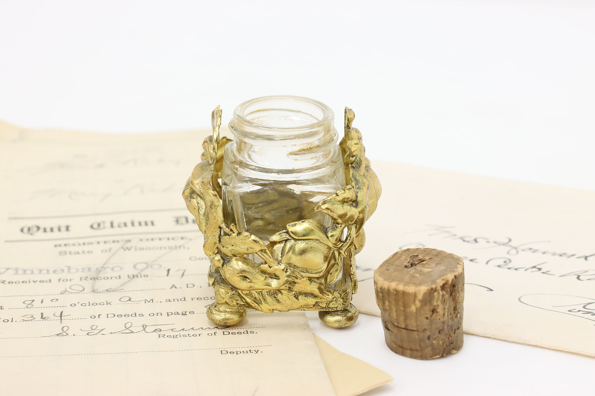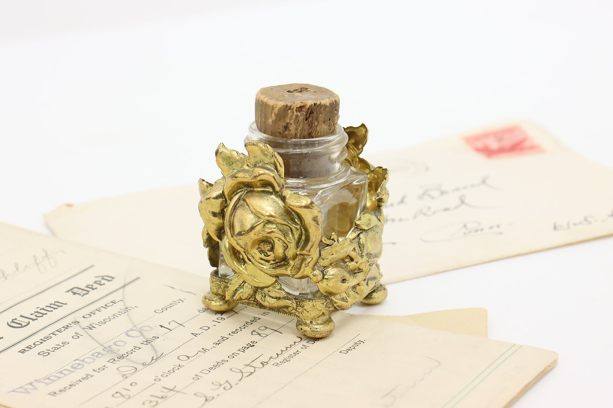 This Victorian era desktop inkwell has beautiful roses for a darling addition to your office or library.