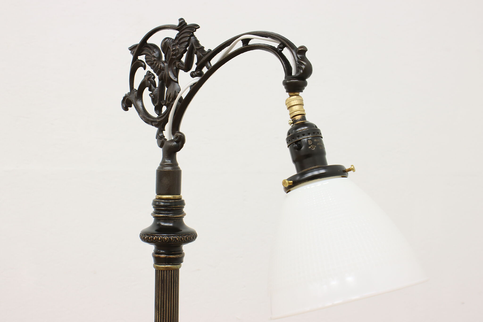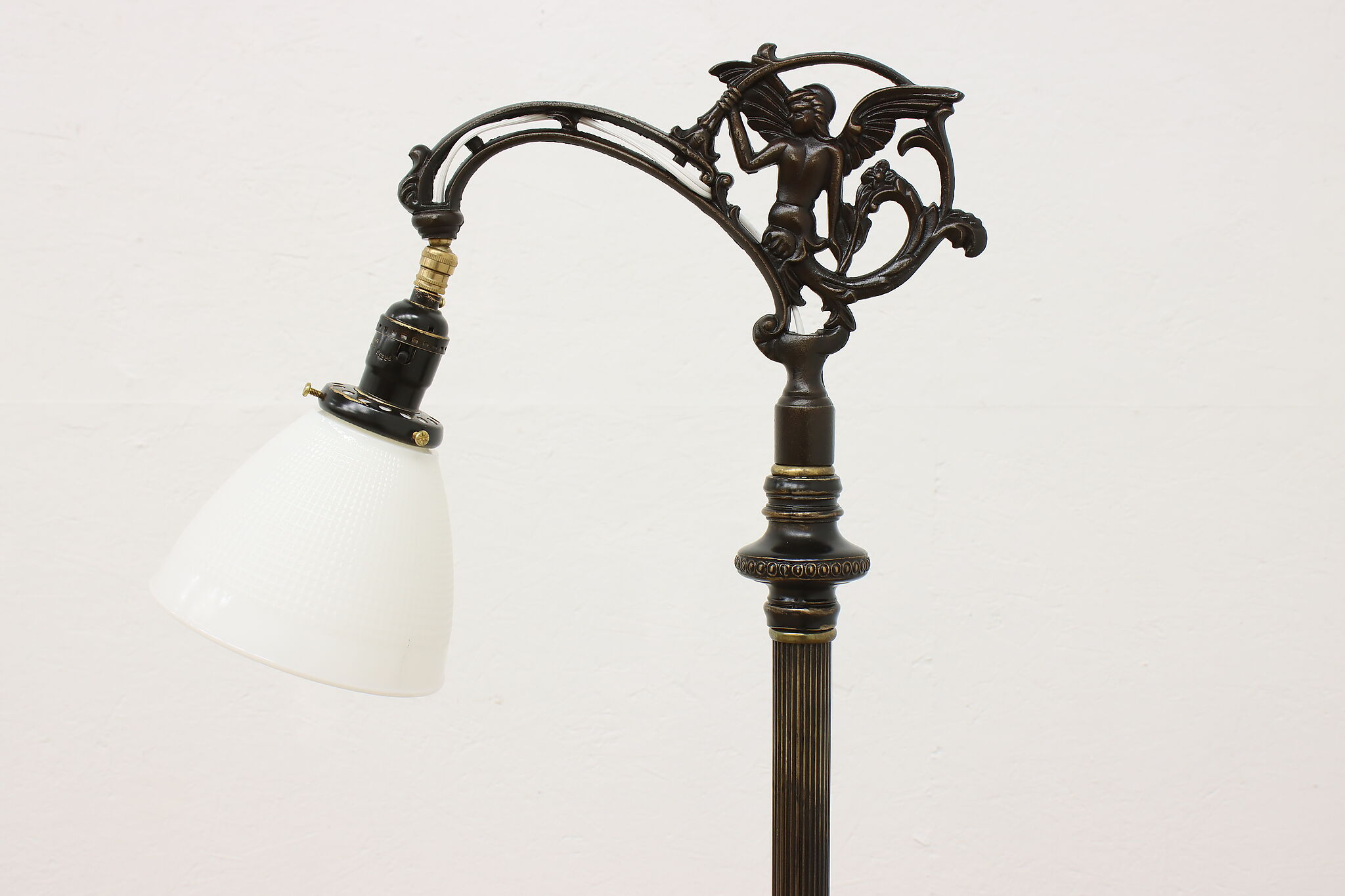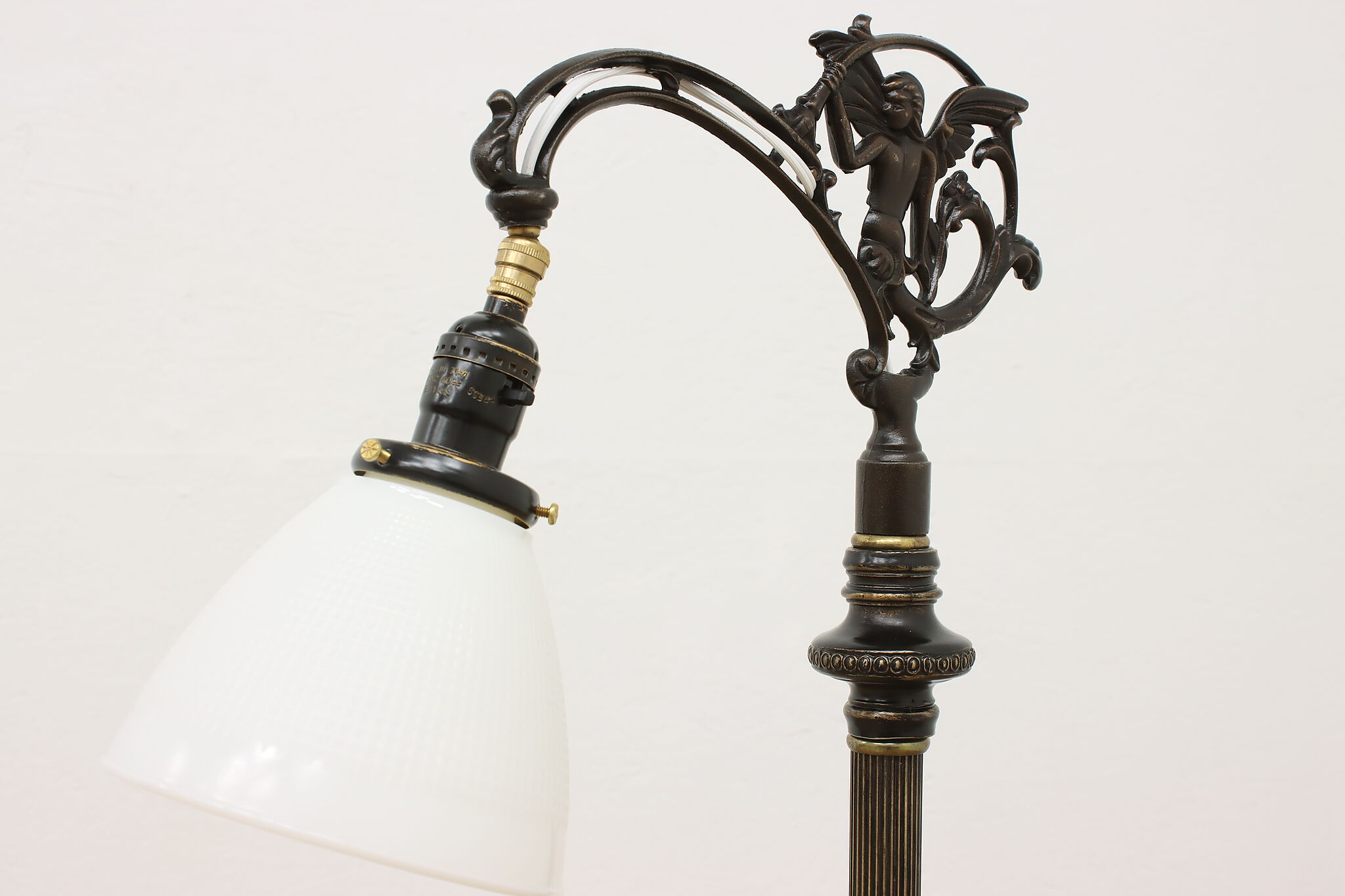 Your office or library deserves beautiful lighting like this Victorian period bridge lamp with its angel motif.