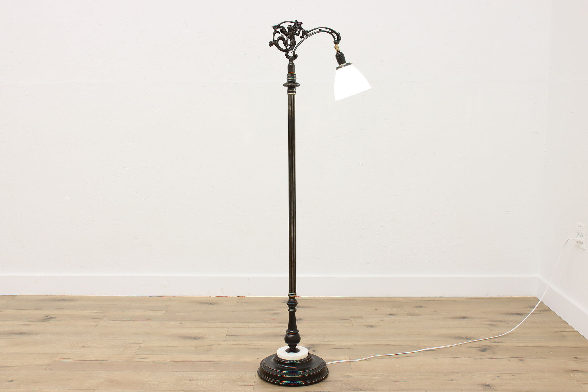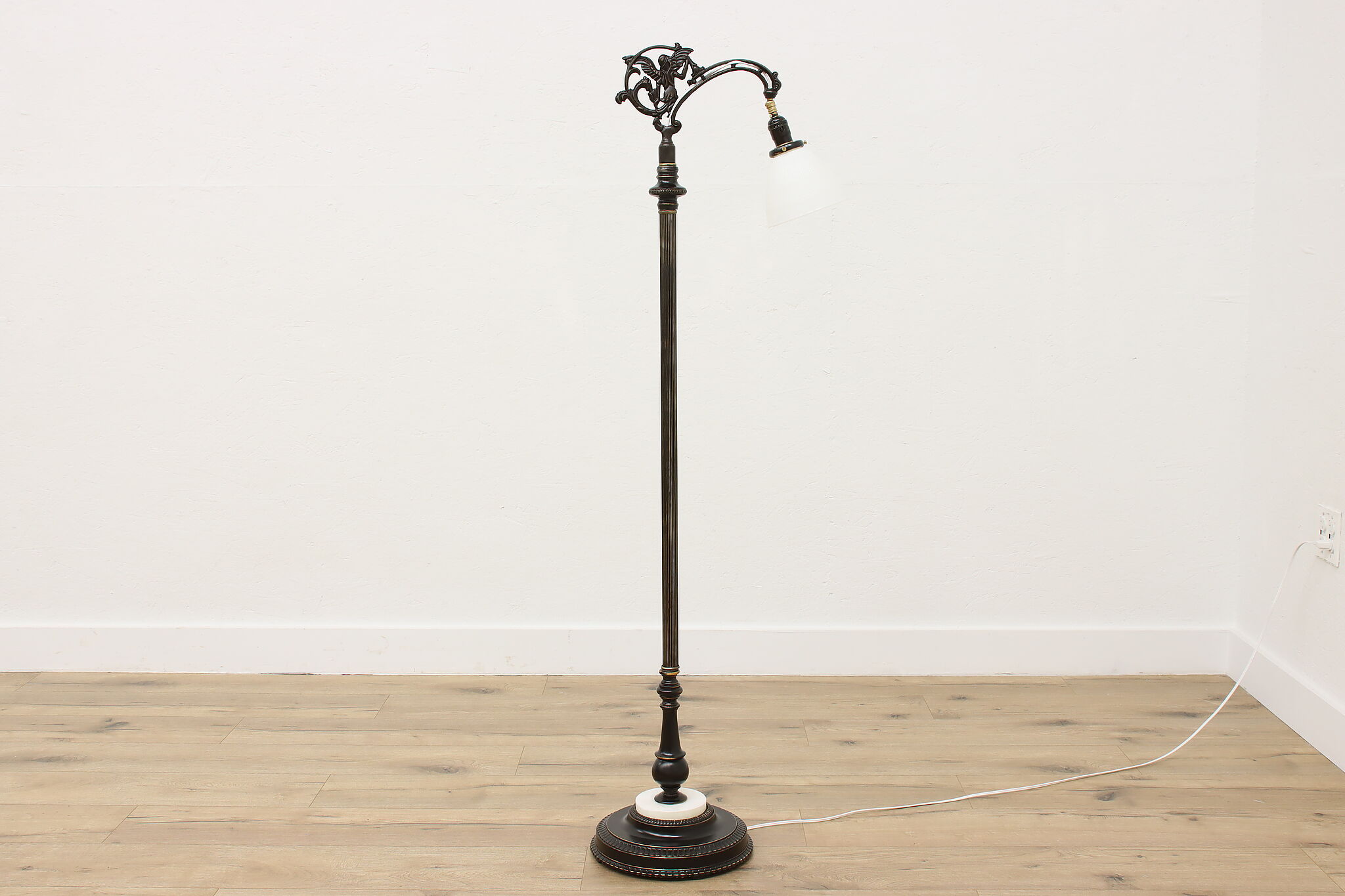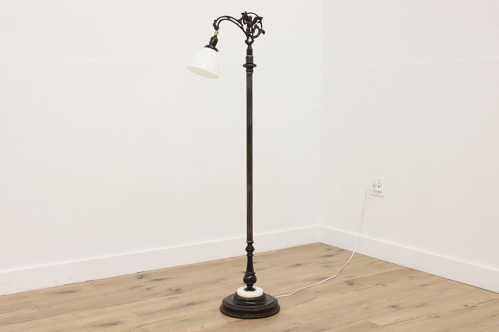 Your office or library deserves beautiful lighting like this Victorian period bridge lamp with its angel motif.