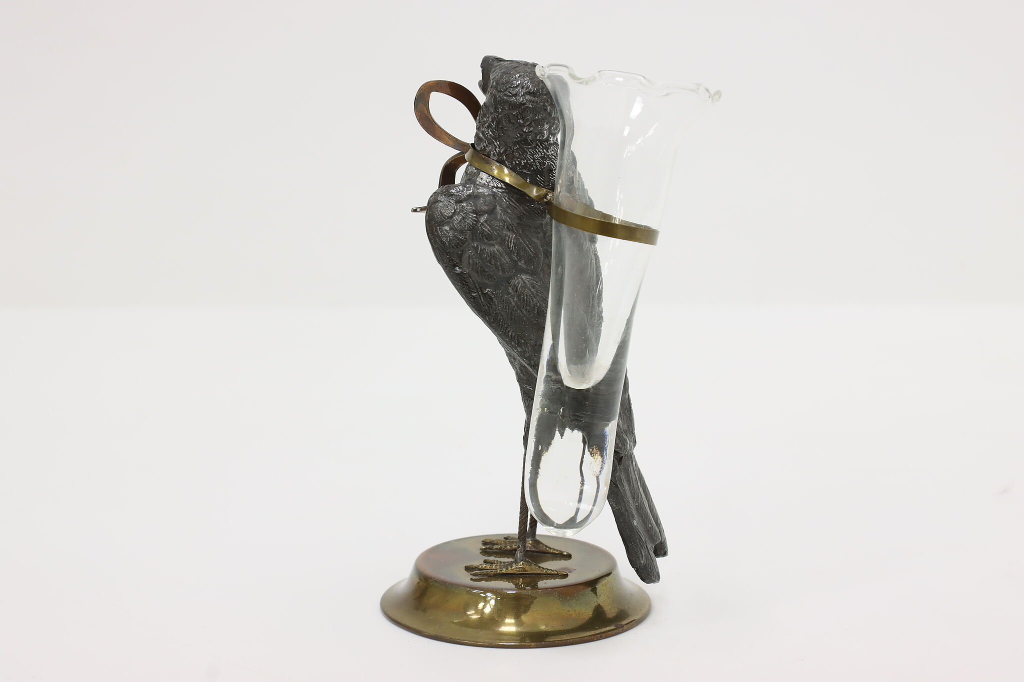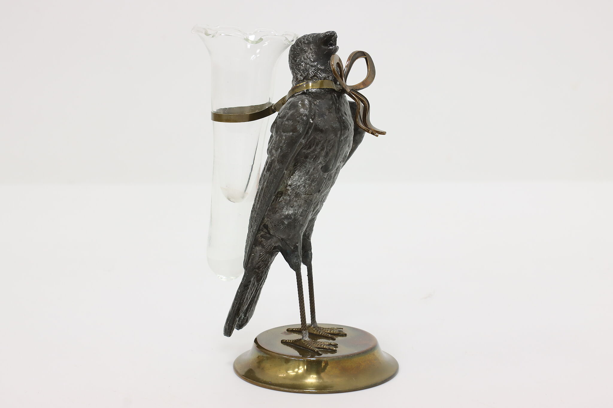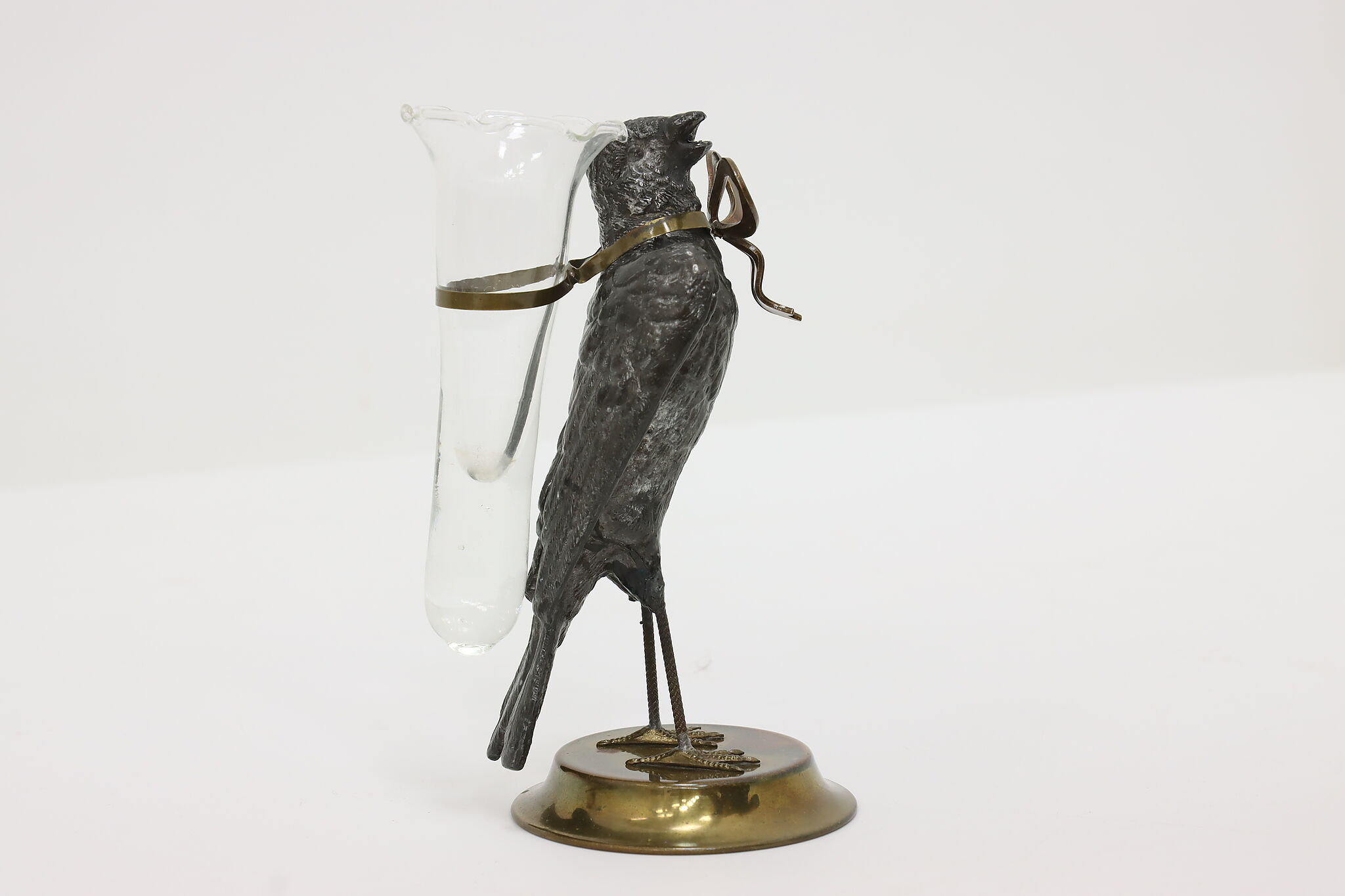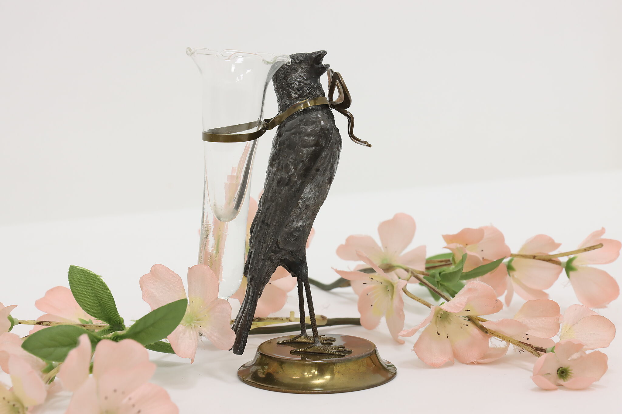 A blooming rose would be a beautiful addition to this sculpture of a sparrow.