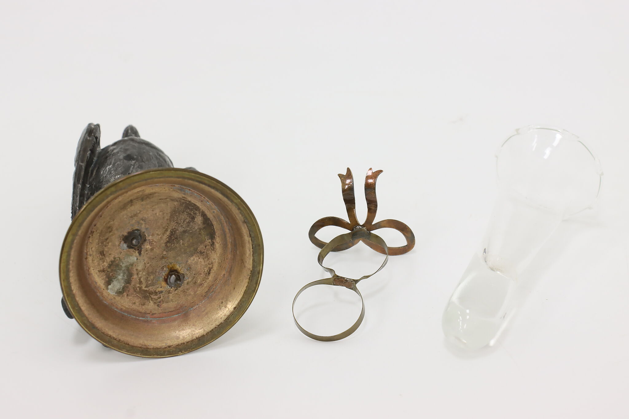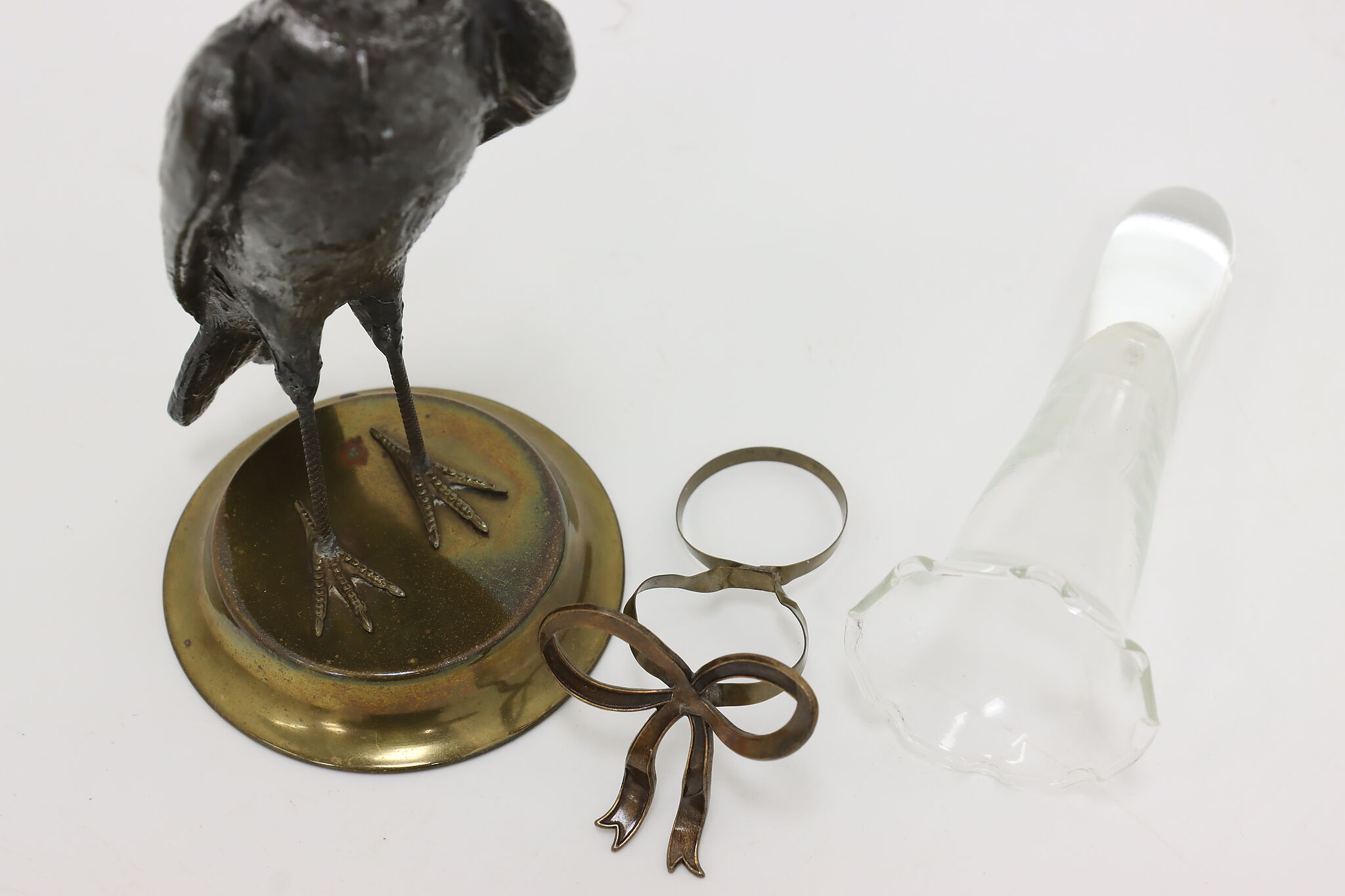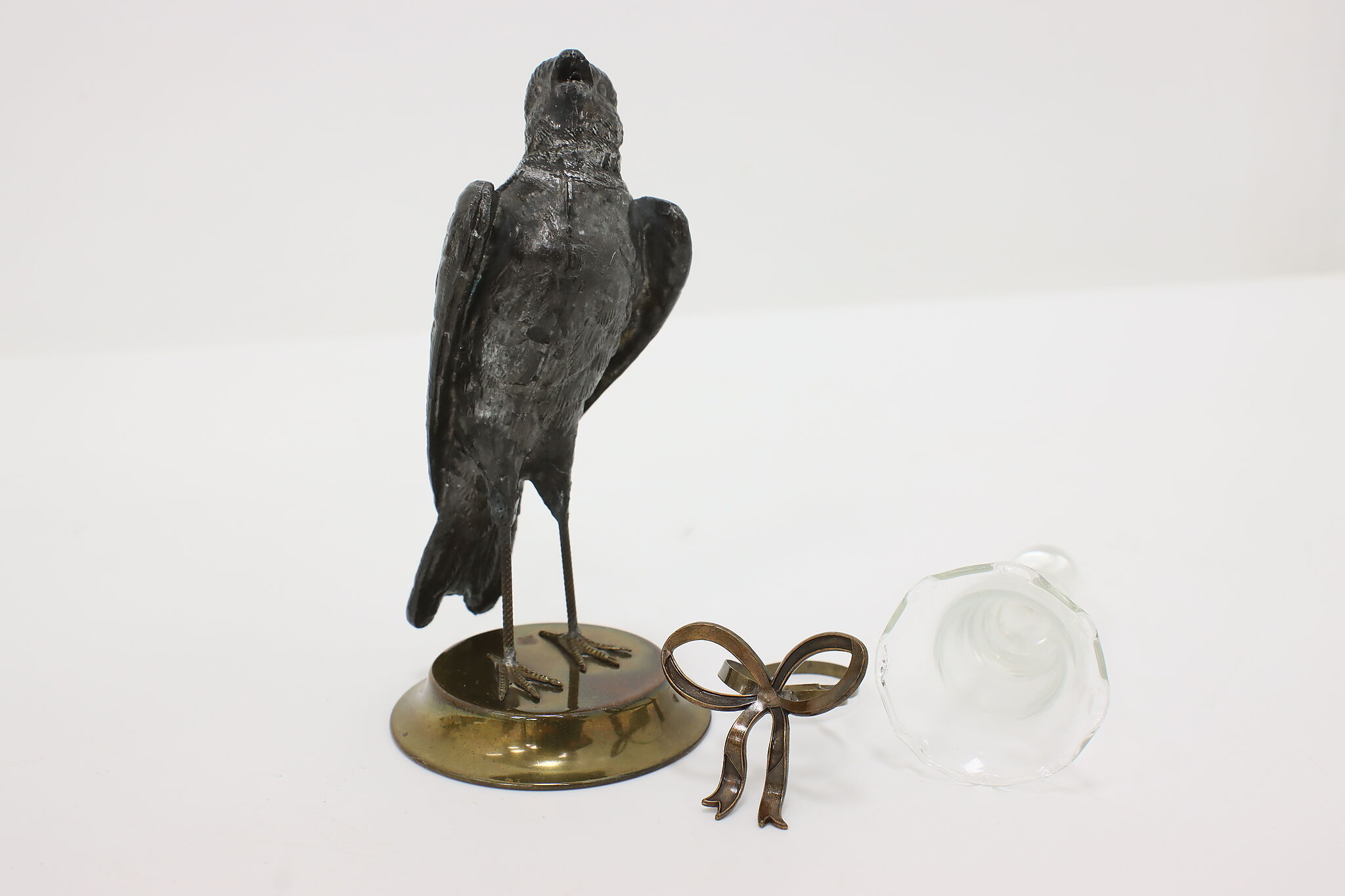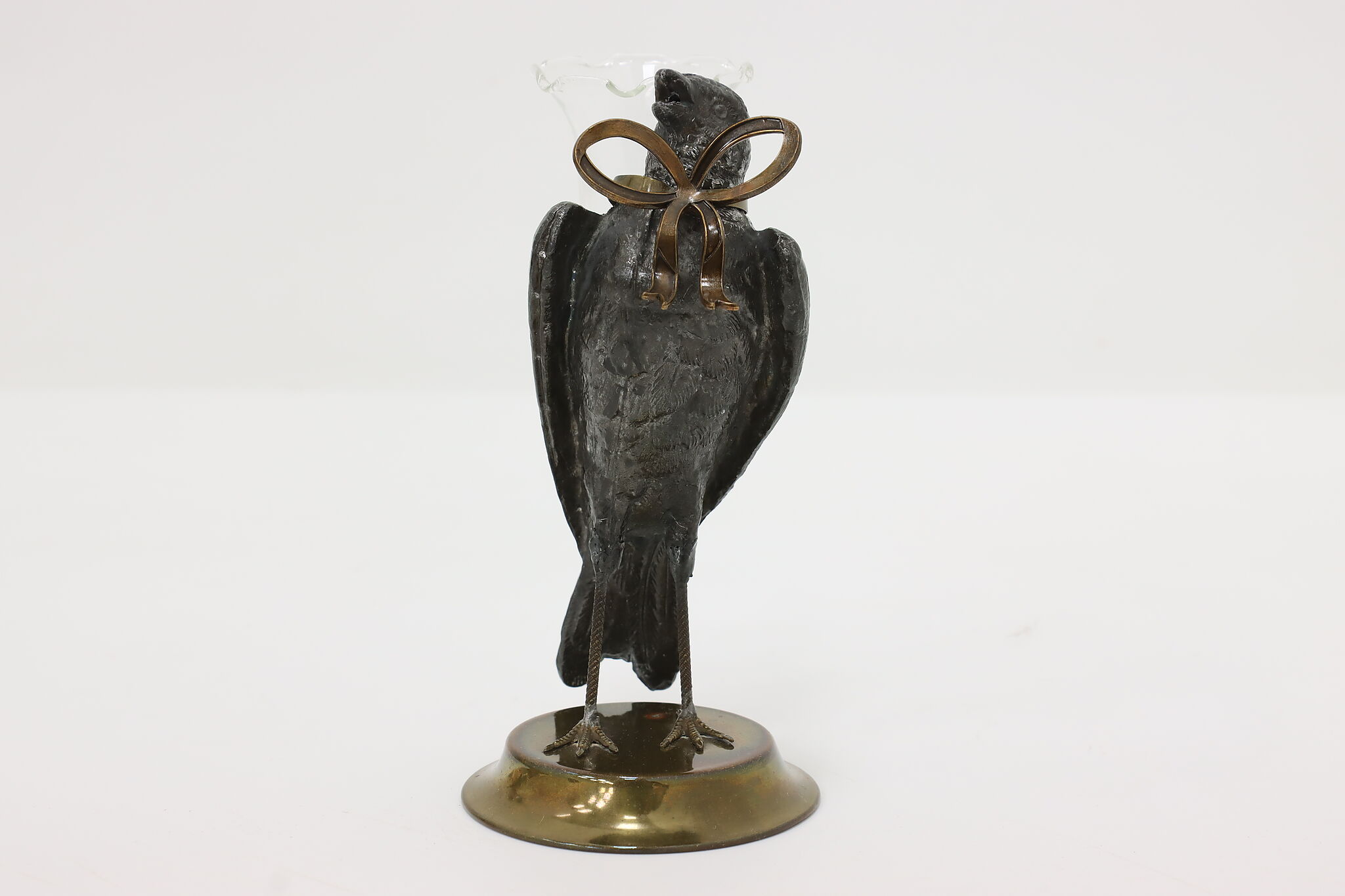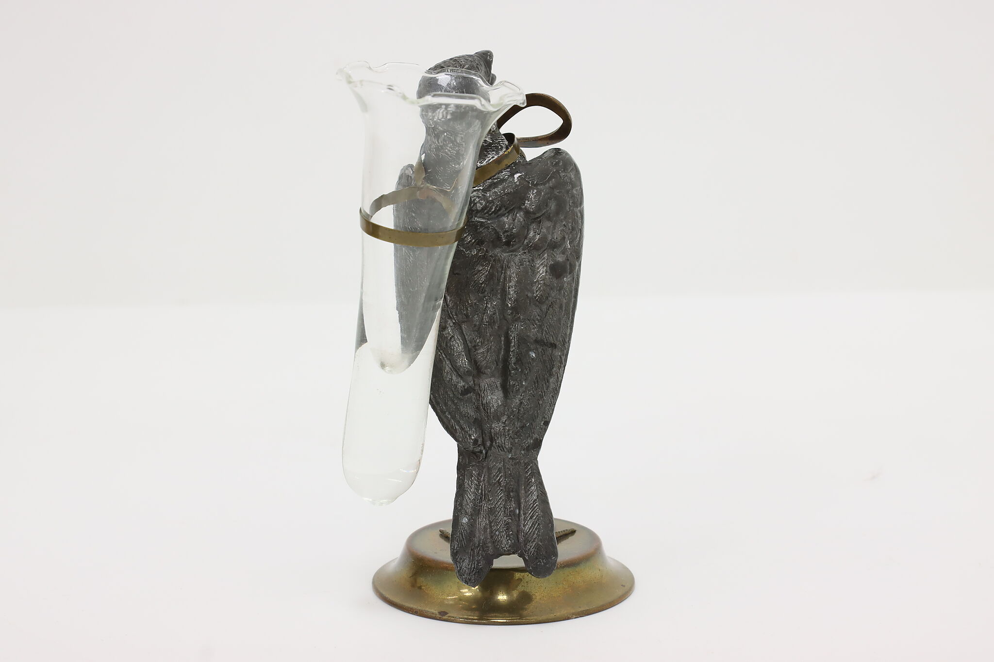 A blooming rose would be a beautiful addition to this sculpture of a sparrow.