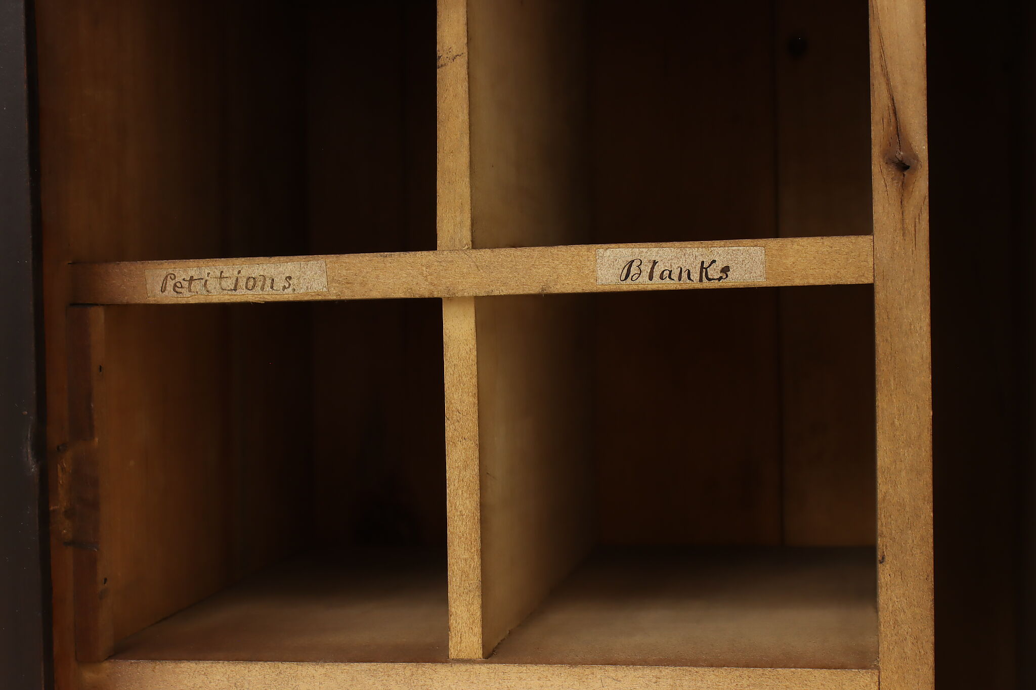 Salvaged from a Victorian era hotel, this wall hanging or counter top mail file cabinet could be repurposed for bath supplies.