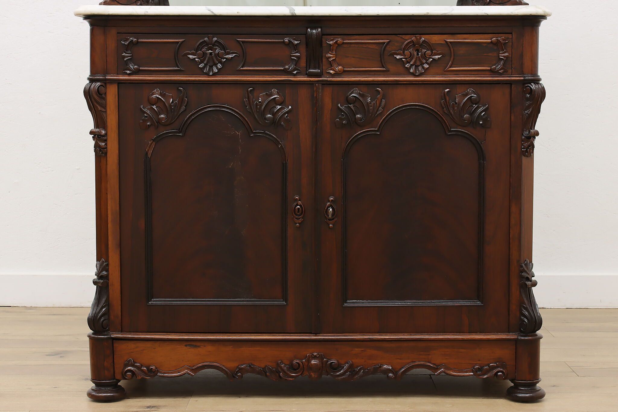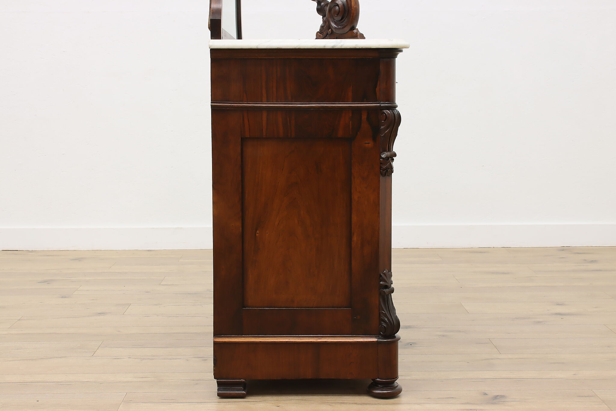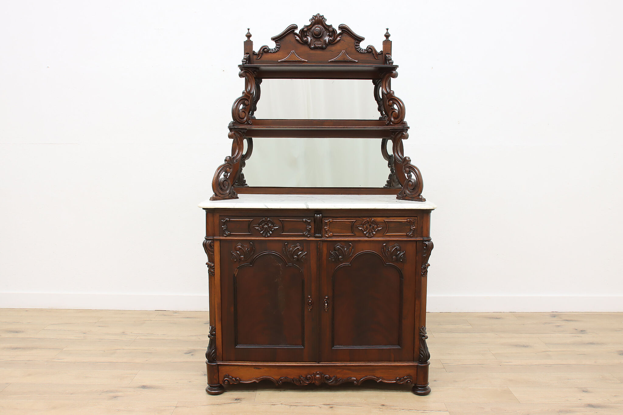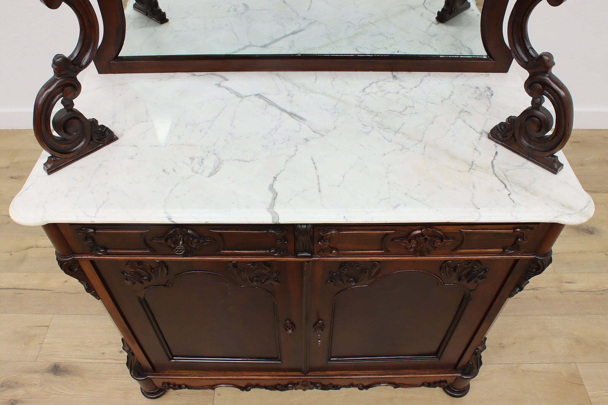 This gorgeous Victorian era buffet, bar, or display cabinet has a secret drawer on the bottom to hide valuables or maybe sweet treats!