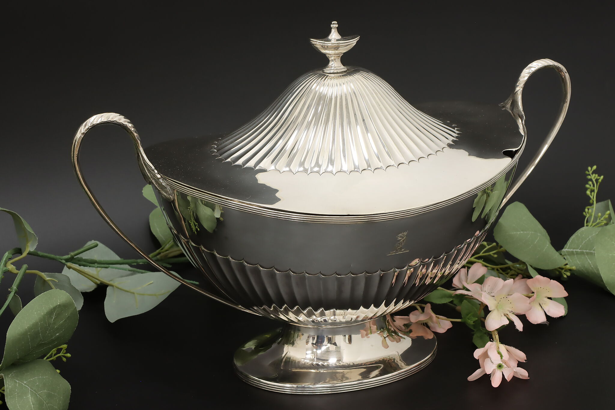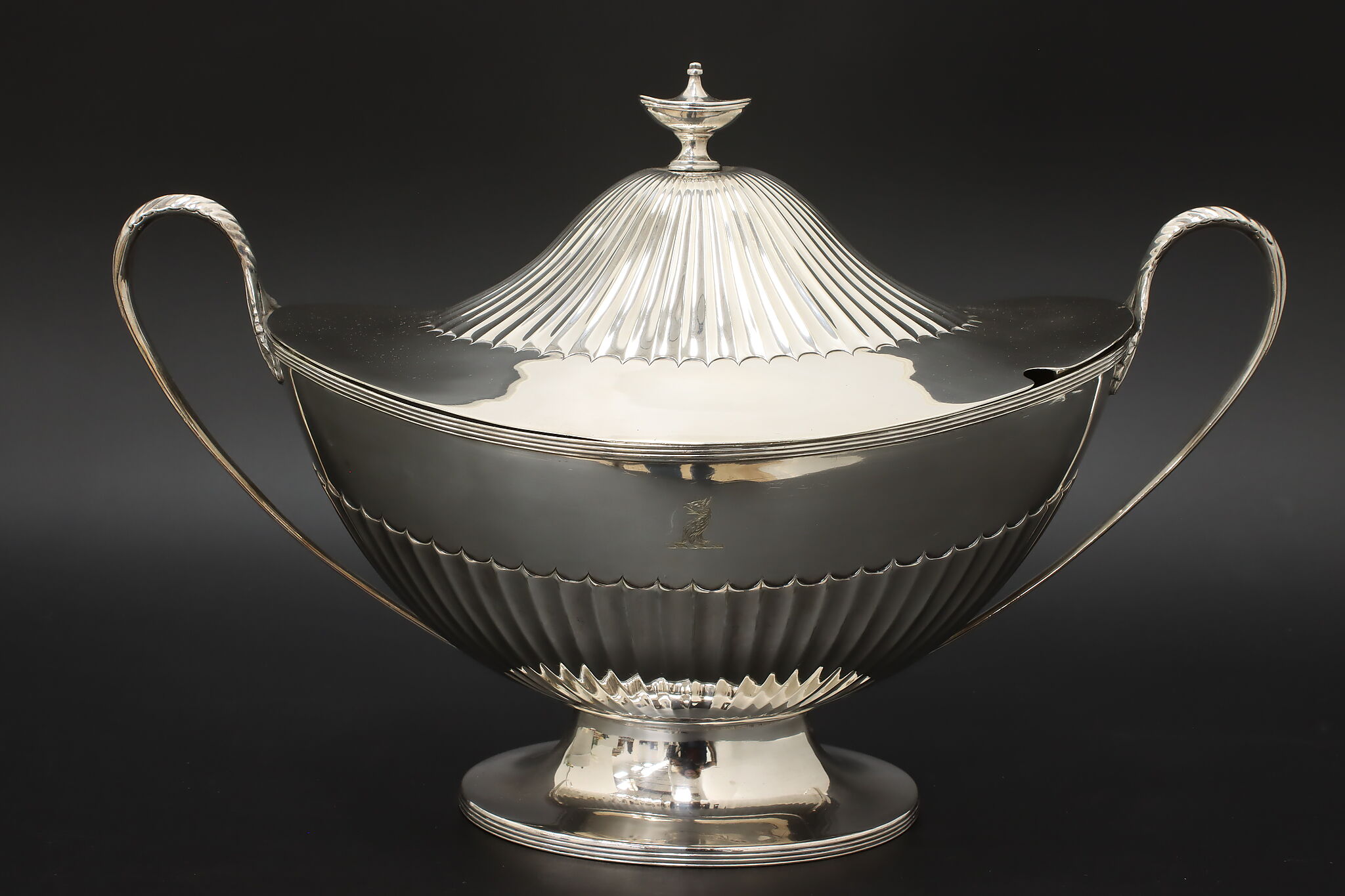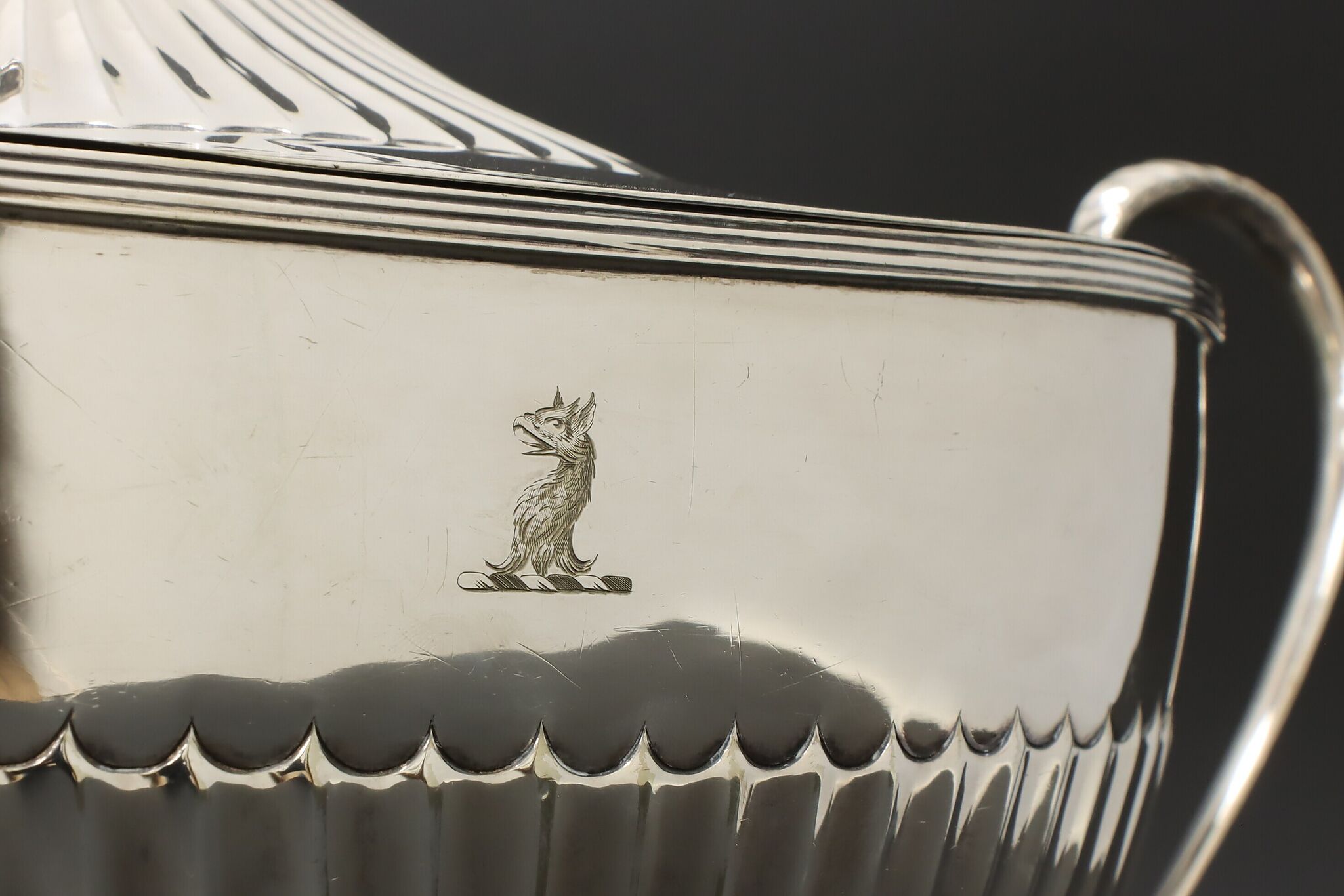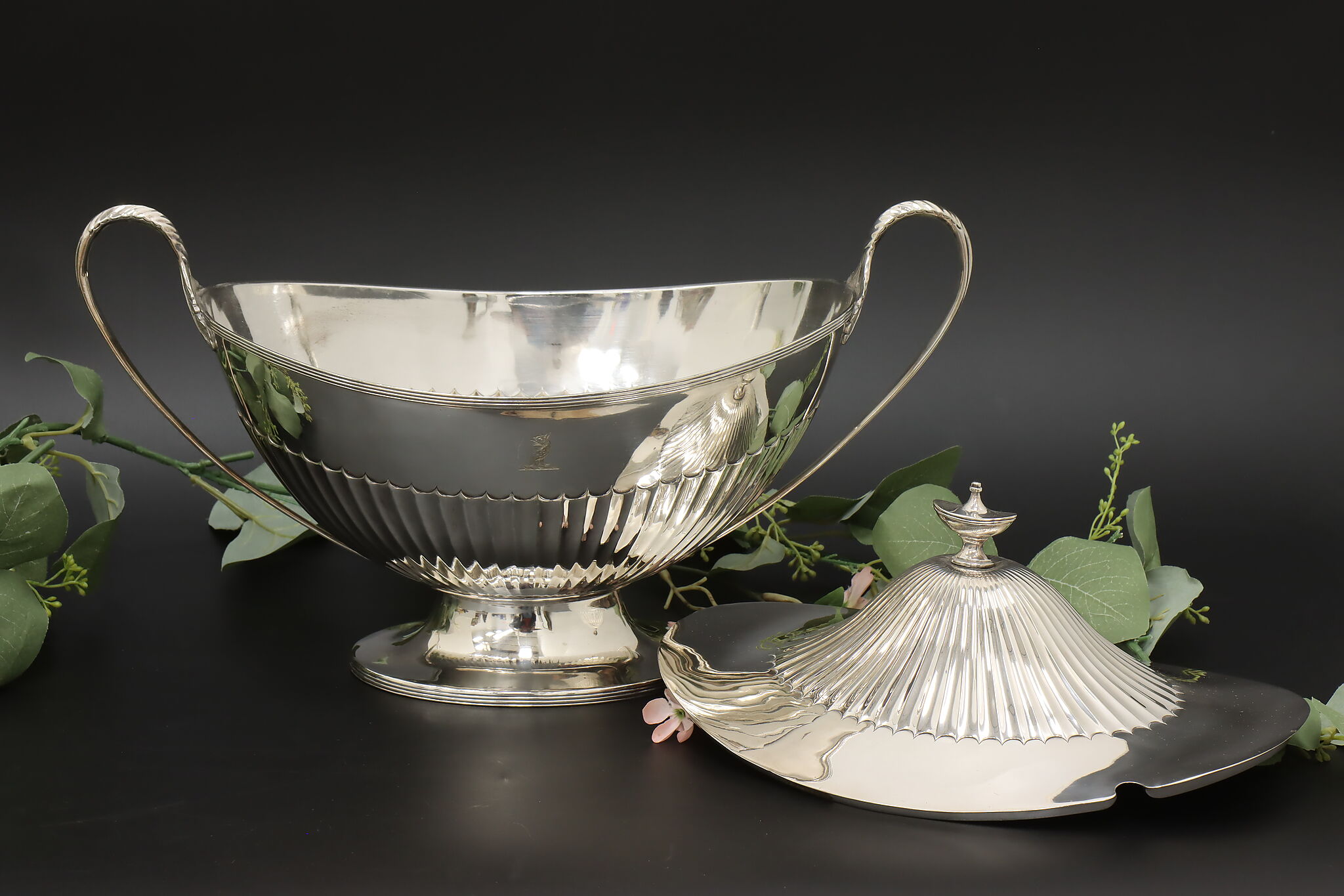 This fabulous Victorian period soup tureen or bowl has an engraved griffin's head, perhaps given as a gift to an aristocratic family.