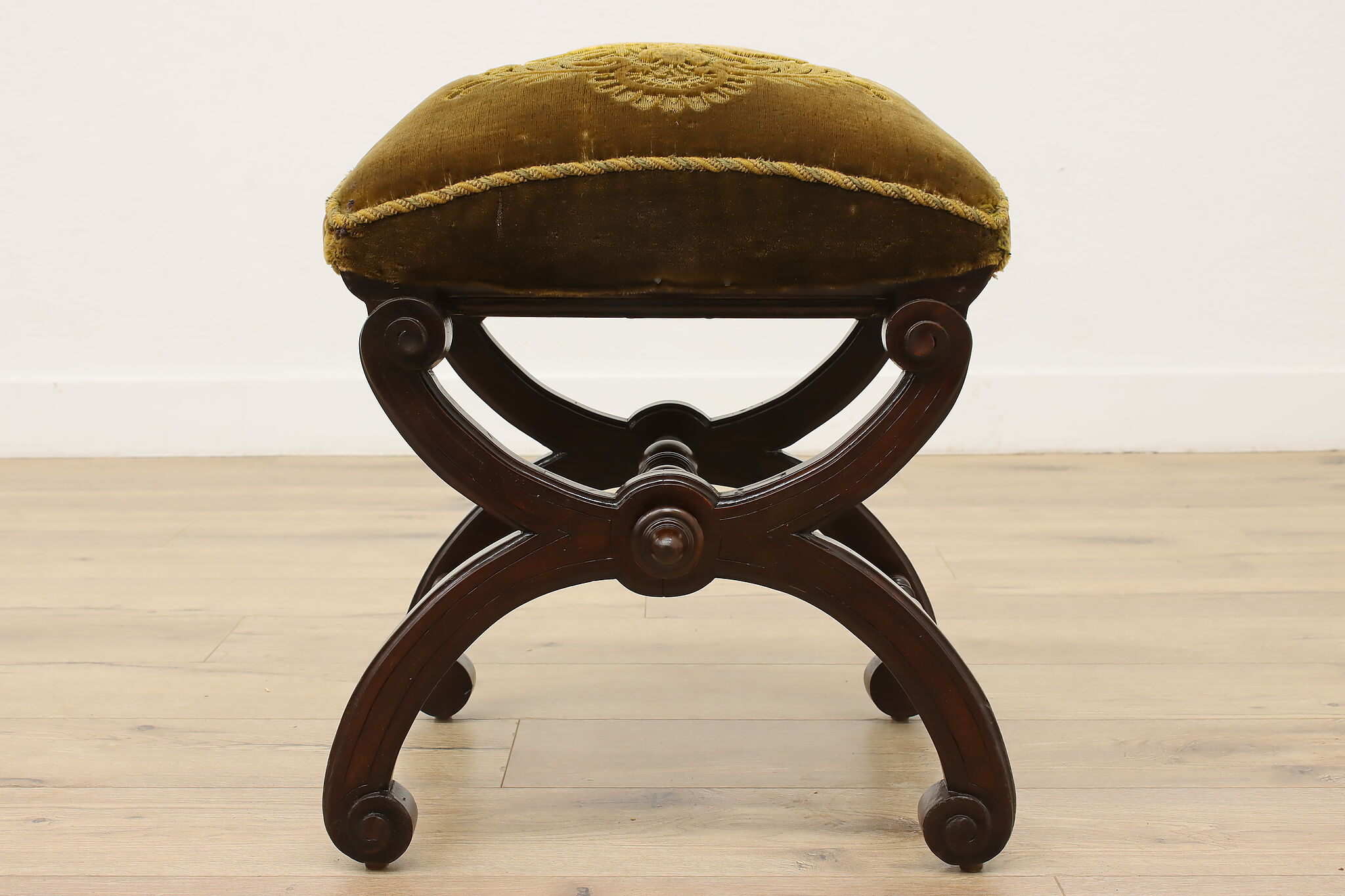 A Victorian period stool or bench appears to have its original soft mohair brocade upholstery.