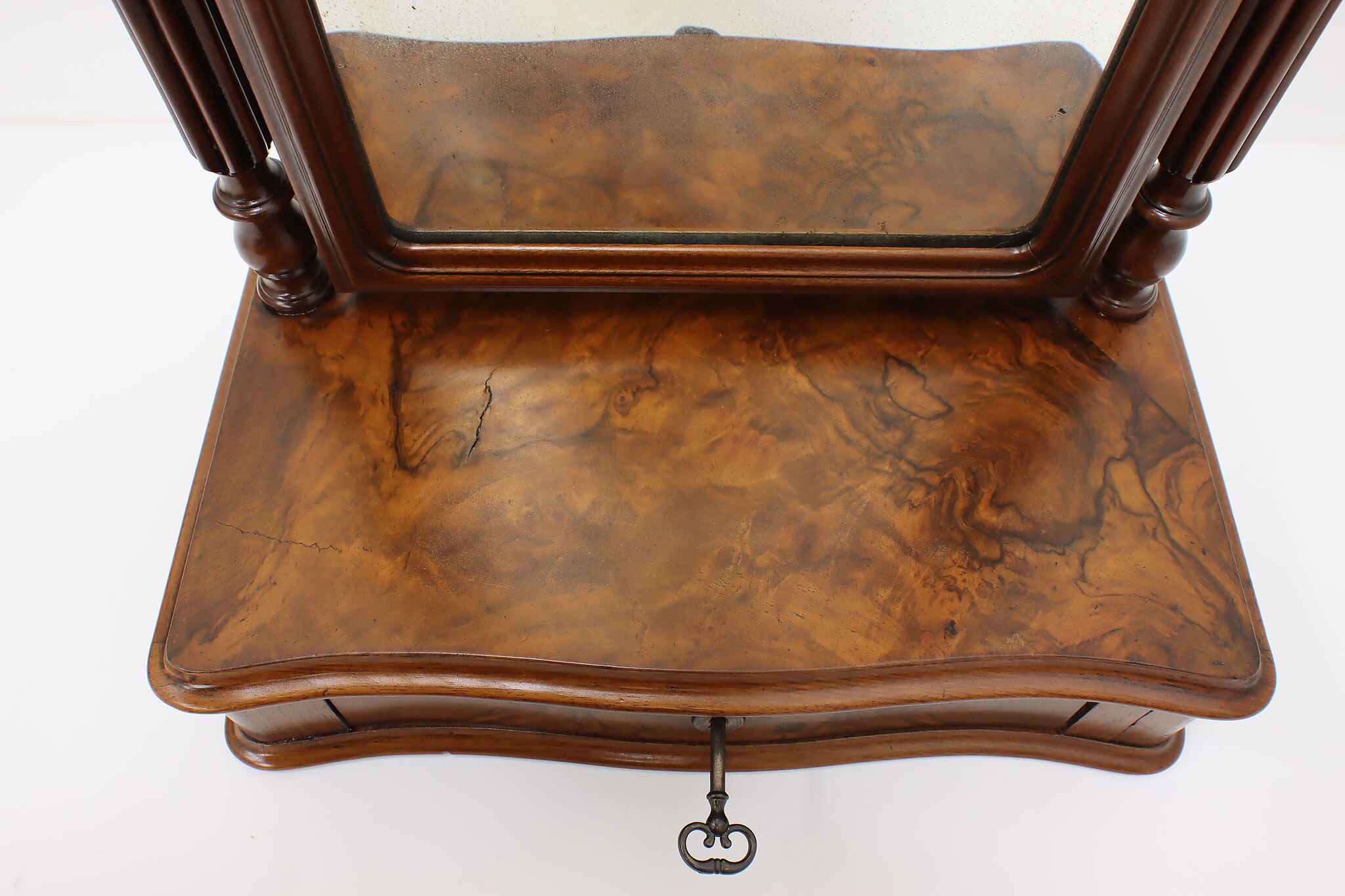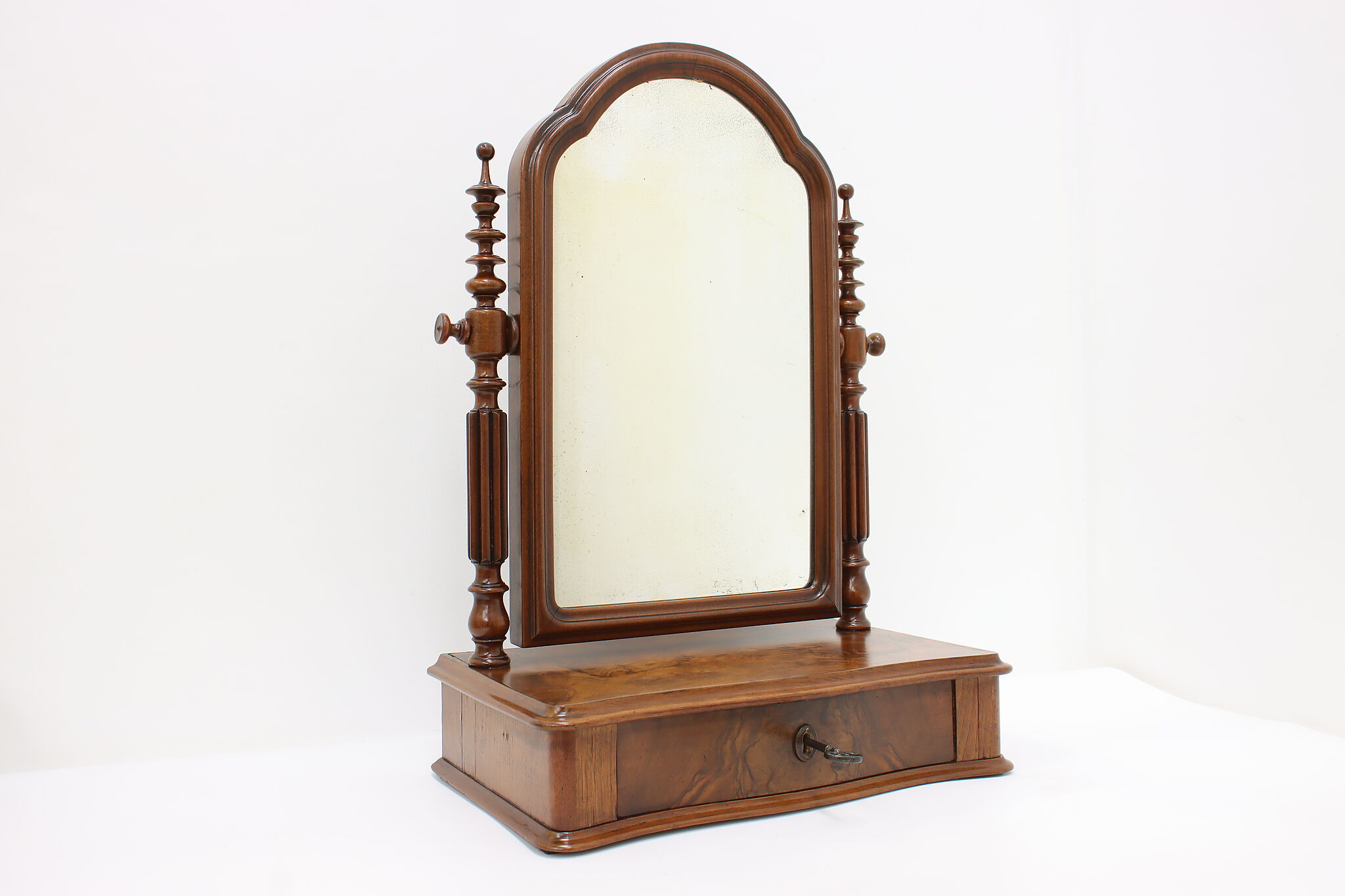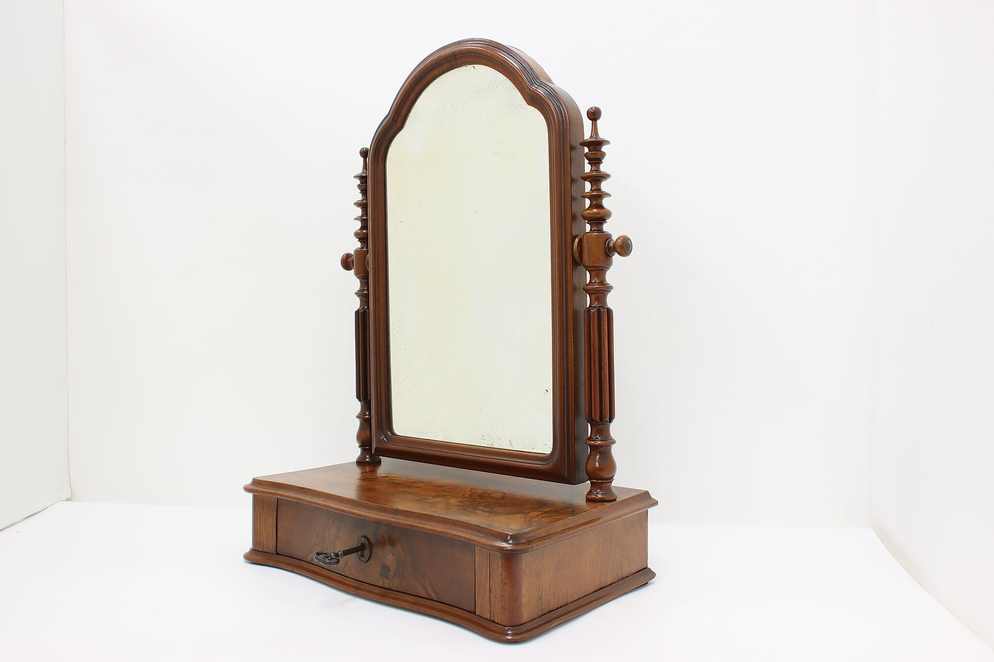 Do your beauty routine from any tabletop within your house with this portable Victorian era mirror and jewelry chest.