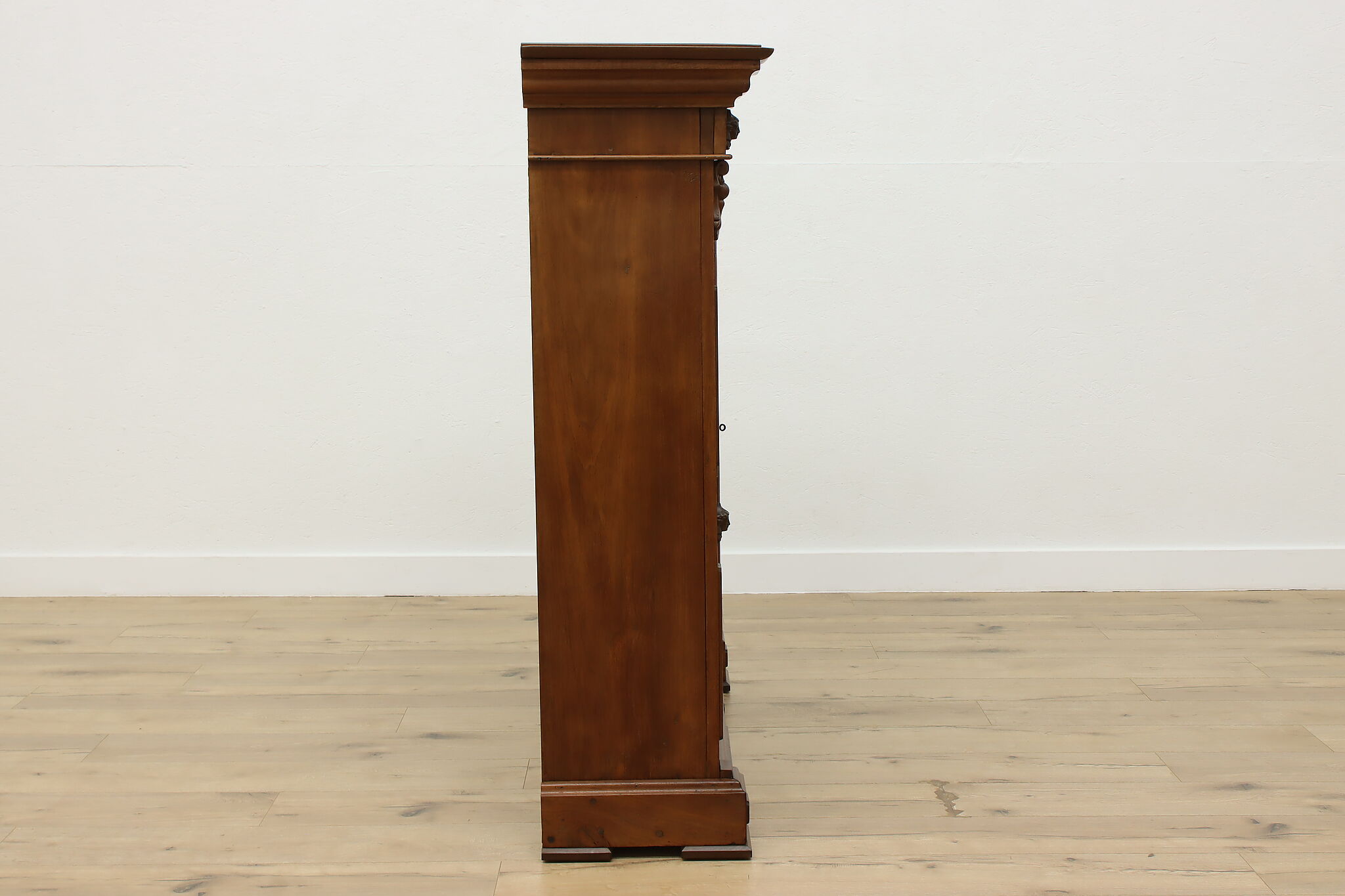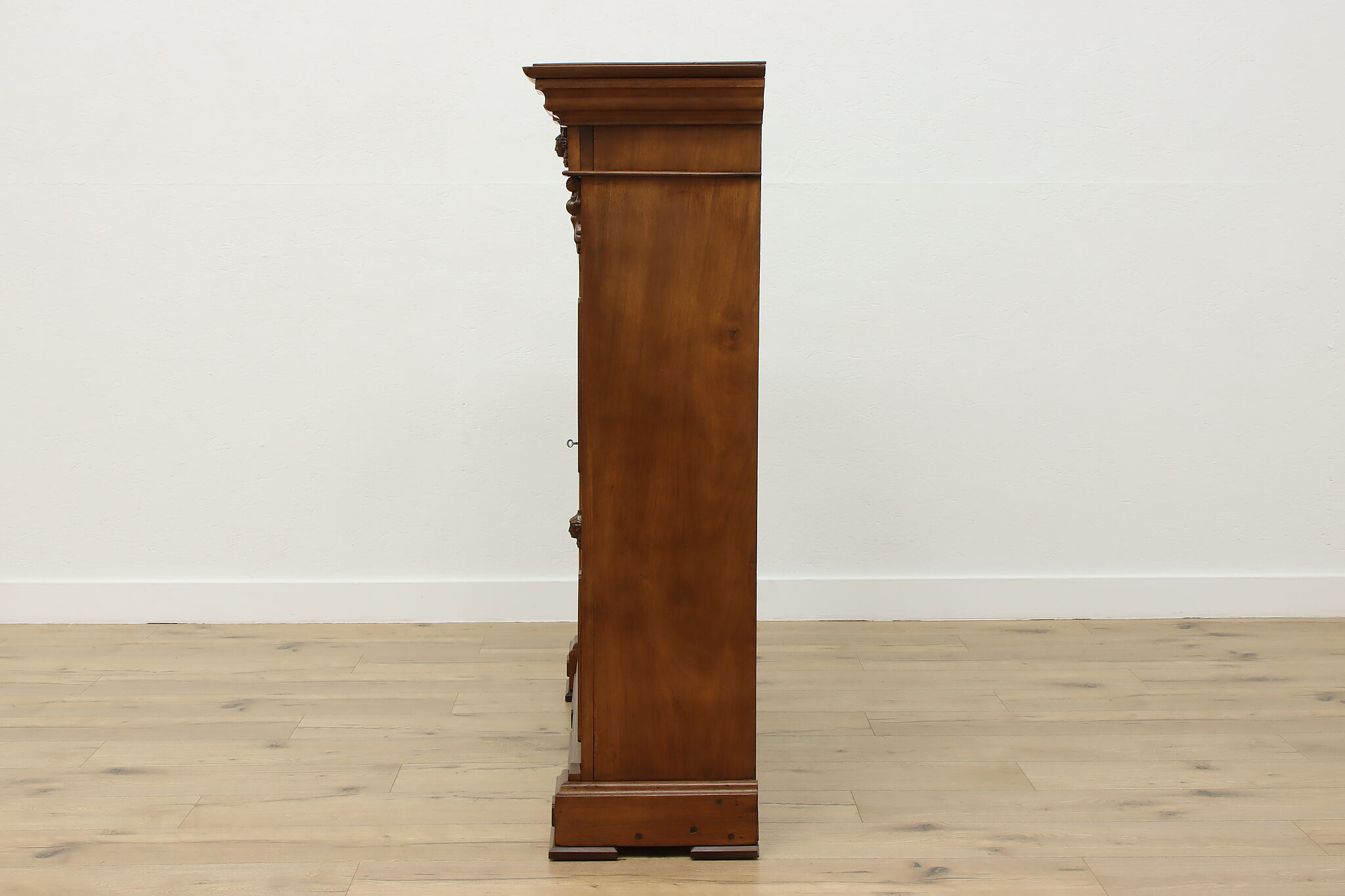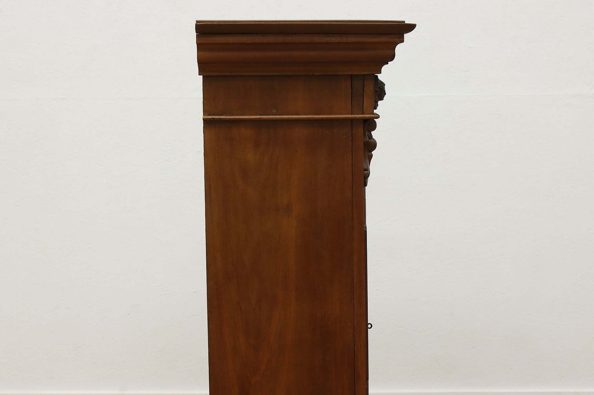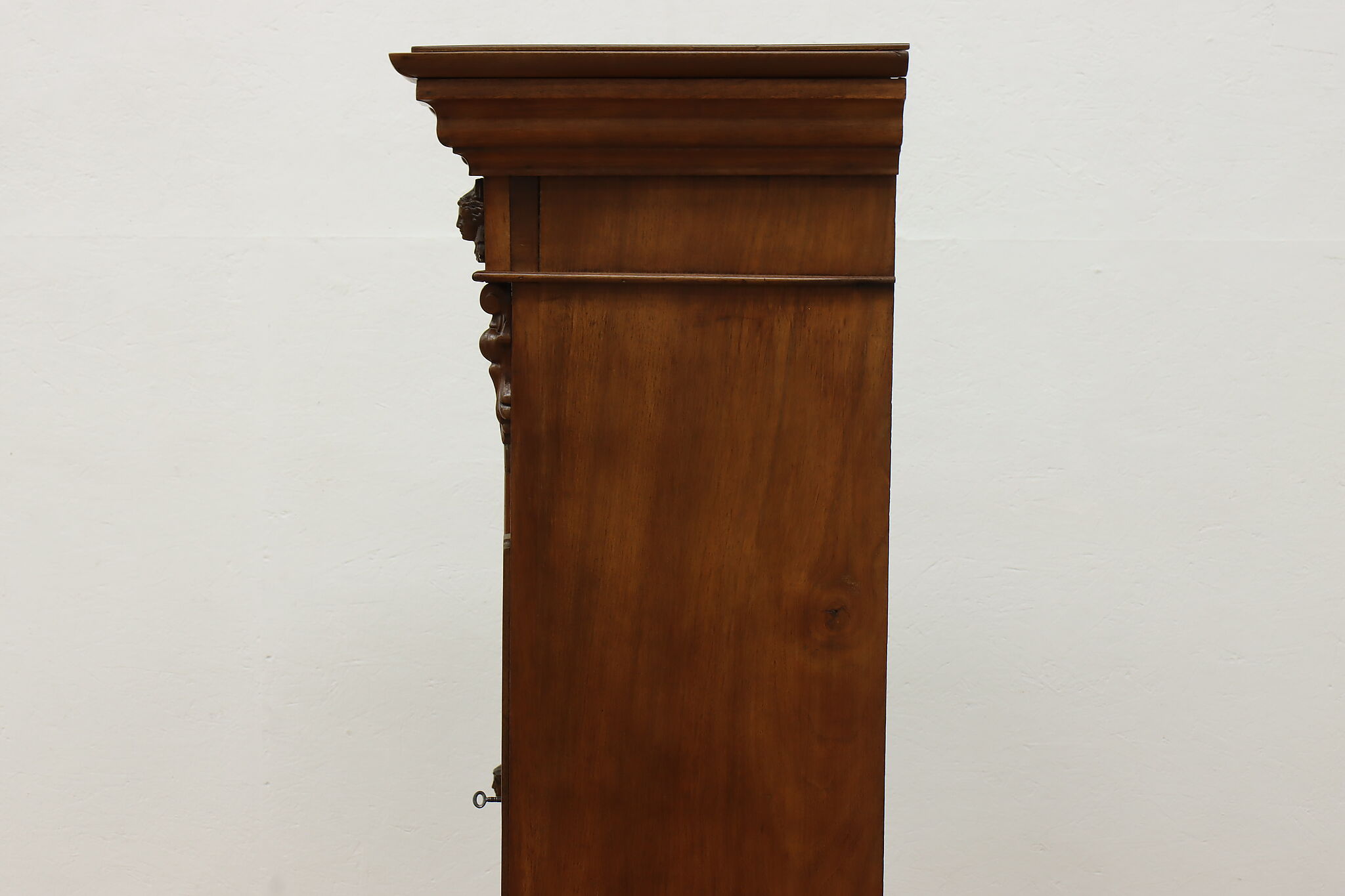 A Victorian era display cabinet or bookcase has carved busts of women, perhaps protectors of your valuables!