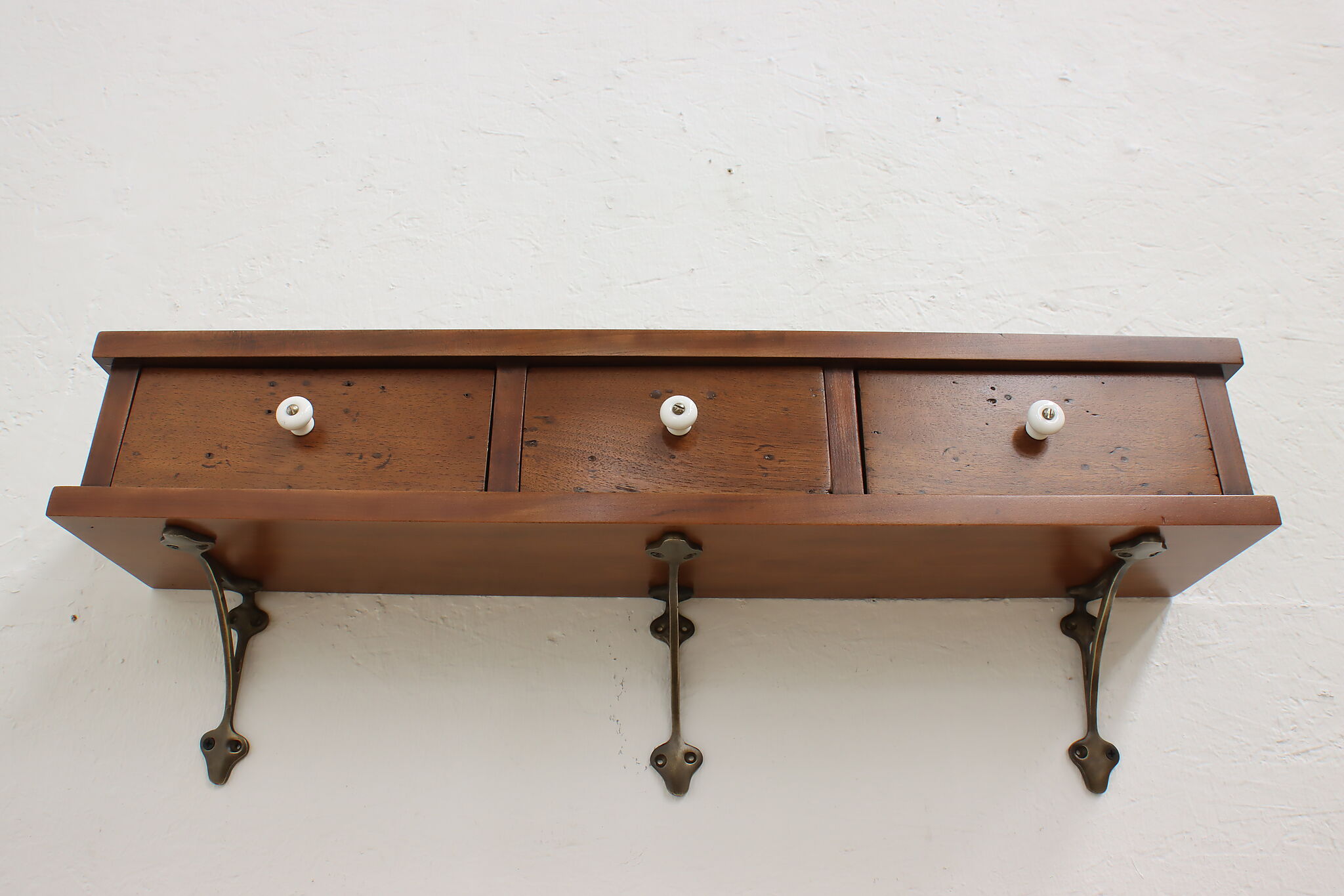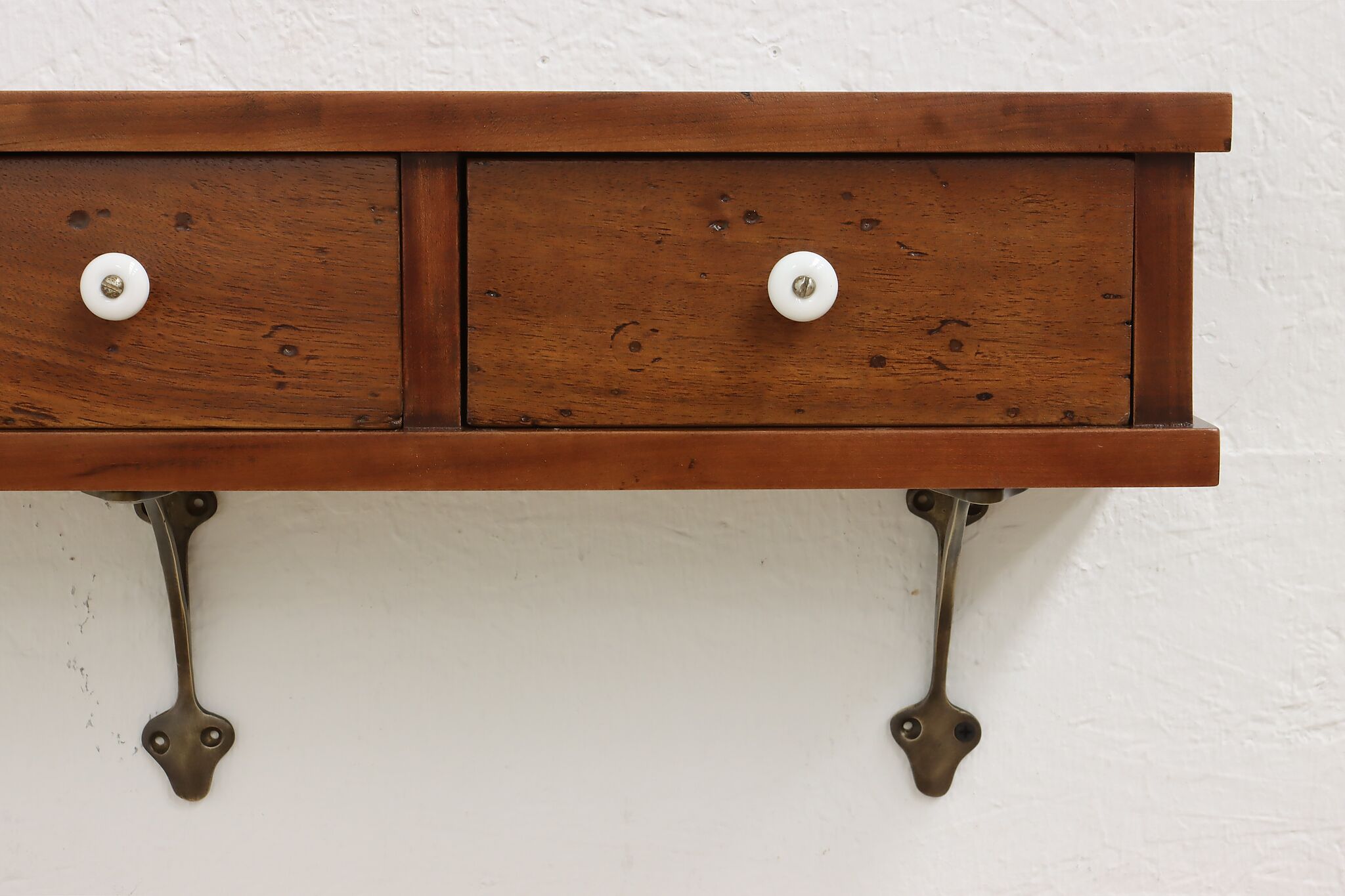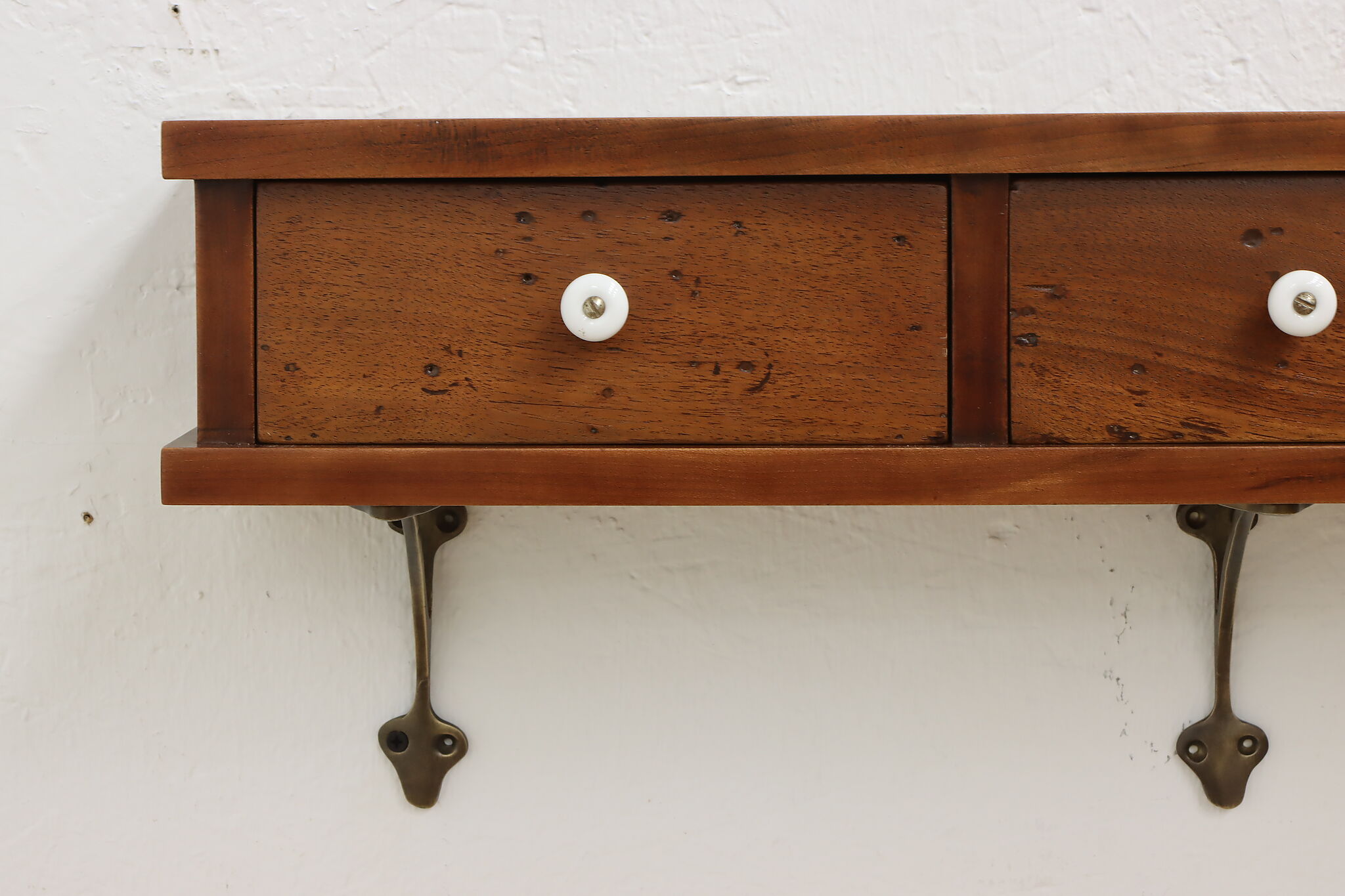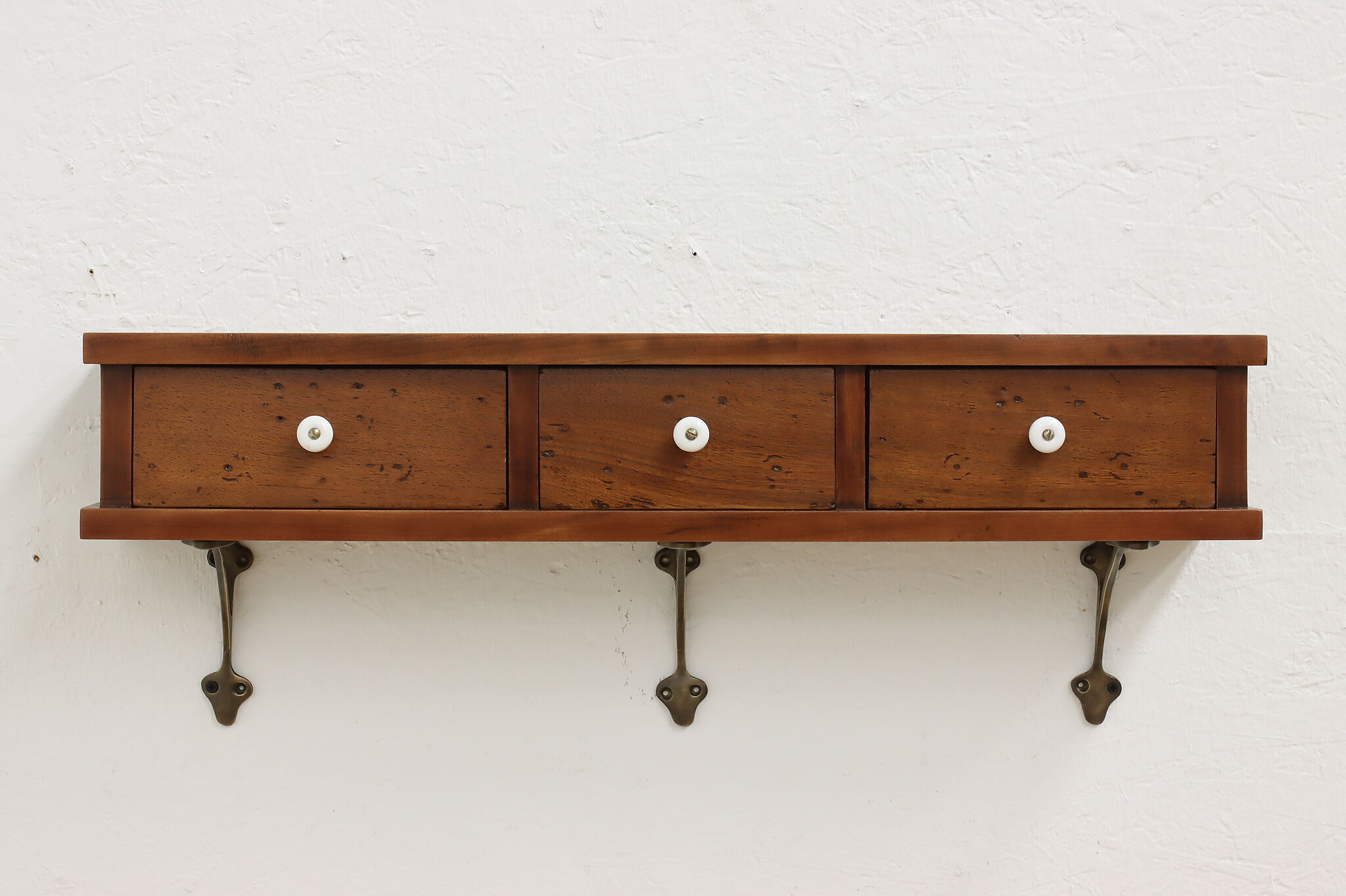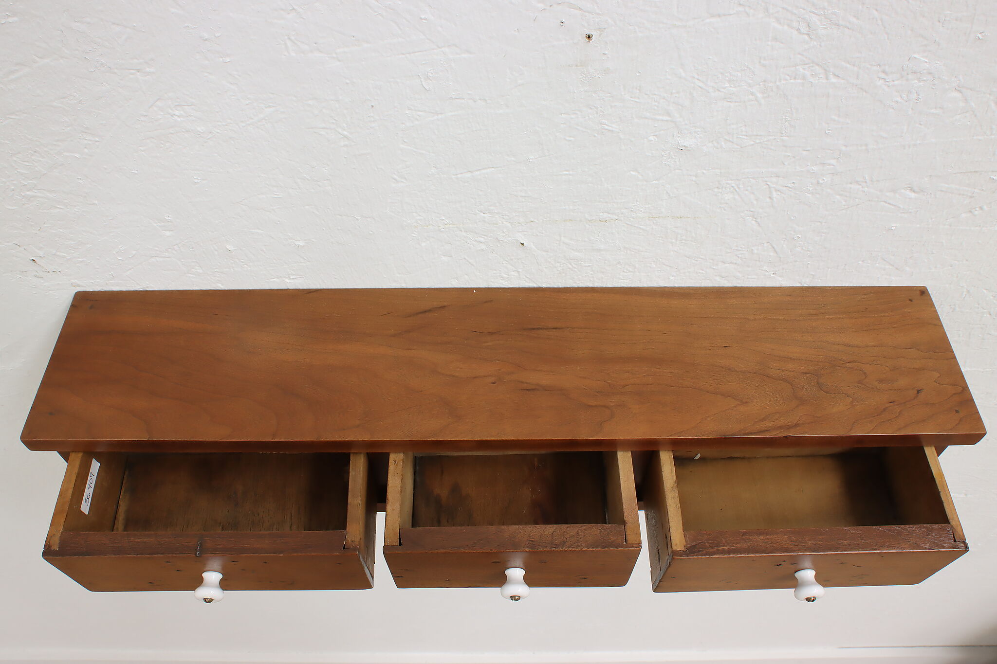 This darling Victorian era wall shelf has three drawers and would be a lovely way to display and collect trinkets.
