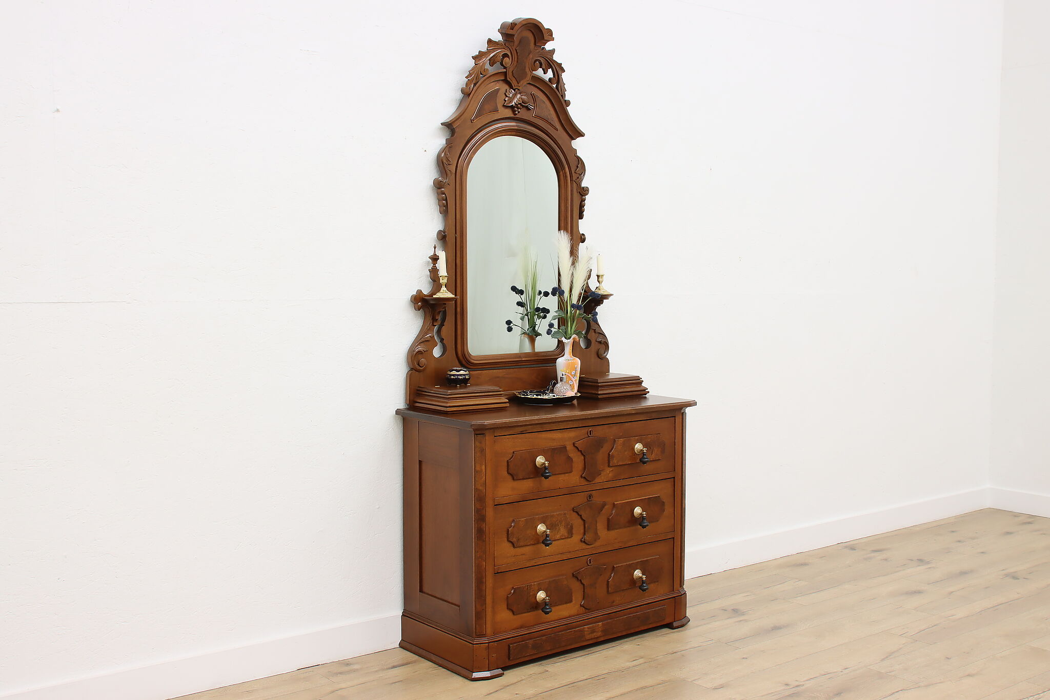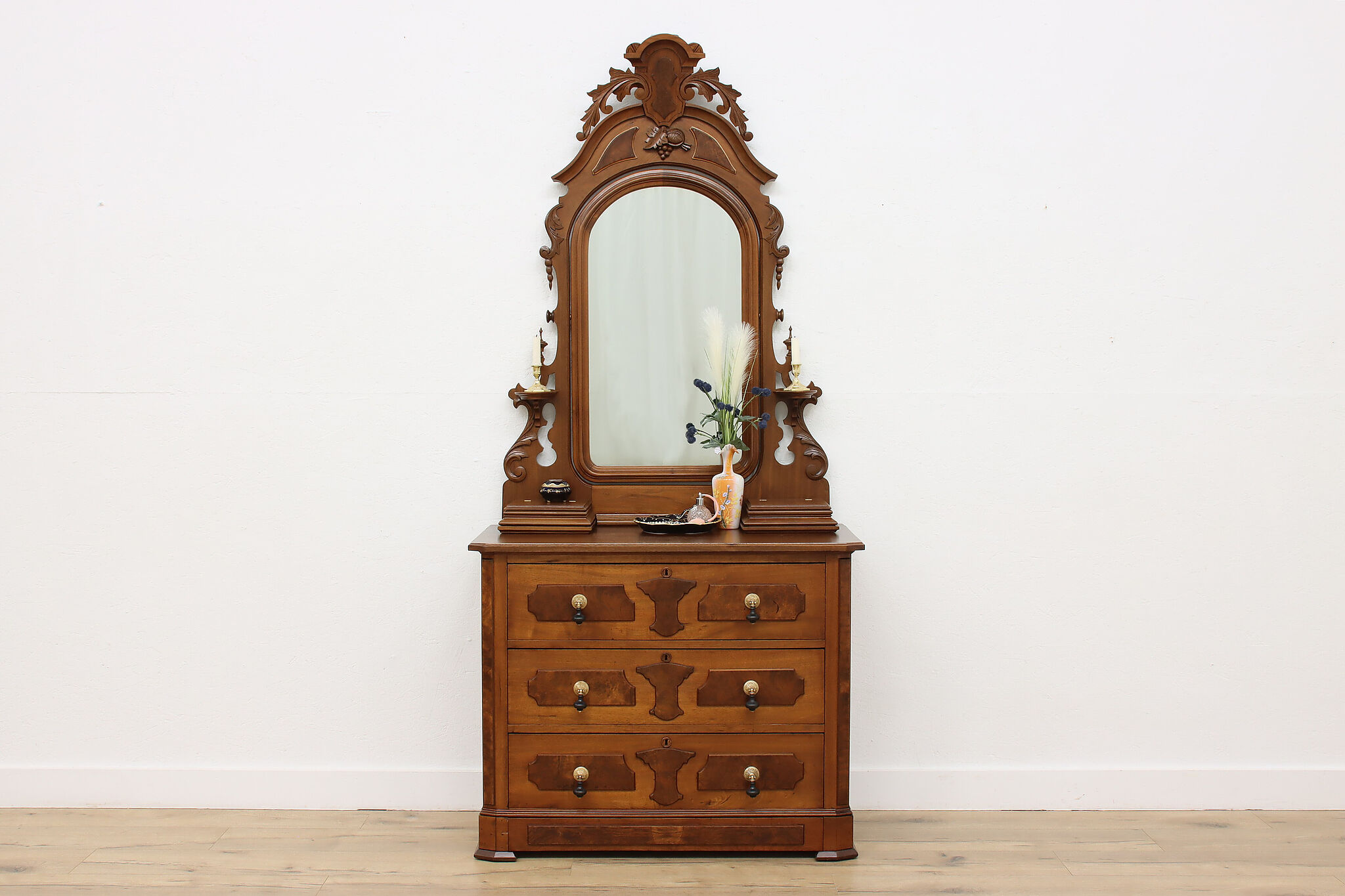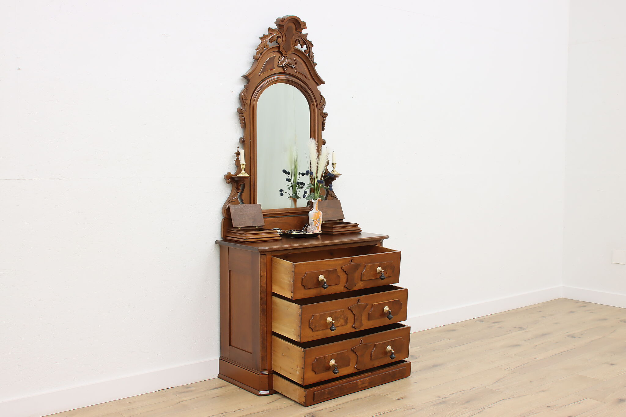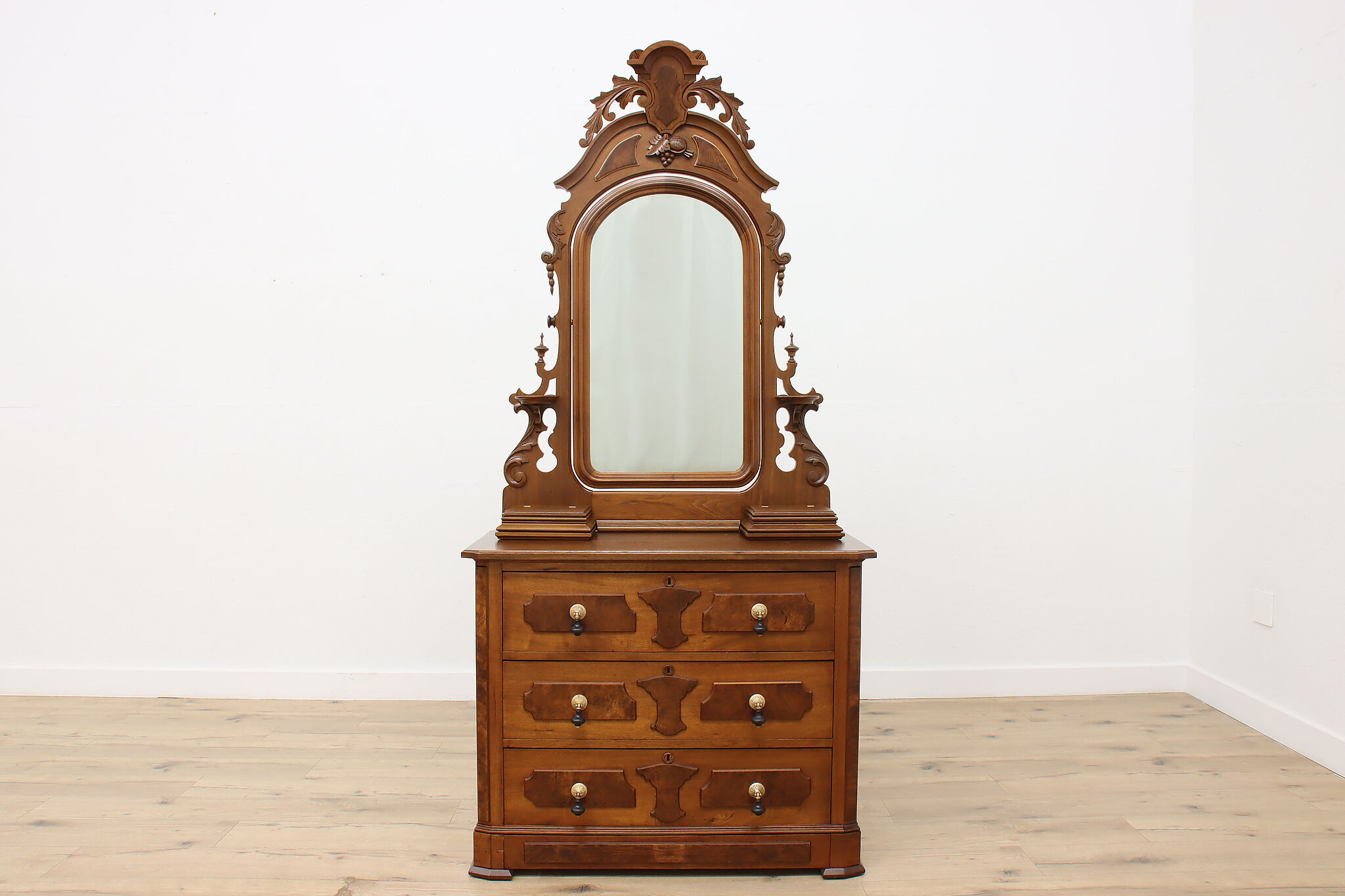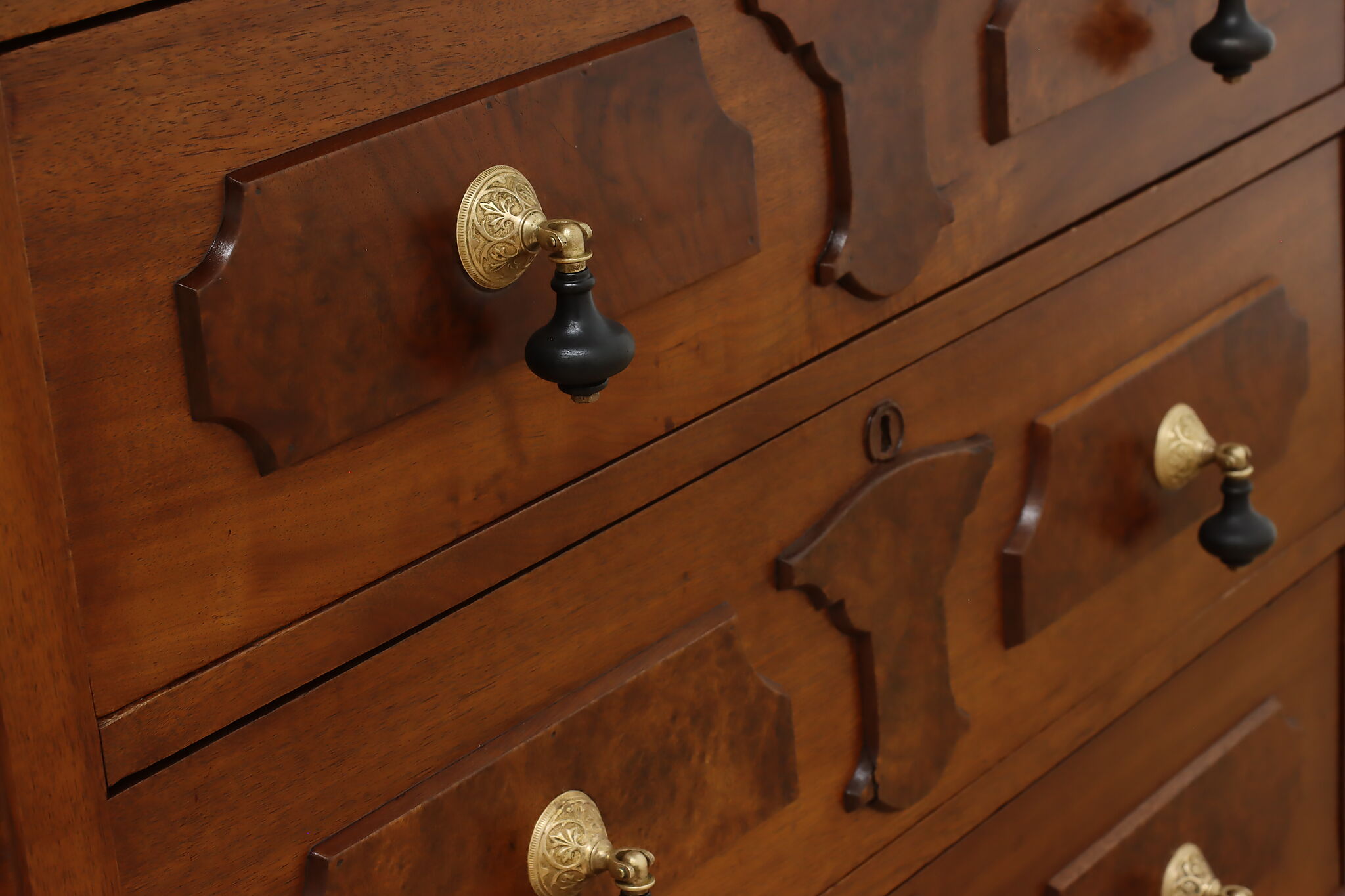 This Victorian era dresser or chest with a secret drawer will add beauty to your bedroom with its carved fruit and leaves.