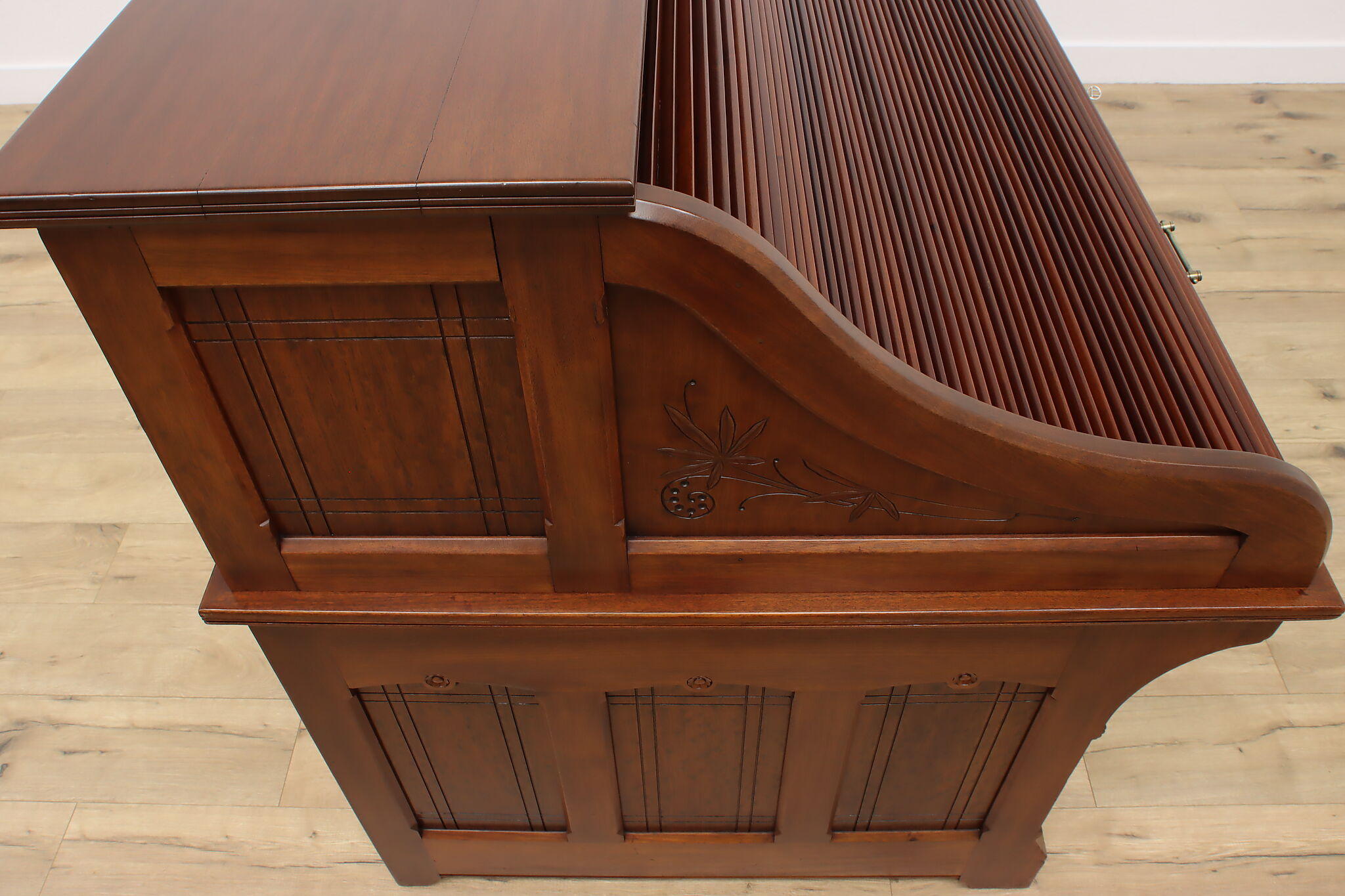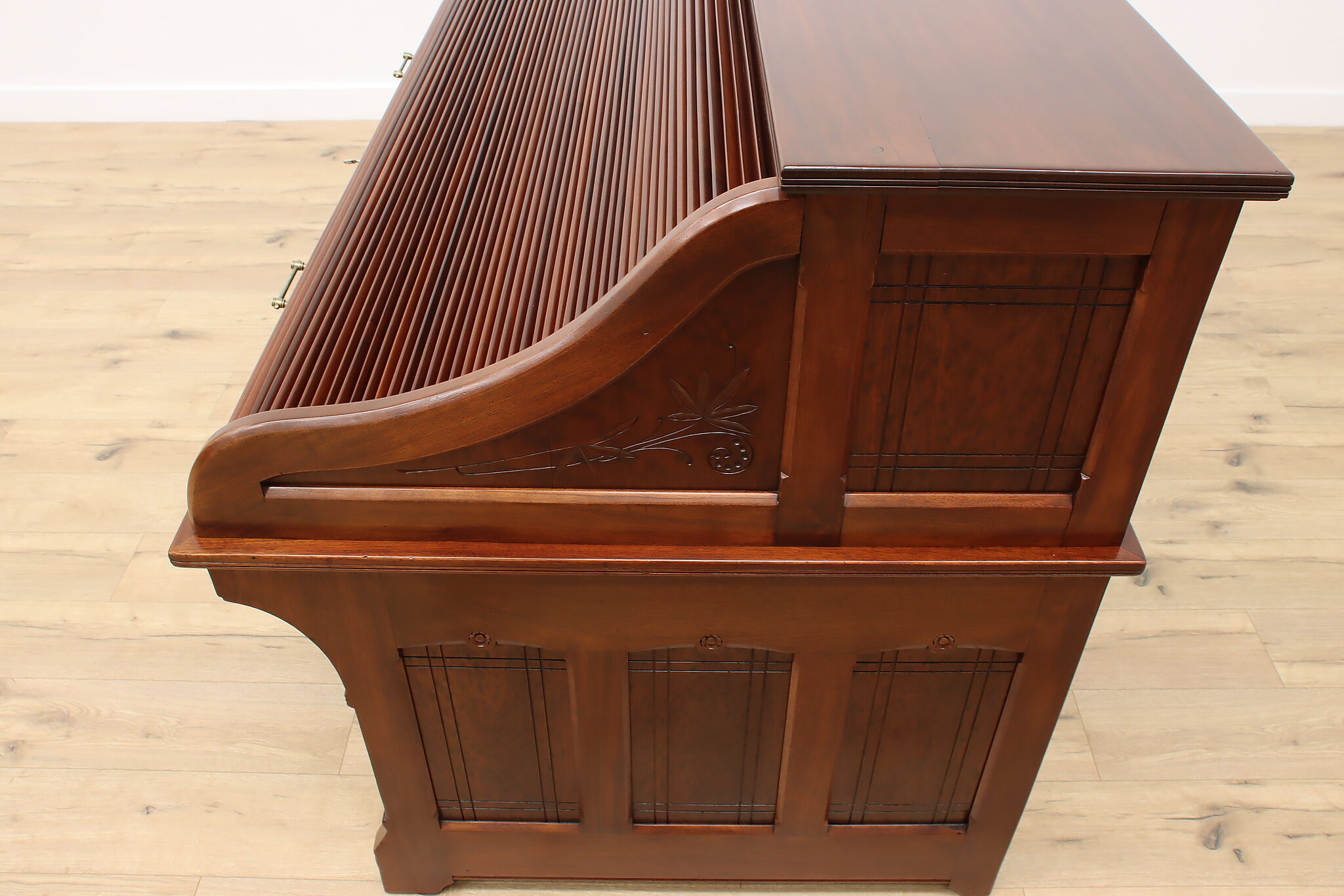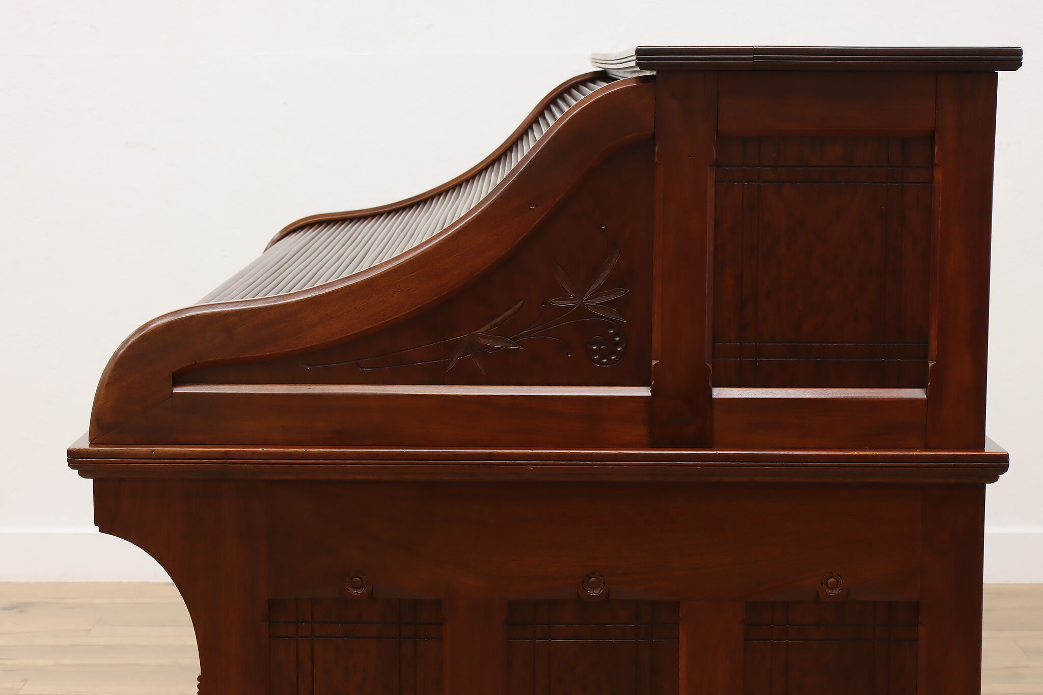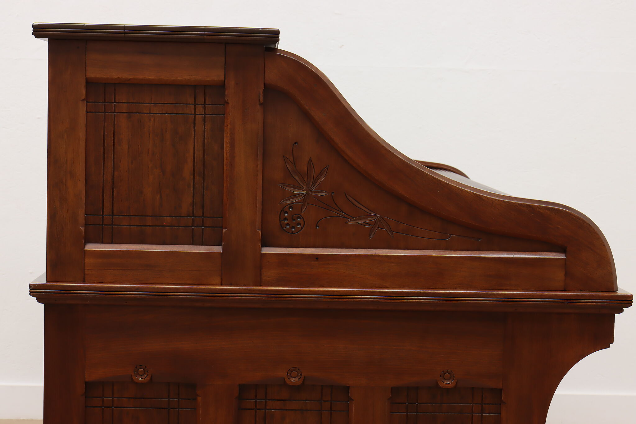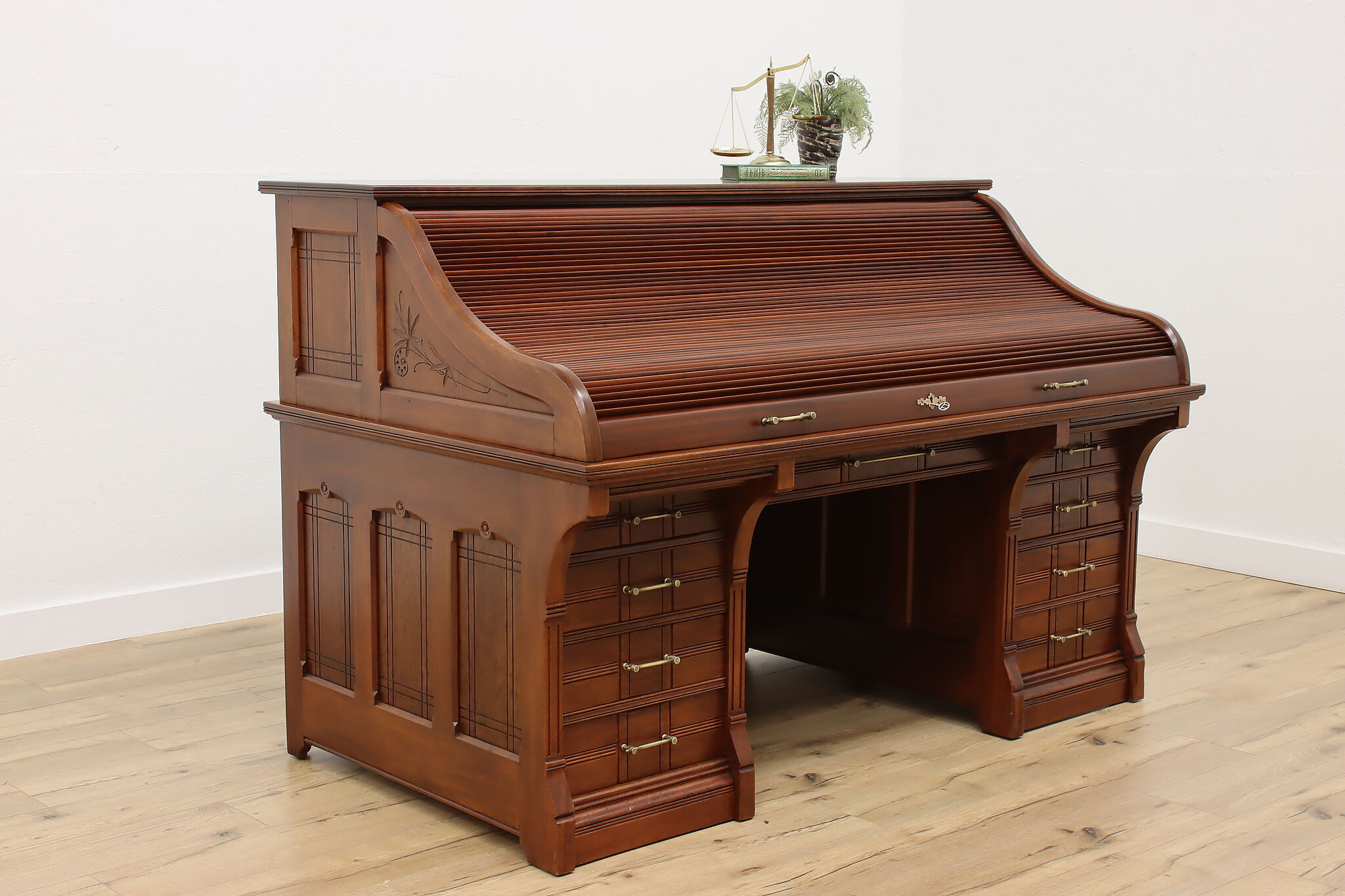 This stunning roll top desk was crafted during the Victorian Eastlake period where it may have been used in a wealthy aristocrat's home or government office!