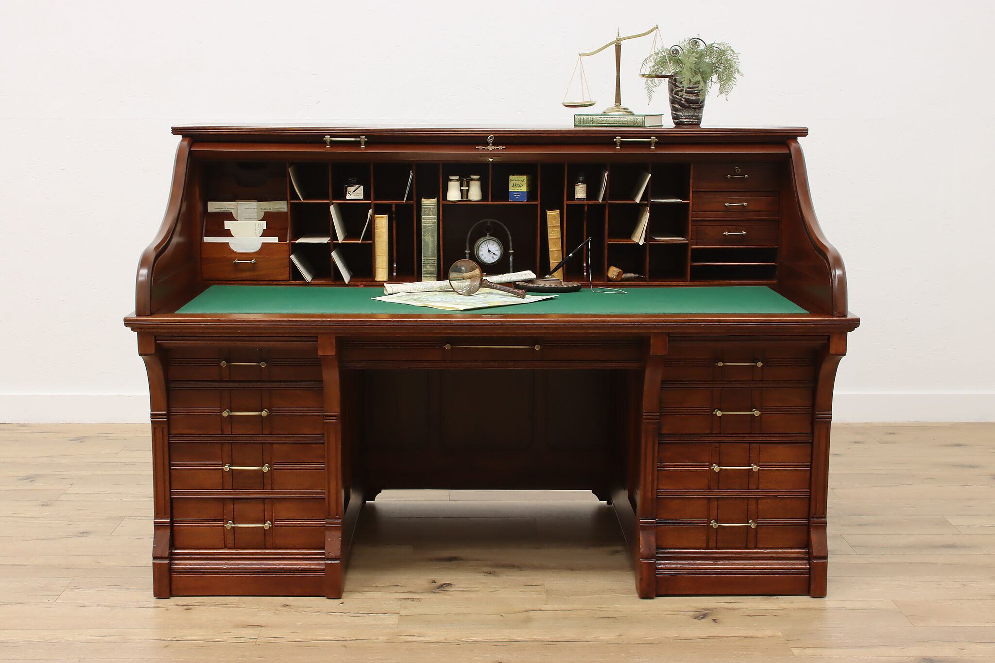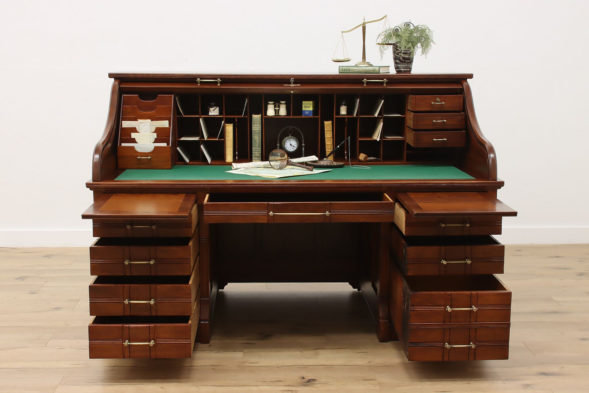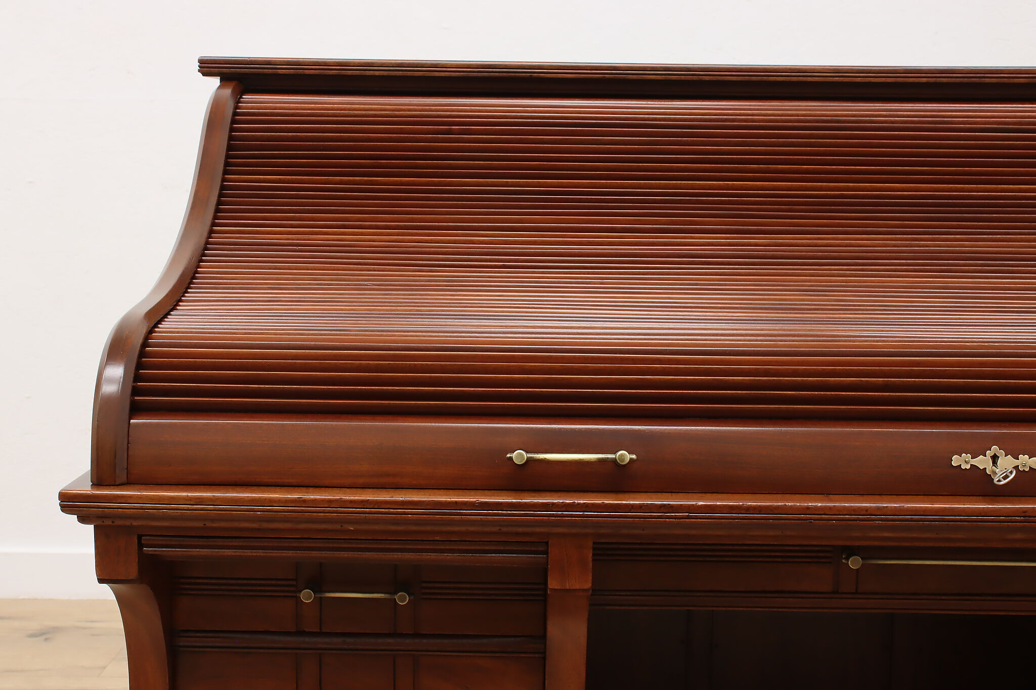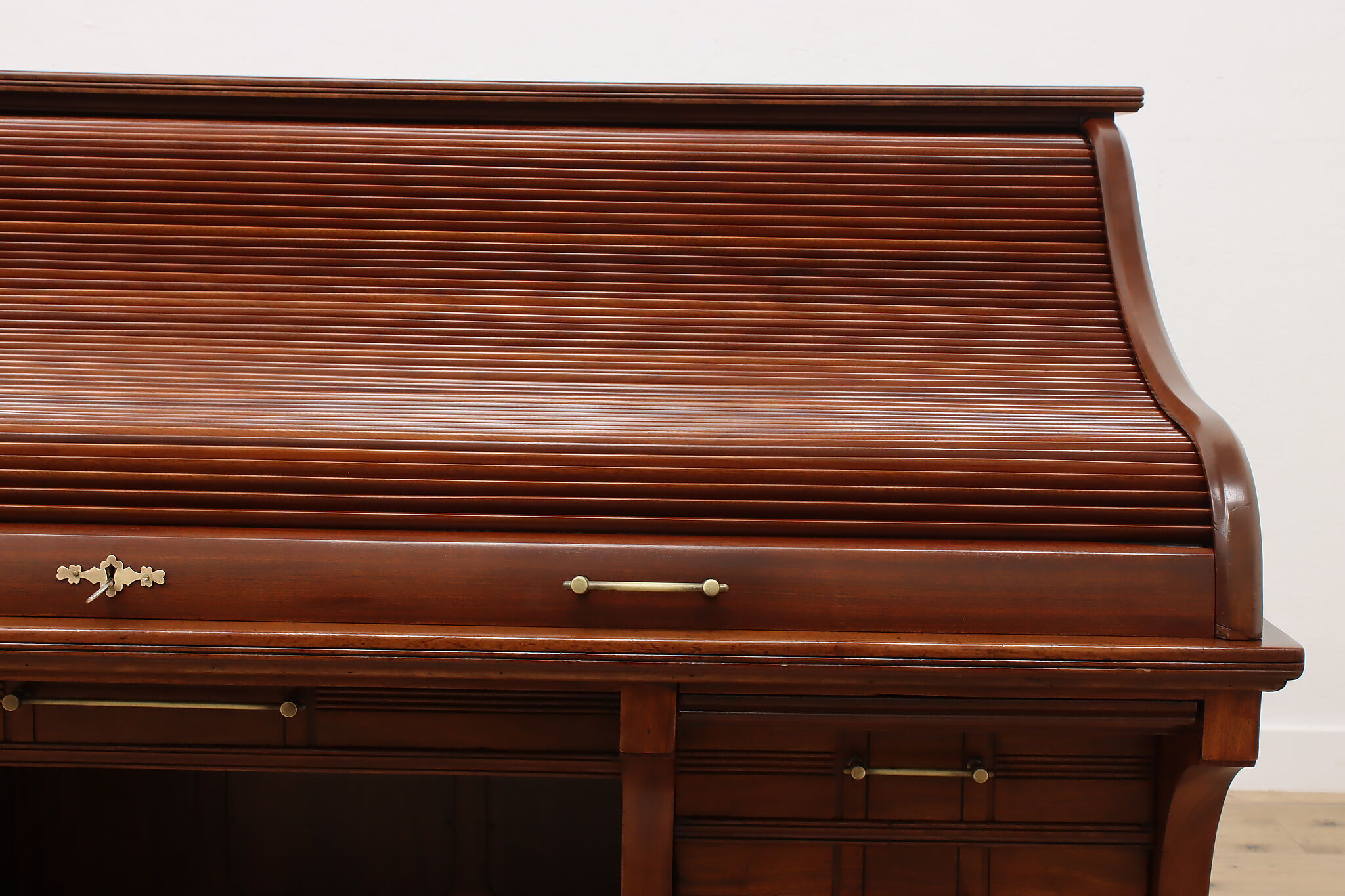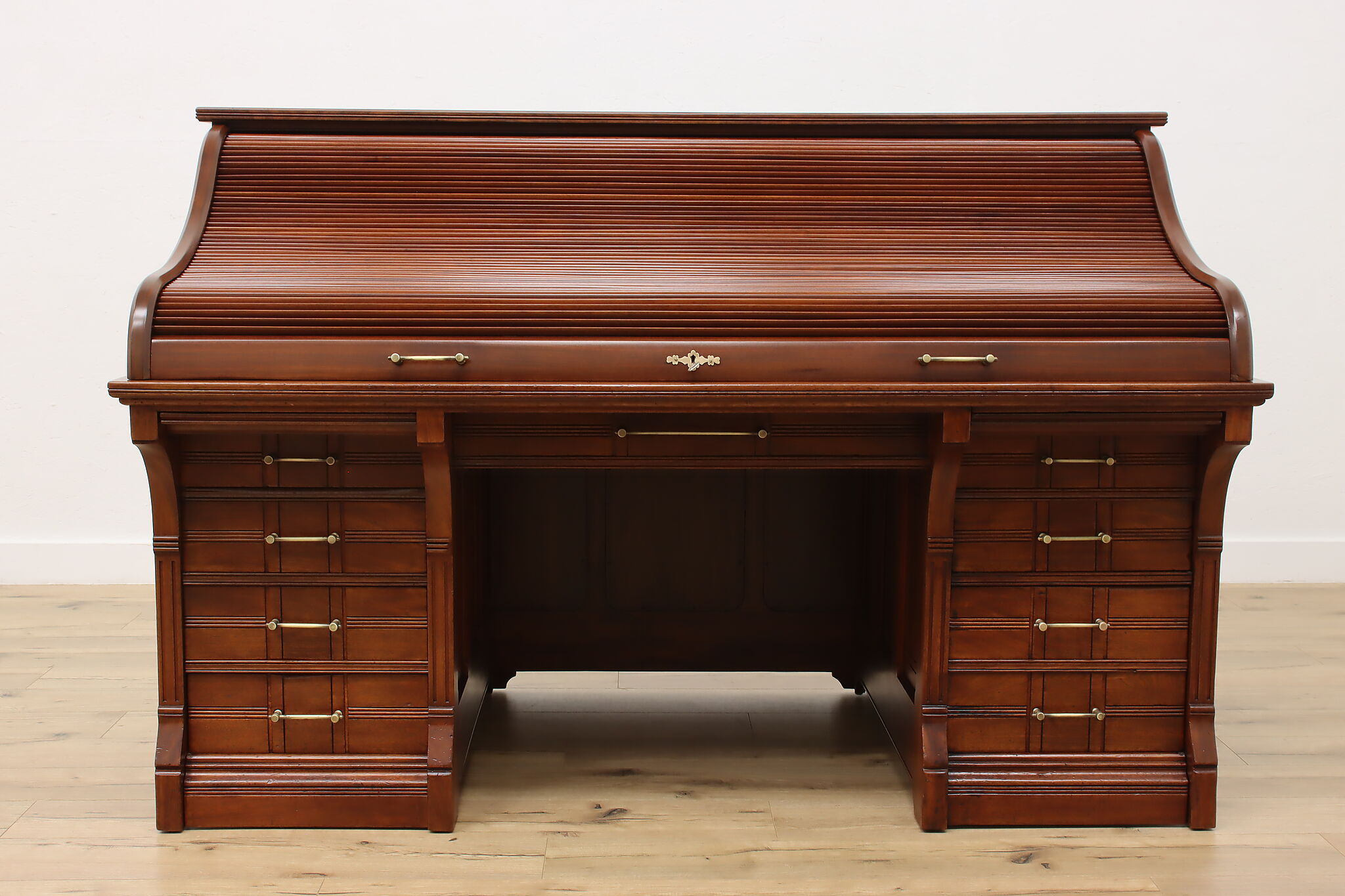 This stunning roll top desk was crafted during the Victorian Eastlake period where it may have been used in a wealthy aristocrat's home or government office!