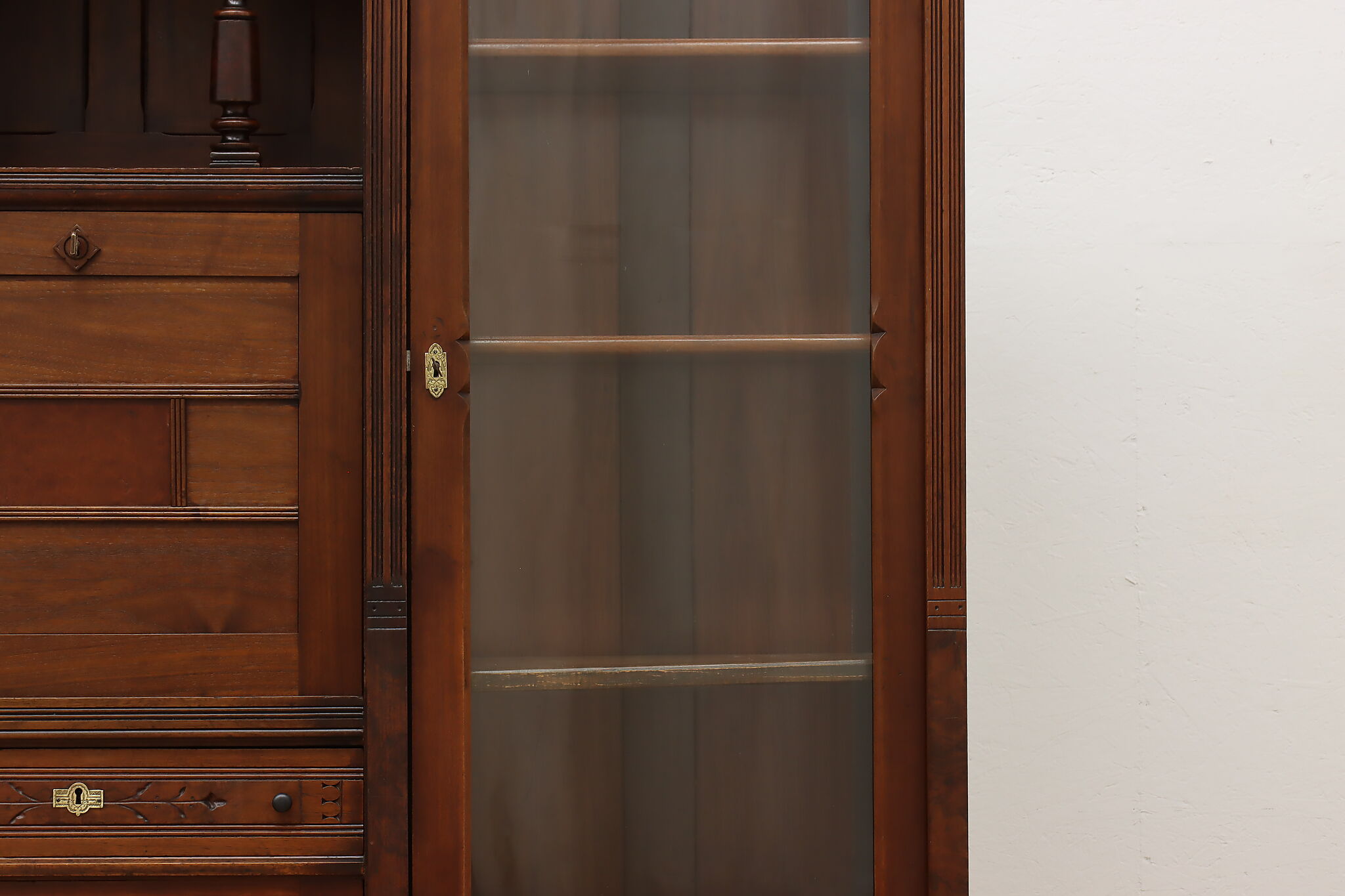 From the Victorian Eastlake period, this triple secretary and bookcase has beautifully carved sunflowers.