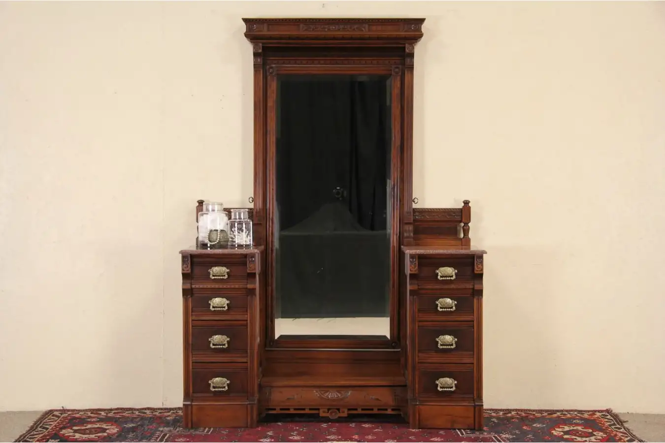 A late Victorian or Eastlake dressing table and mirror dates from about 1880, and would be a lovely foyer mirror as well.