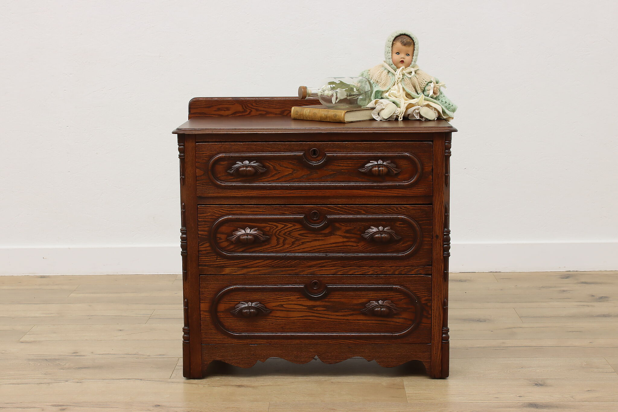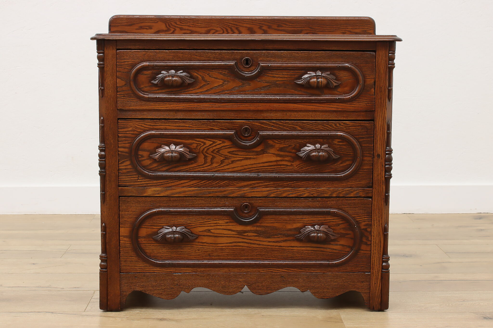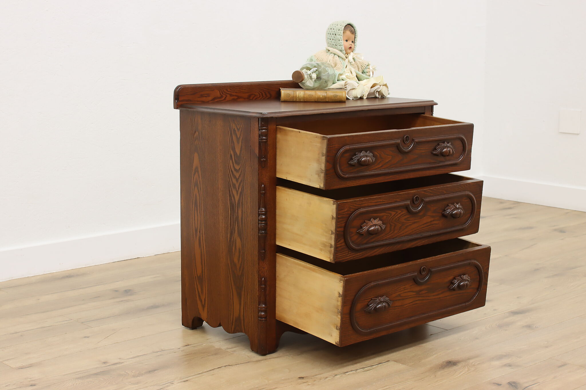 This darling little chest or washstand is straight from a Victorian farmhouse, complete with hand-carved drawer pulls with acorns and leaves.