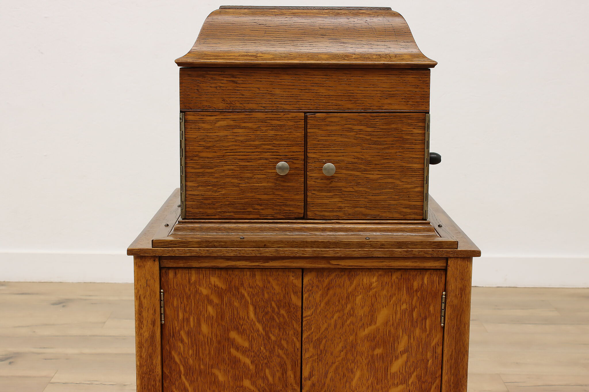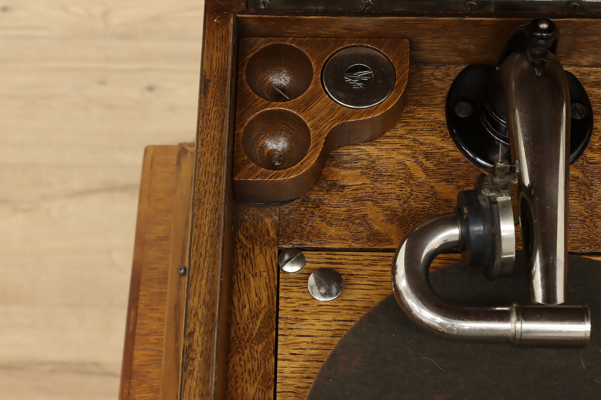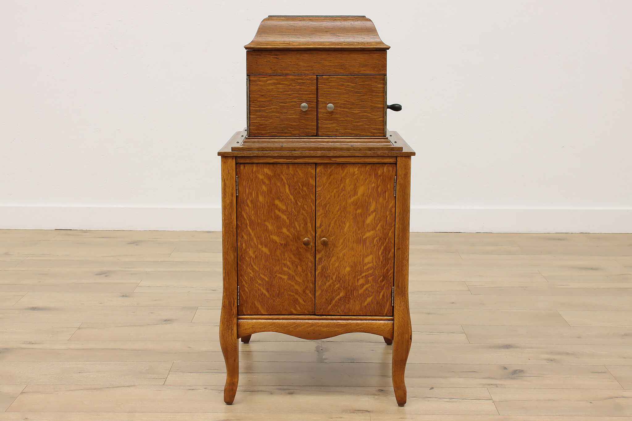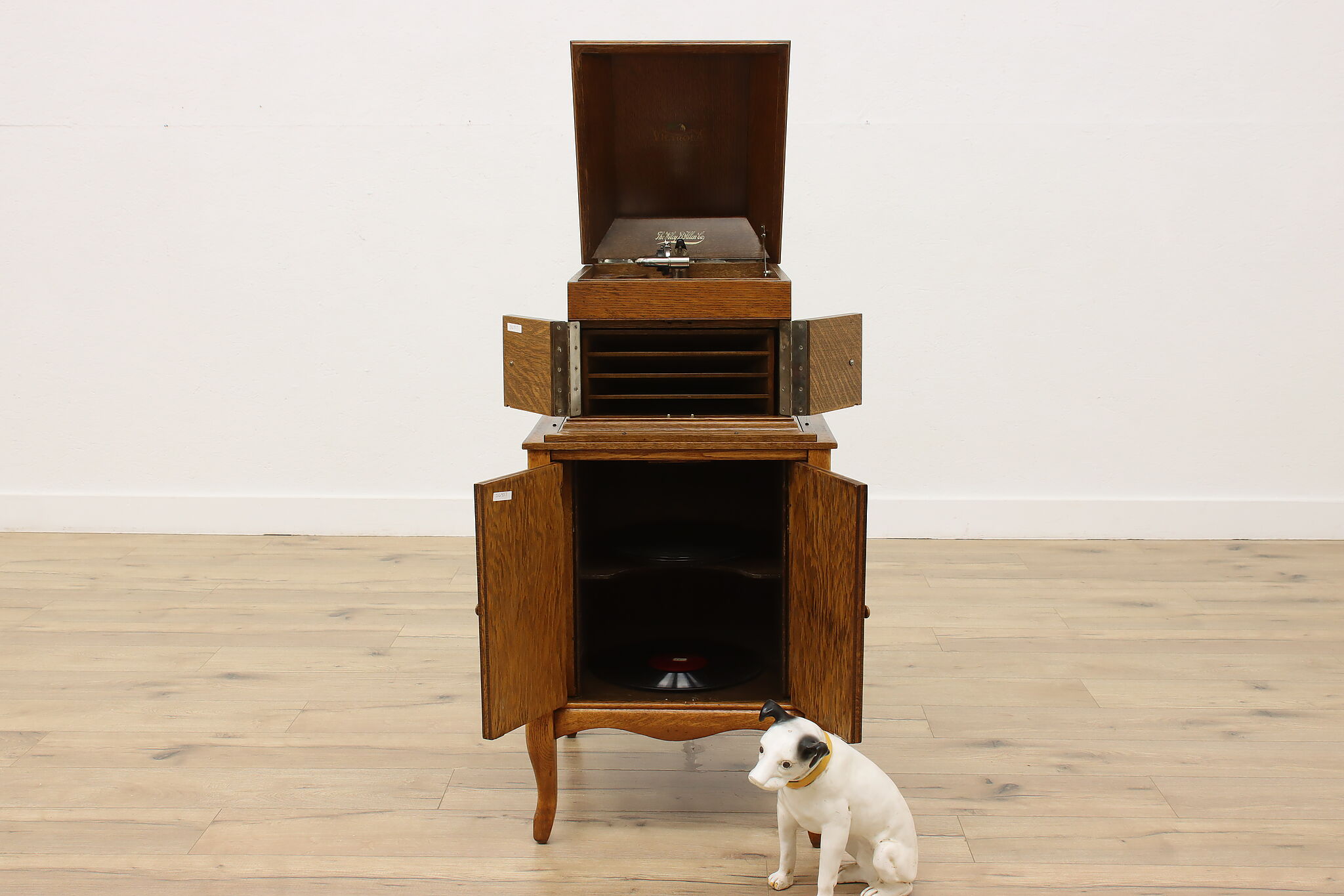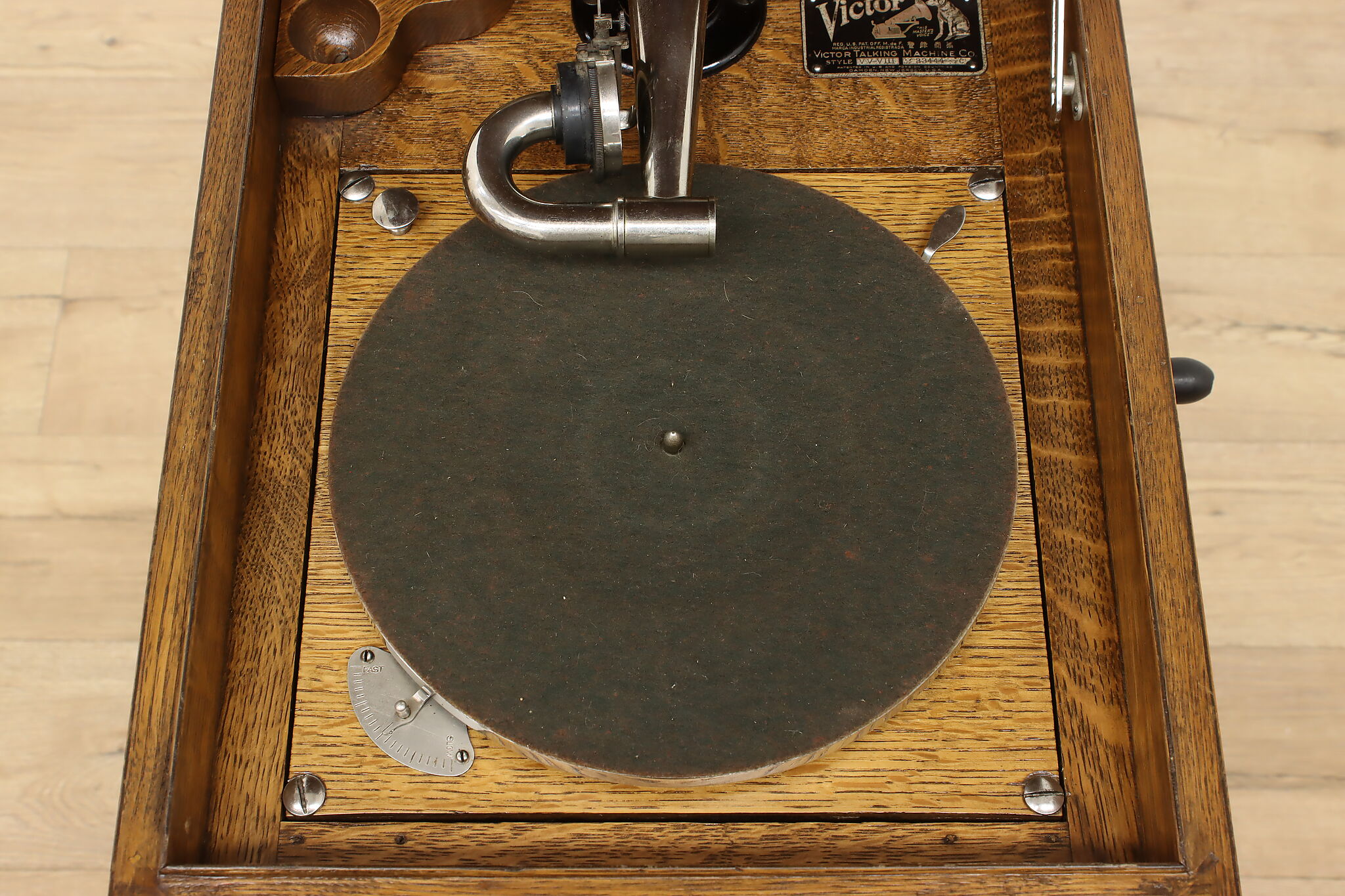 This tabletop phonograph still works great after 100 years, keep it on top of its cabinet base and enjoy classic tunes with this "Victor Talking Machine."