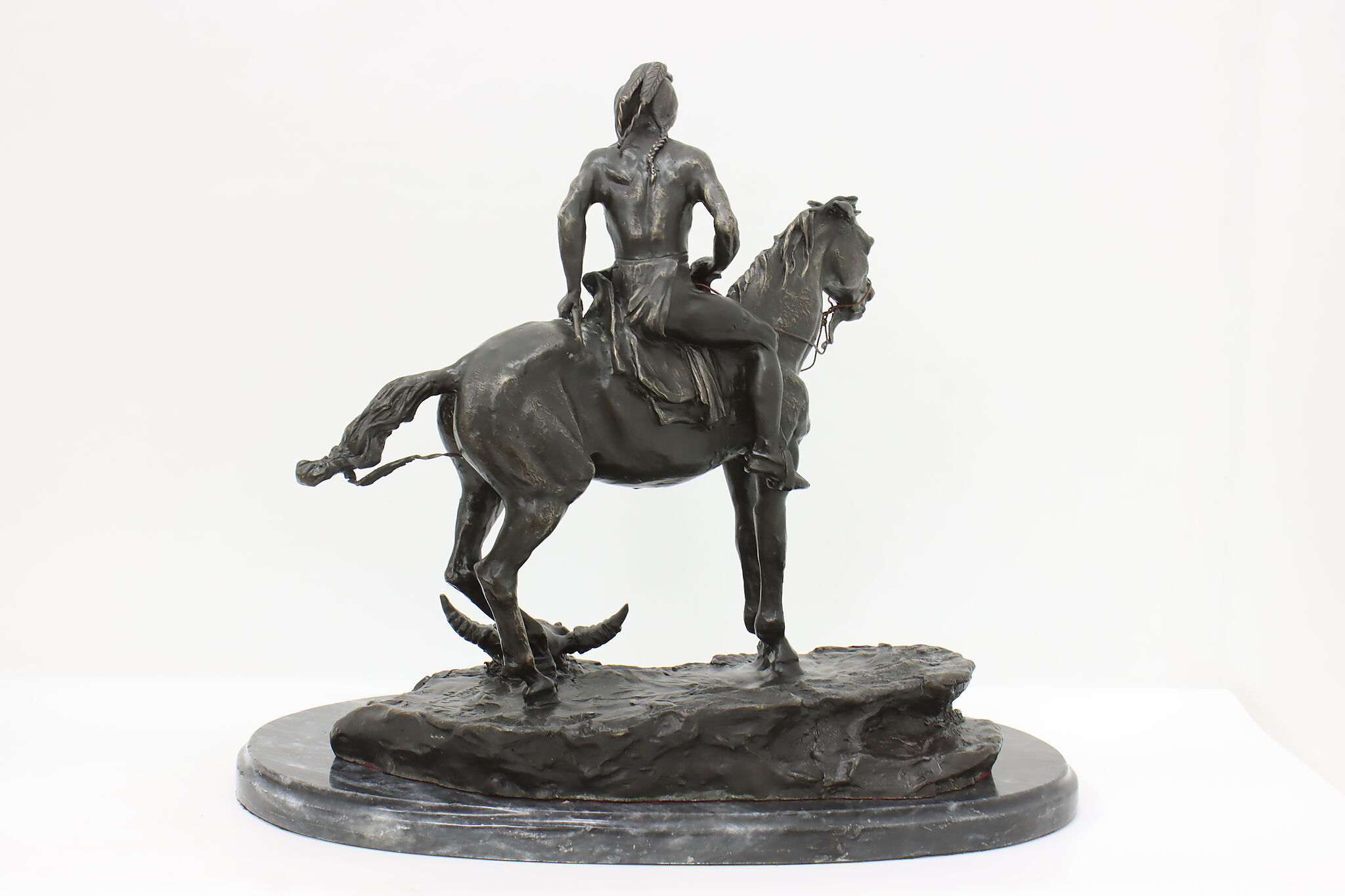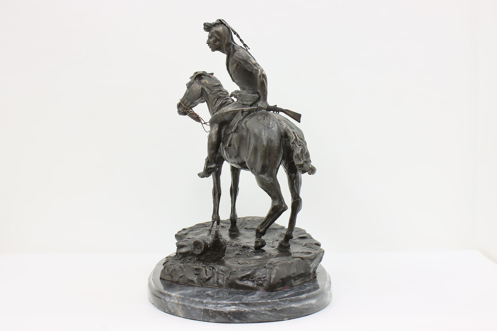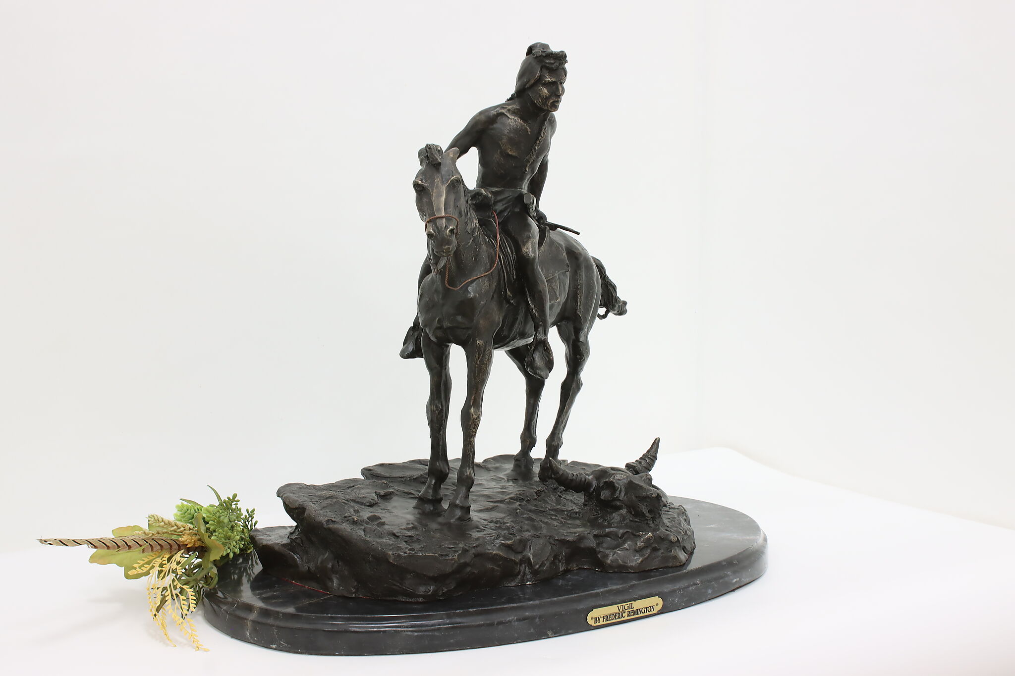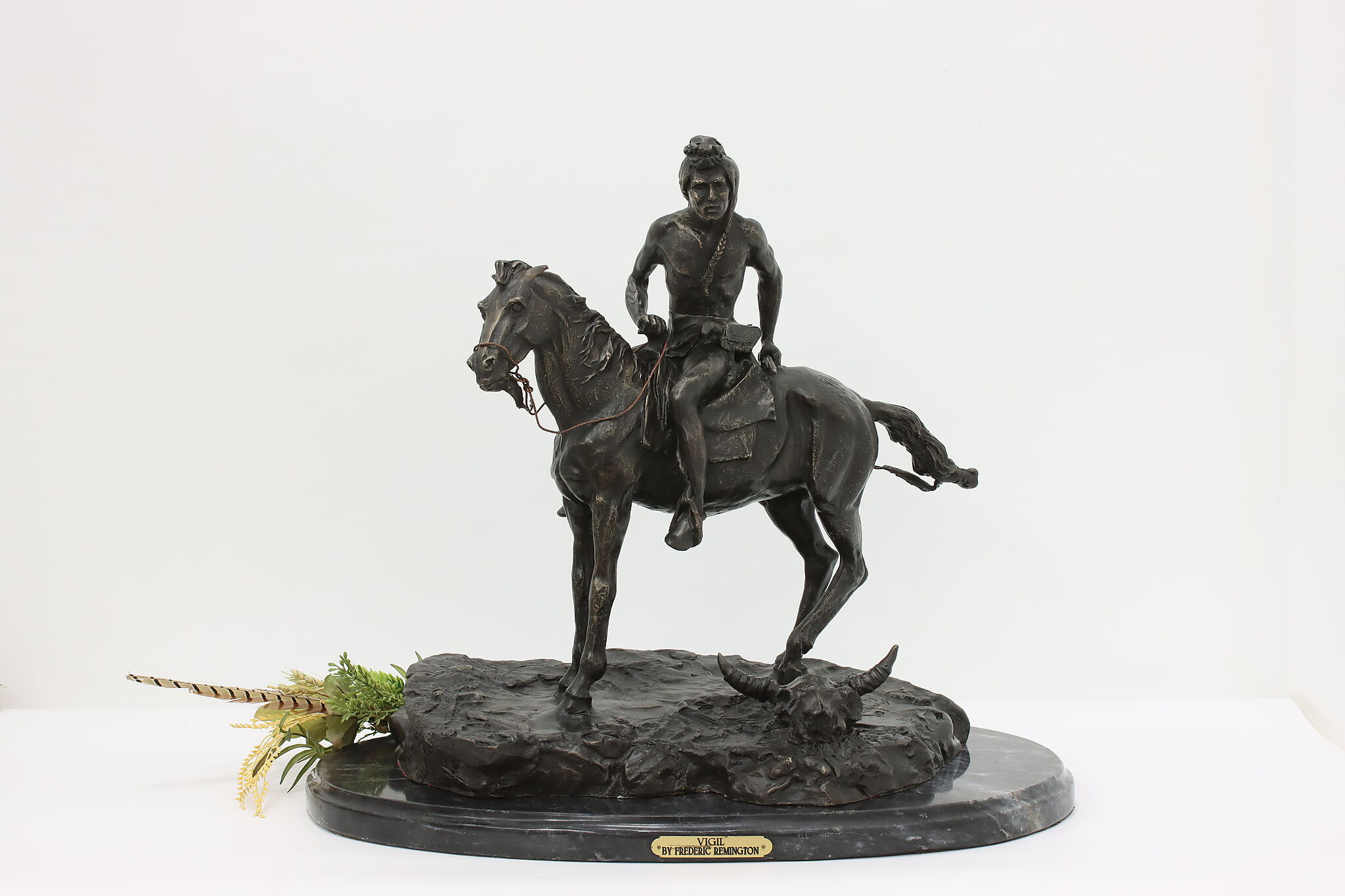 Frederic Remington was a famous American wild west artist who inspired many artists to create their own sculptures featuring cowboys, horses, and Native American Indians.