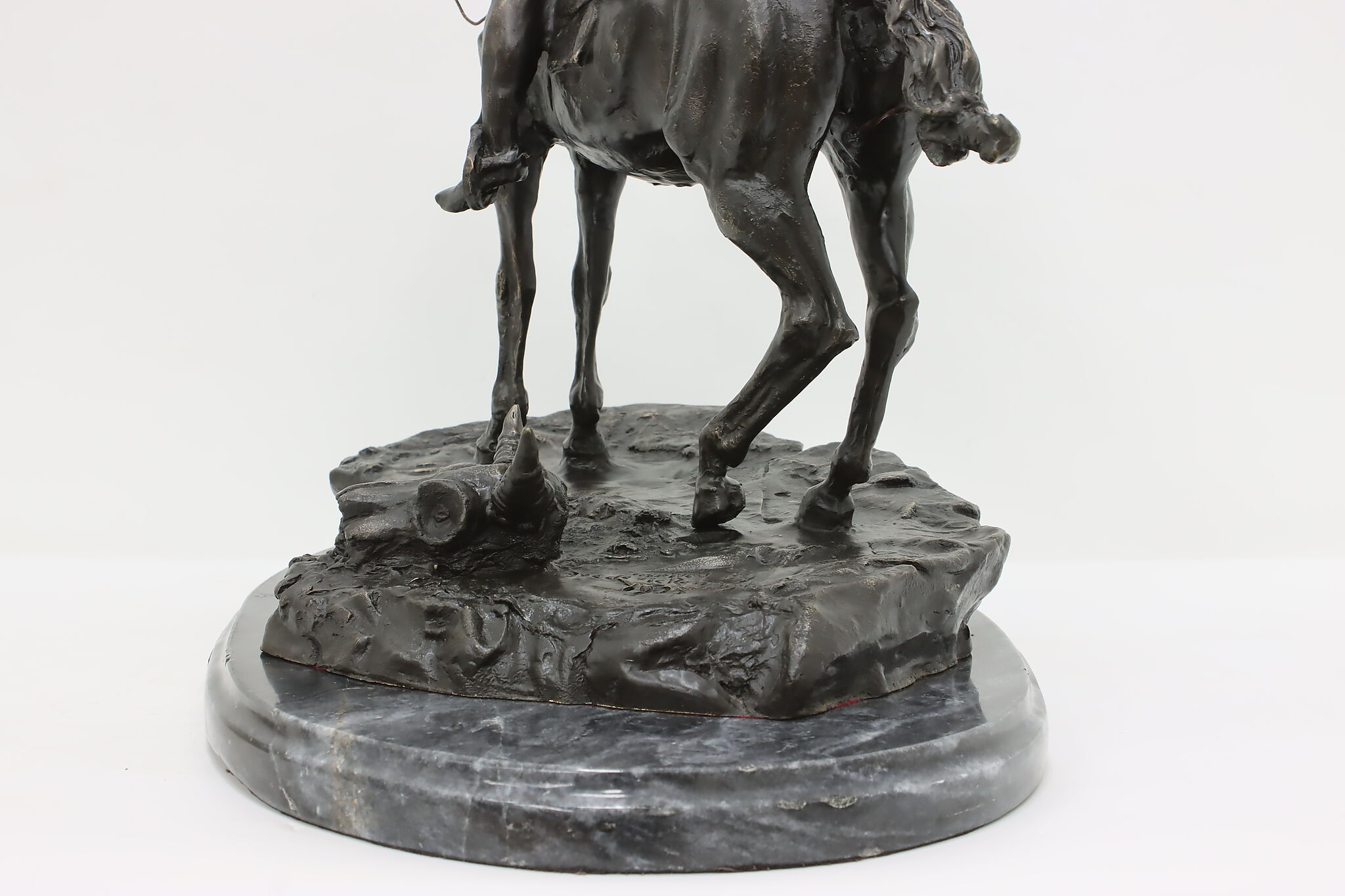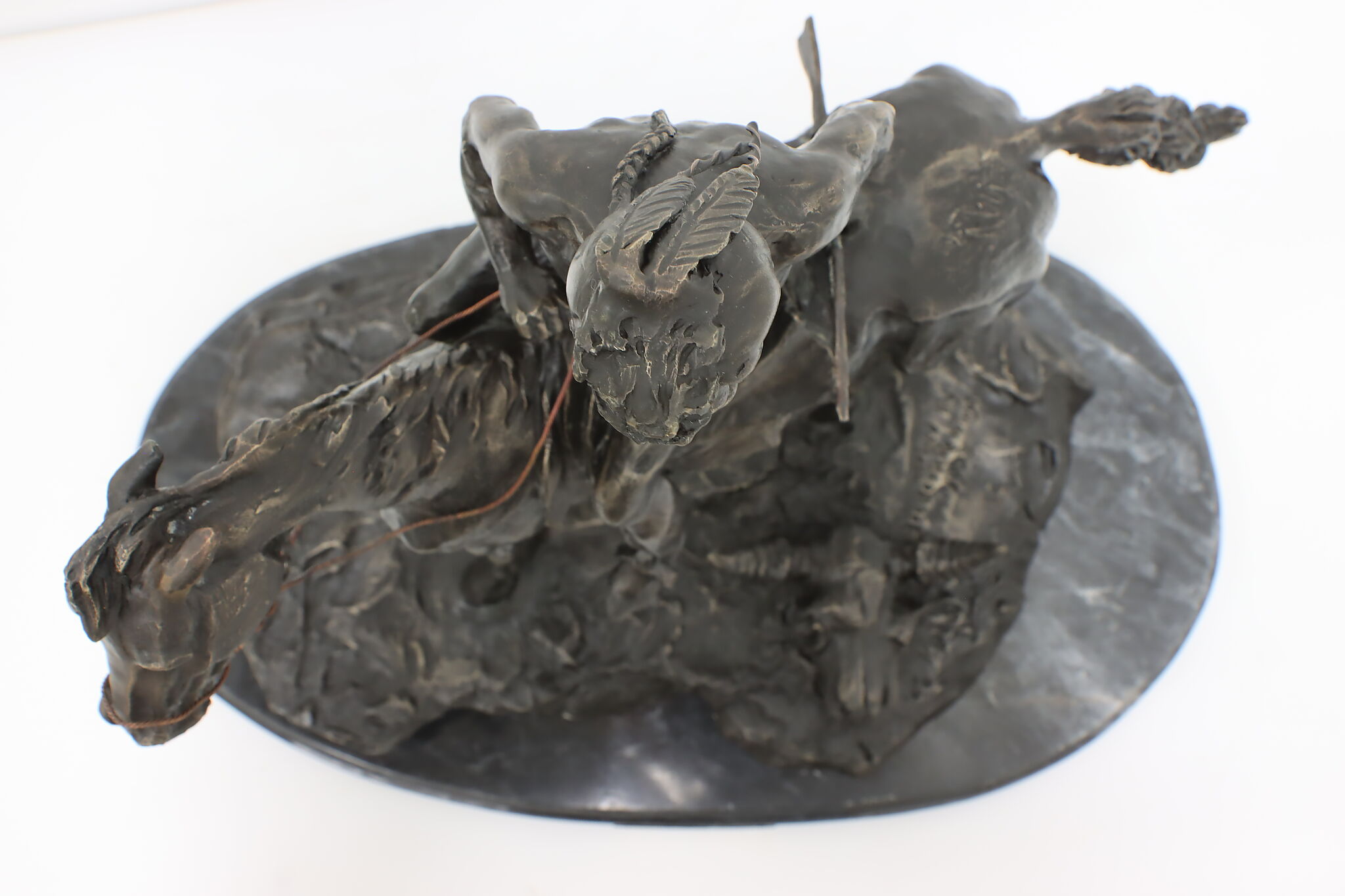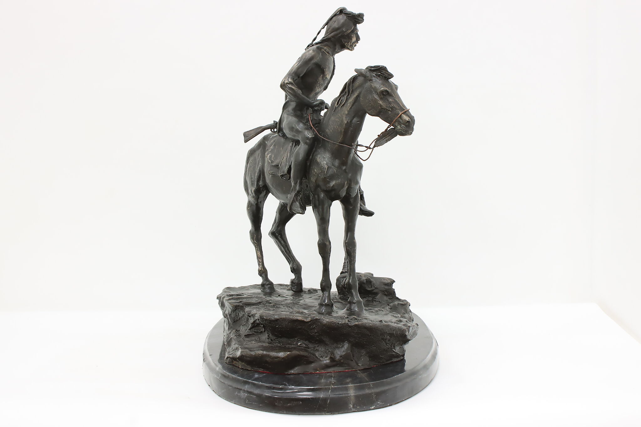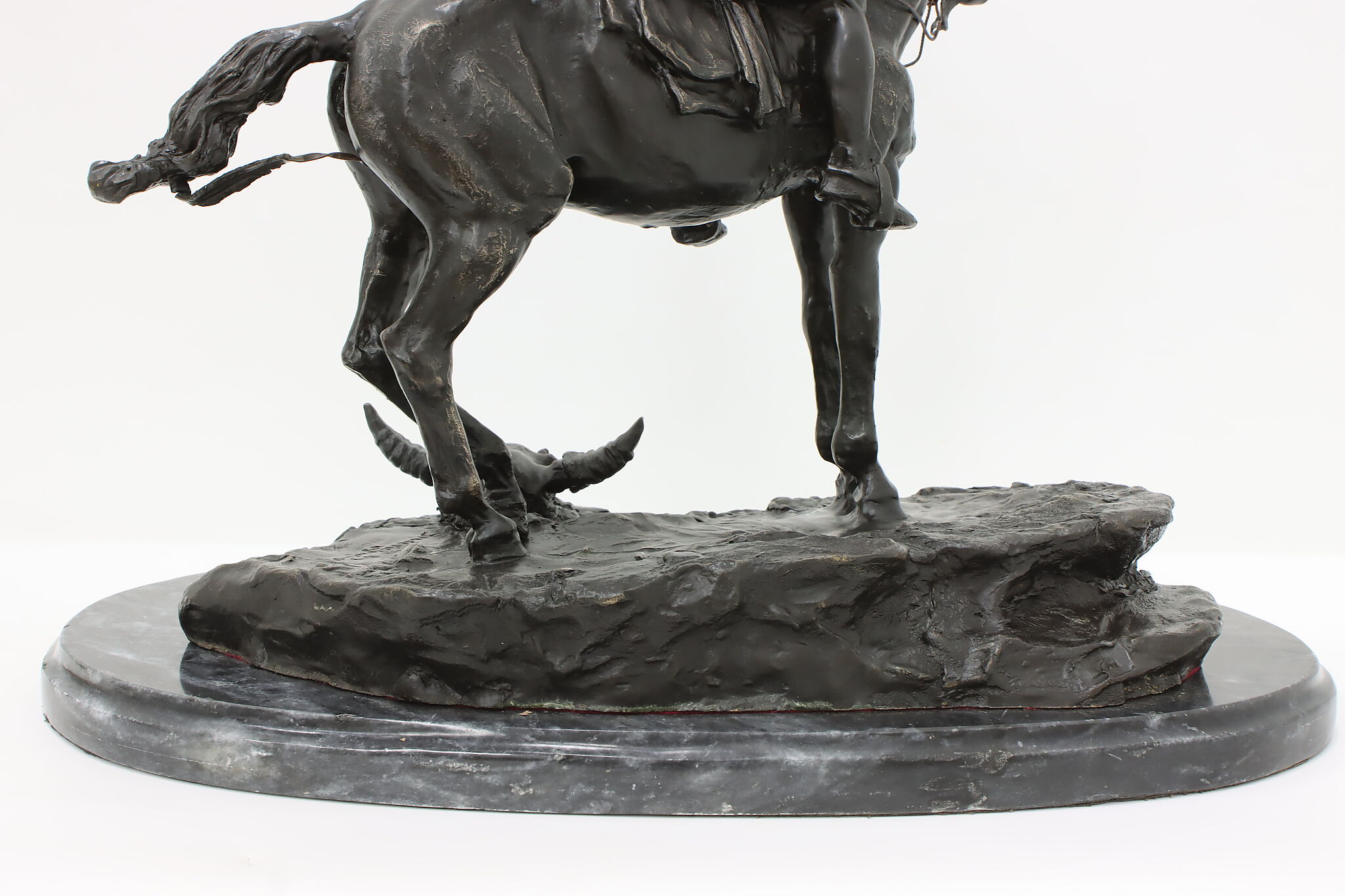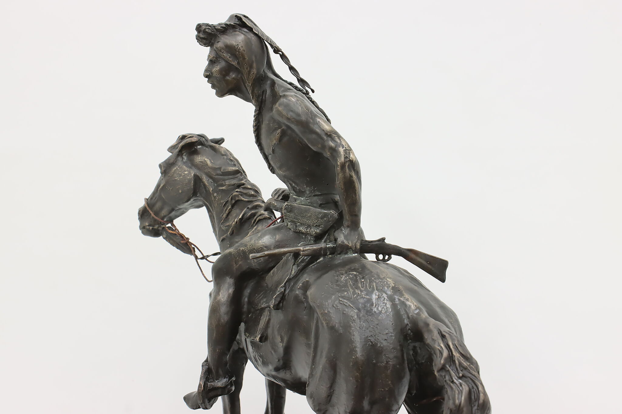 Frederic Remington was a famous American wild west artist who inspired many artists to create their own sculptures featuring cowboys, horses, and Native American Indians.