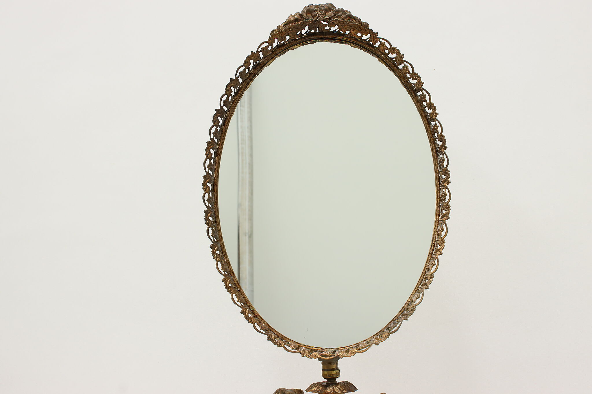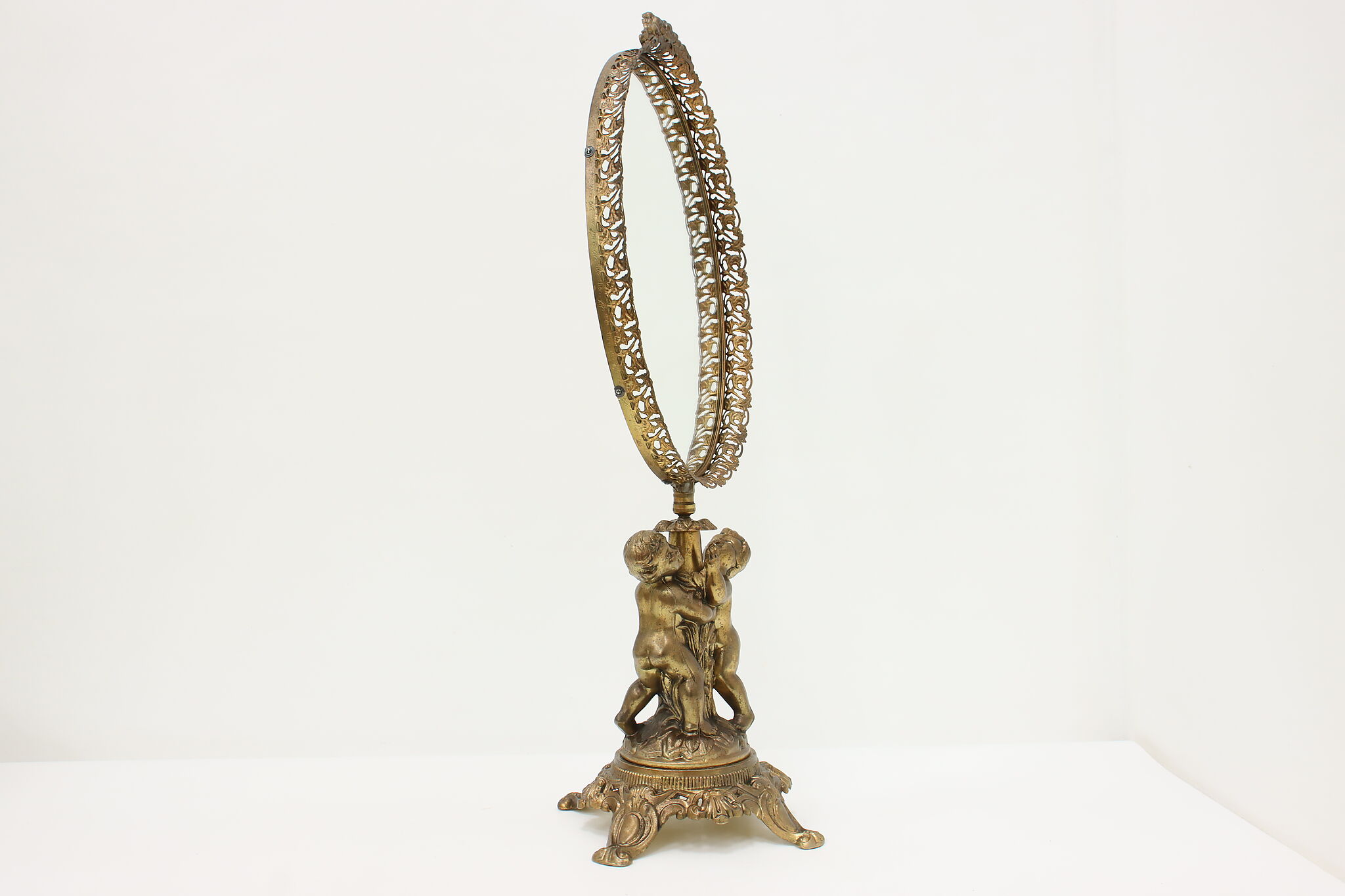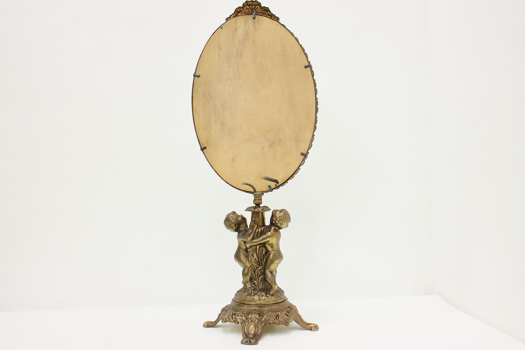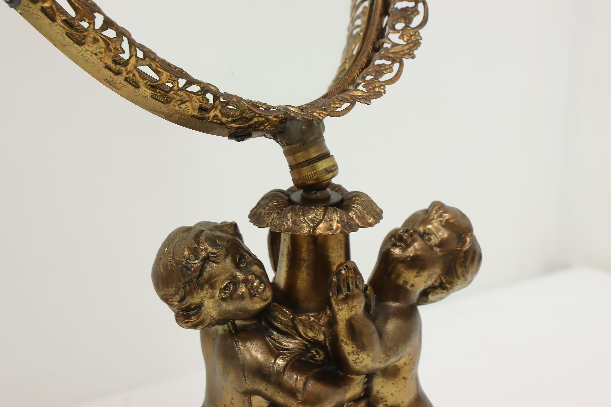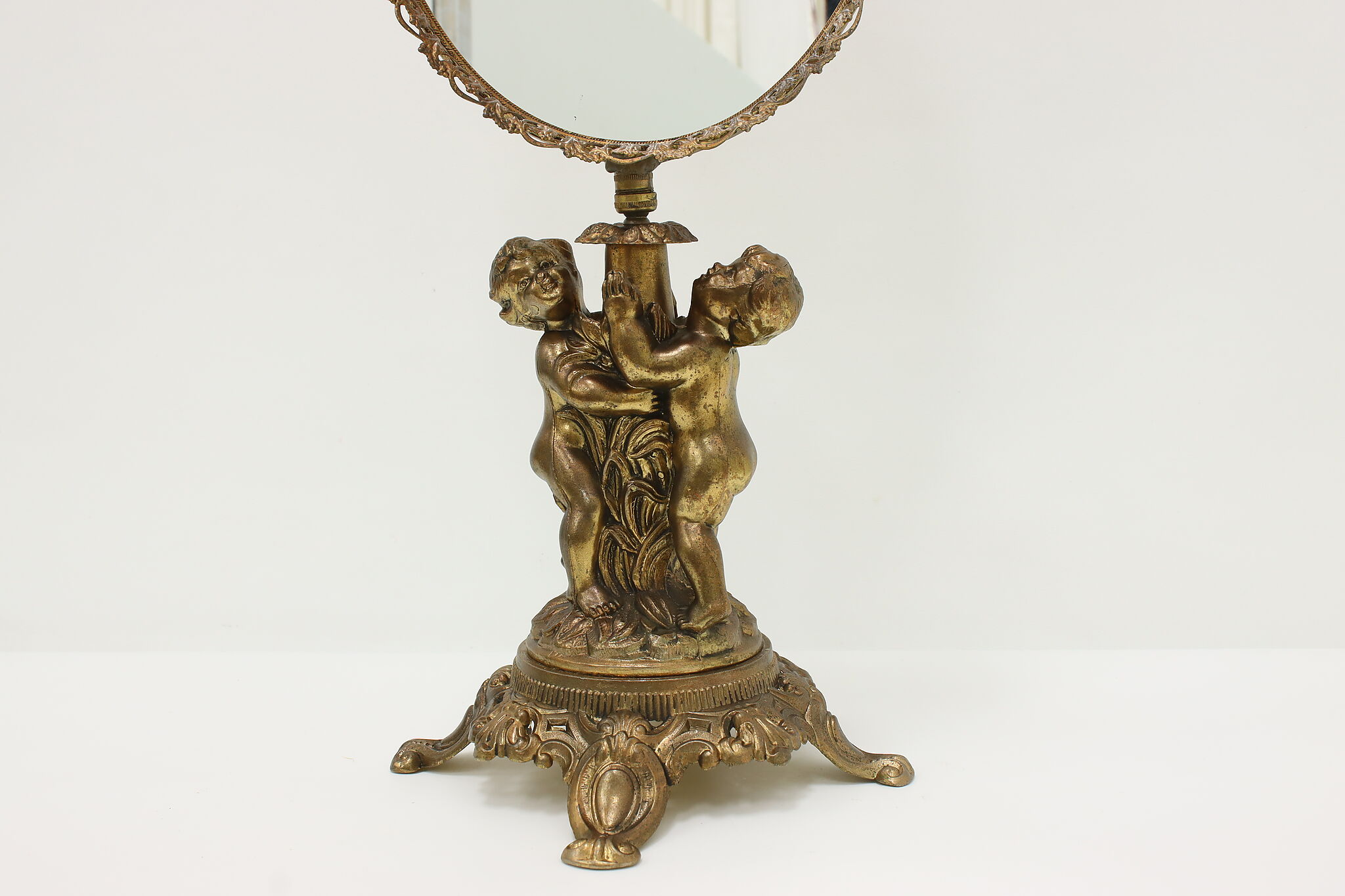 This darling Victorian style tabletop mirror has charming cherub sculptures and the mirror is adjustable to view yourself perfectly!