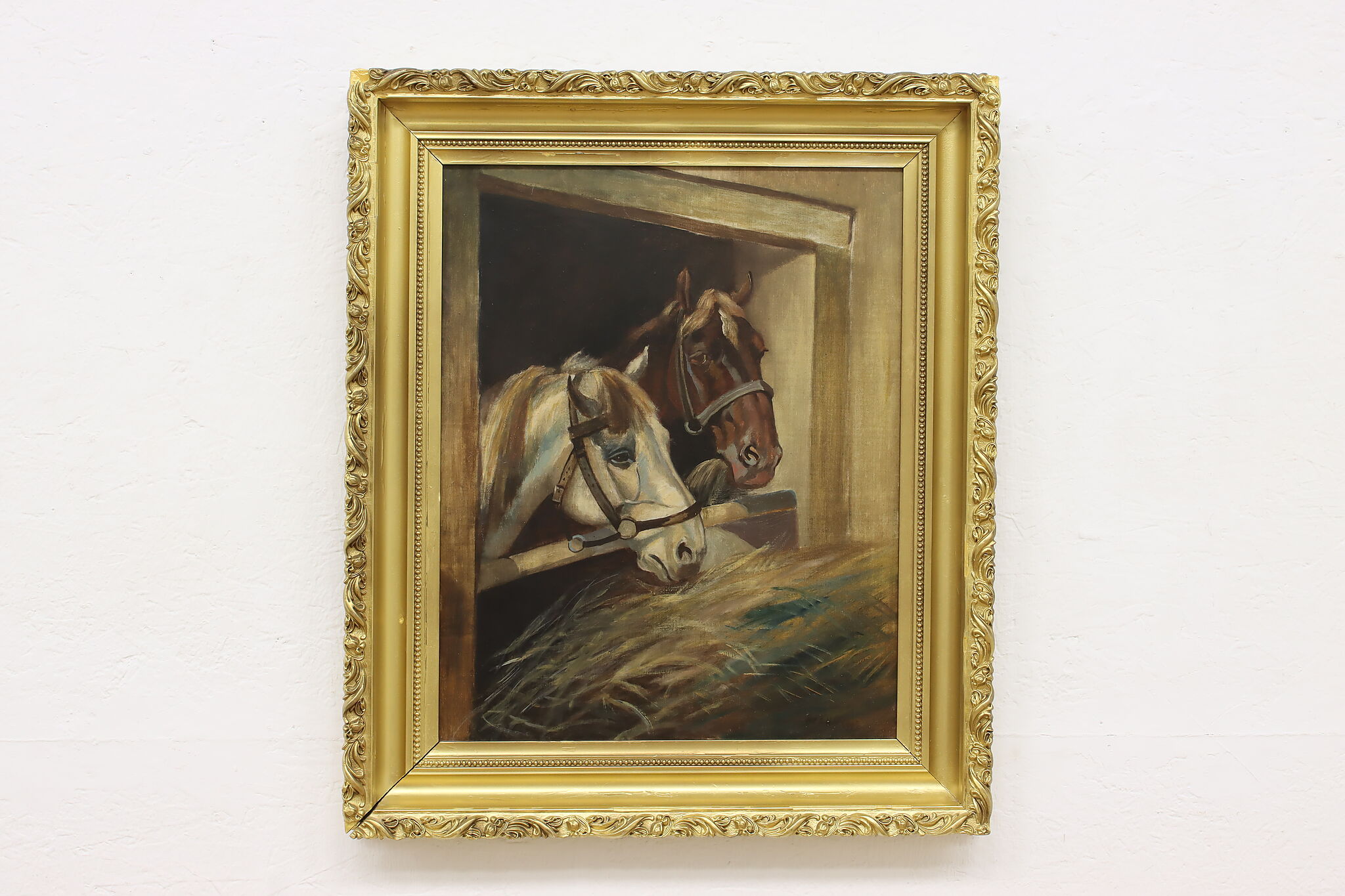 This pair of weary horses have returned to their stable for a well-deserved dinner and rest.
