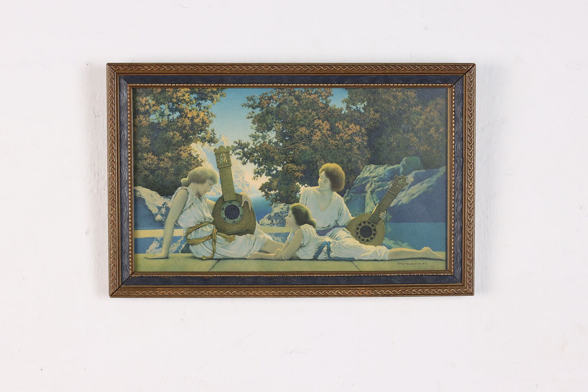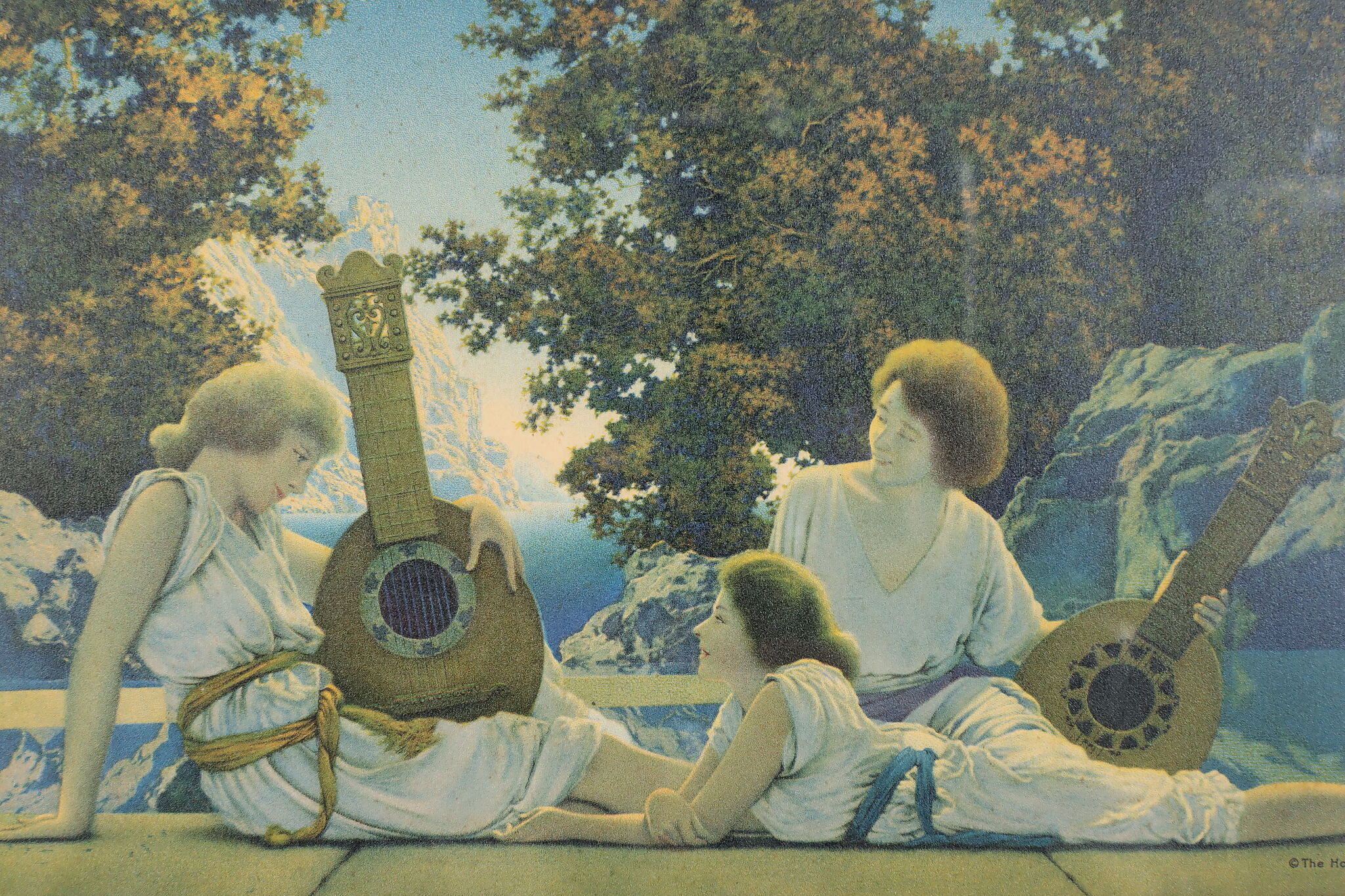 Maxfield Parrish was a famous Art Deco period artist known for his fantasy paintings. This print of a painting of three women playing lutes is titled "Interlude" and would be fabulous as part of a gallery wall.